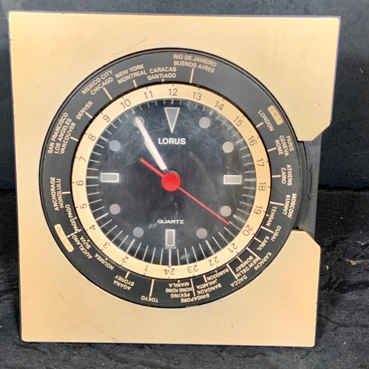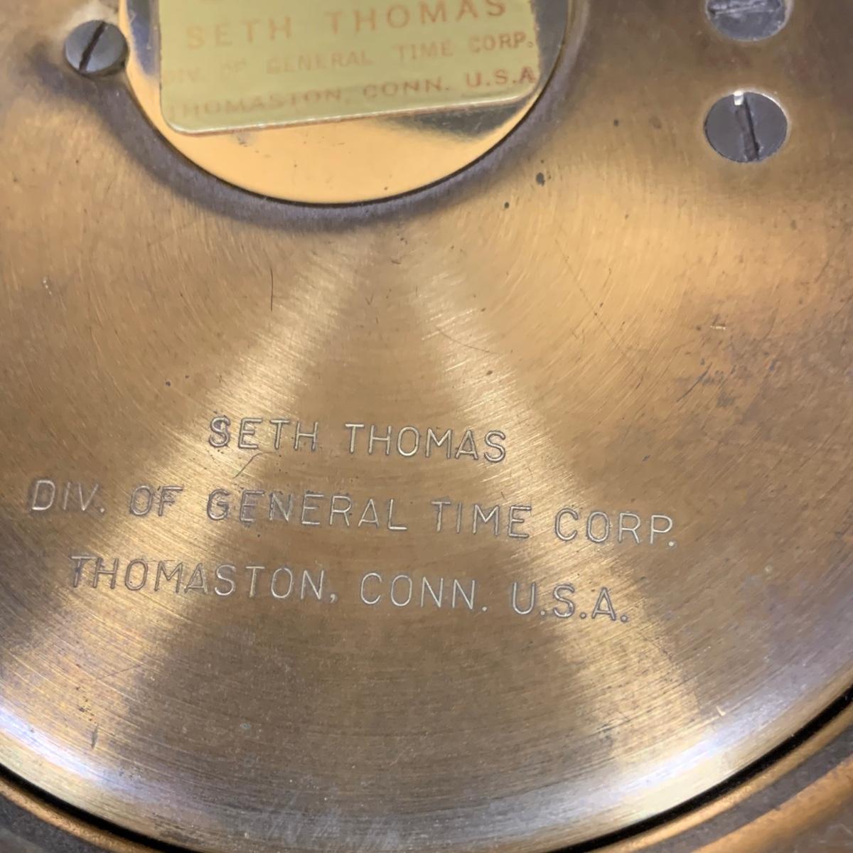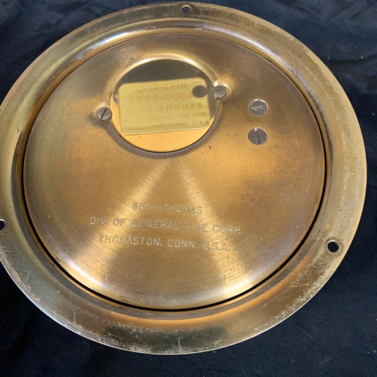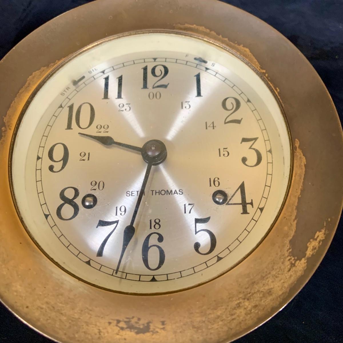 LOT 43: Collection Nautical Instruments Including a Seth Thomas Brass Ships Clock, Brass Ship’s Wheel Barometer and Lorus Quartz World Time Clock