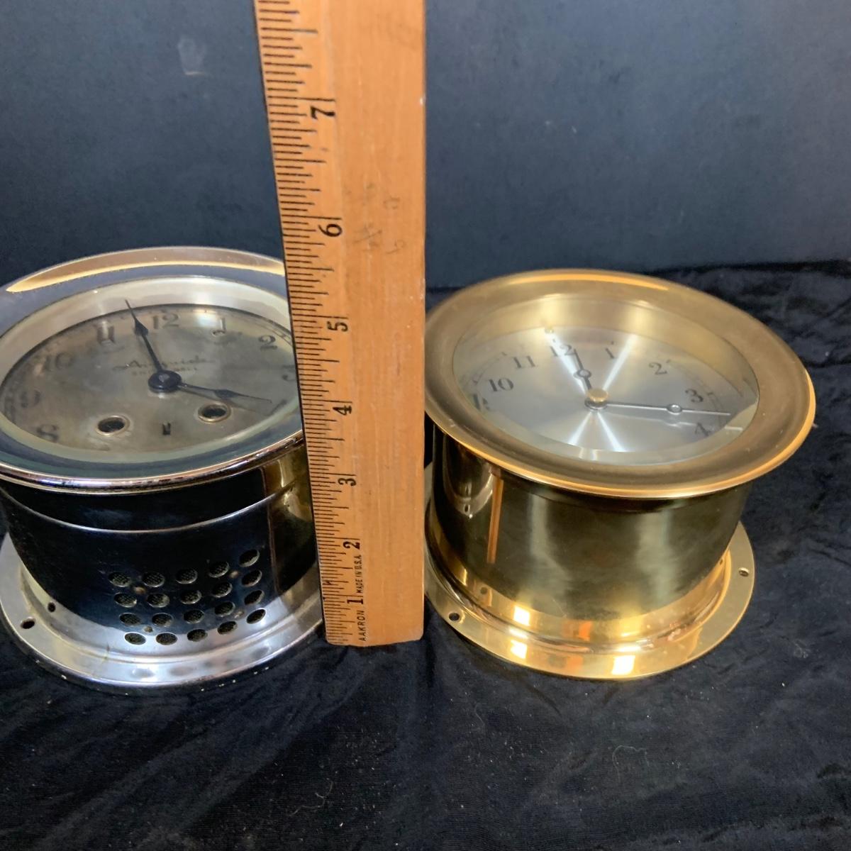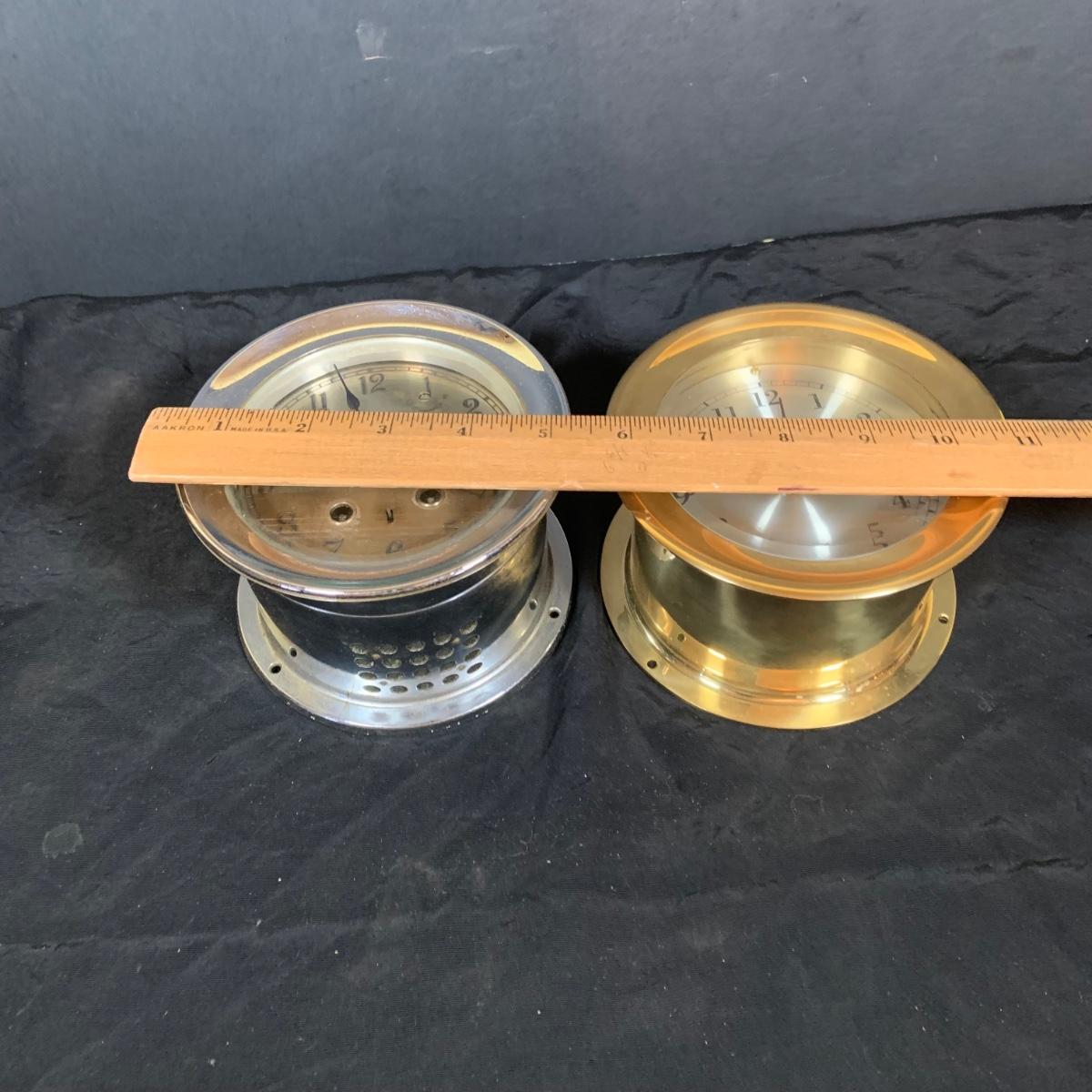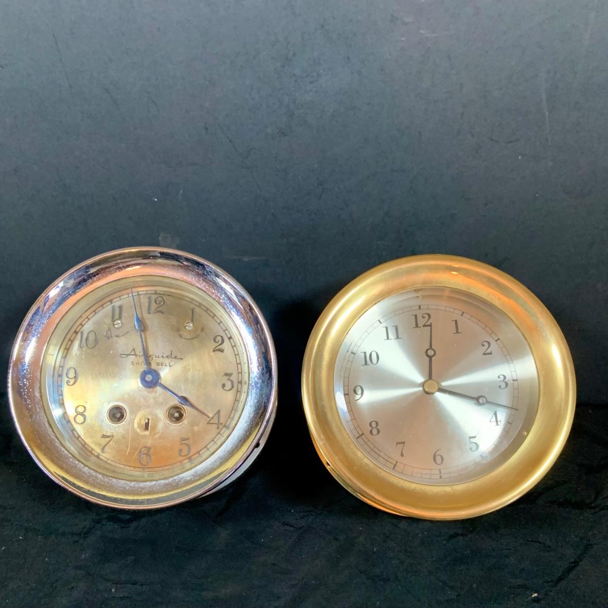 LOT 47: Set of Two (2) Vintage Ship’s Bell Clocks By Airguide and Unbranded
