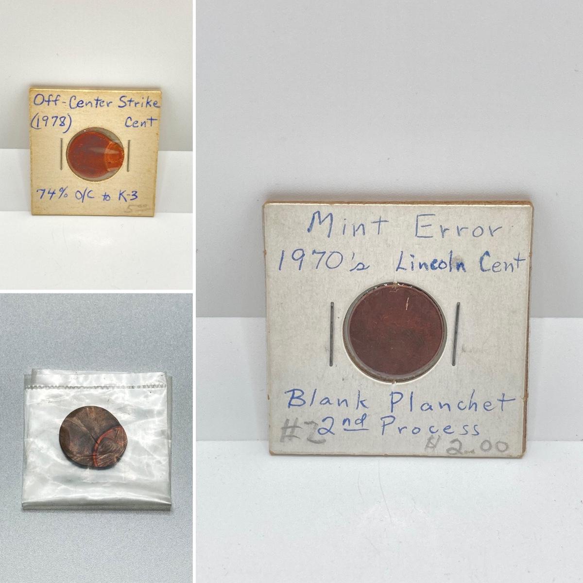 LOT 59: Three U.S. Penny / Cent Error Coins