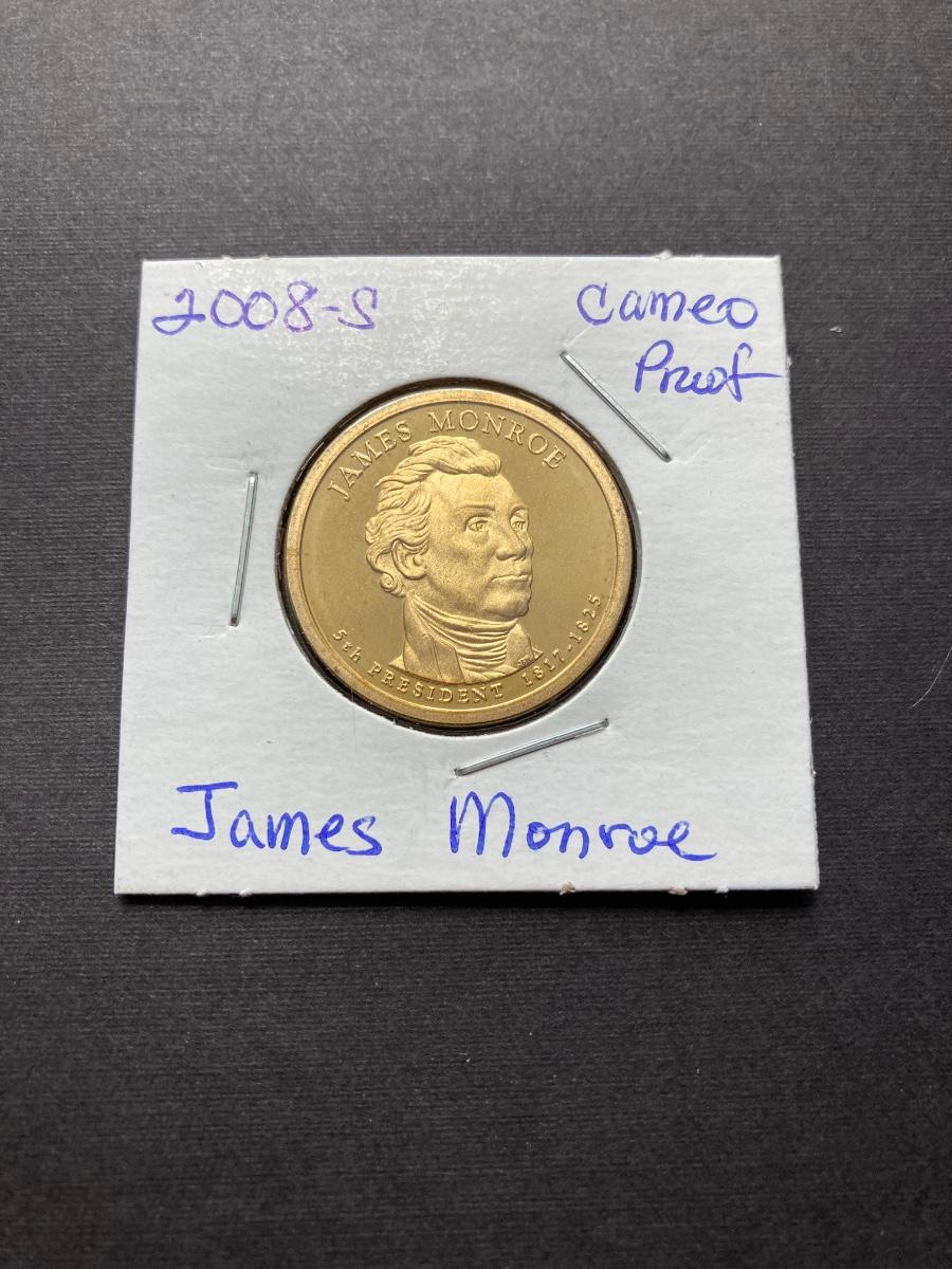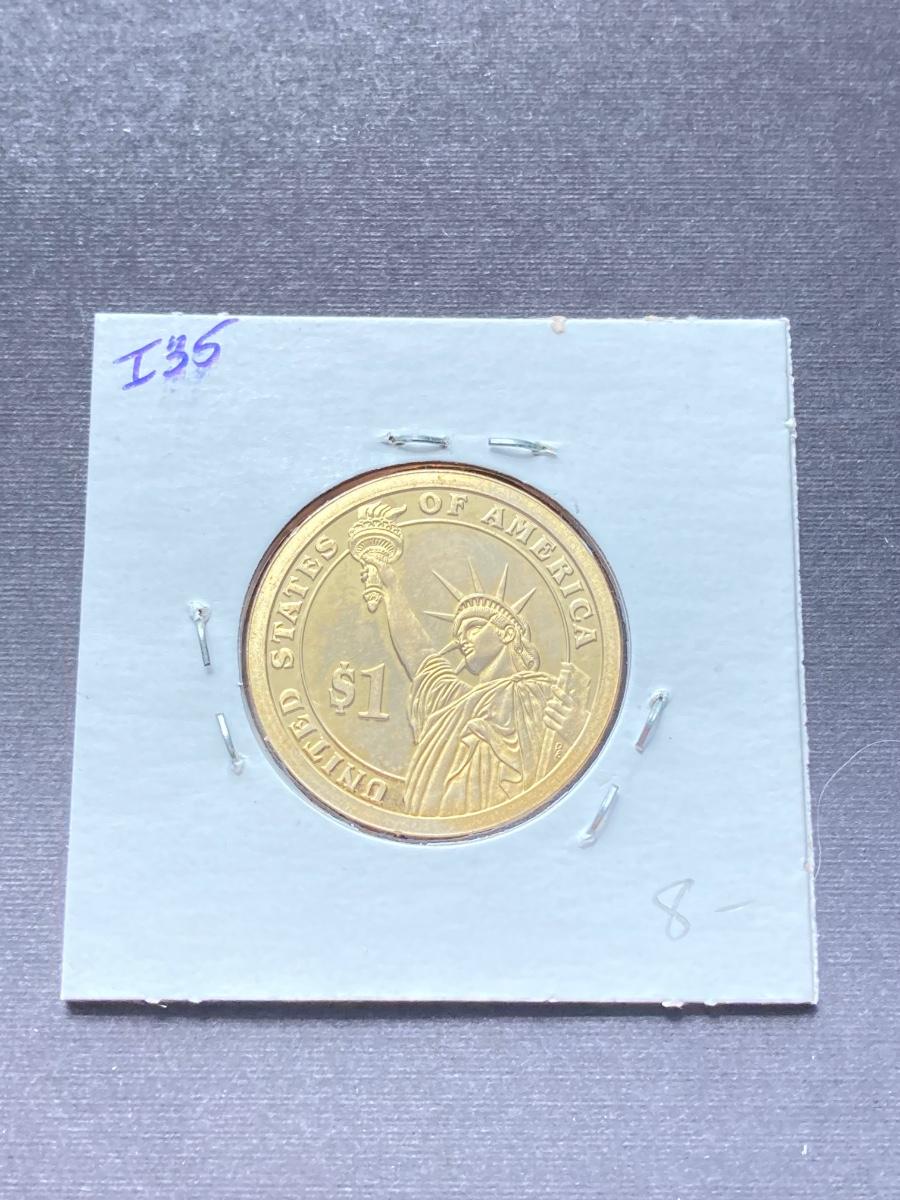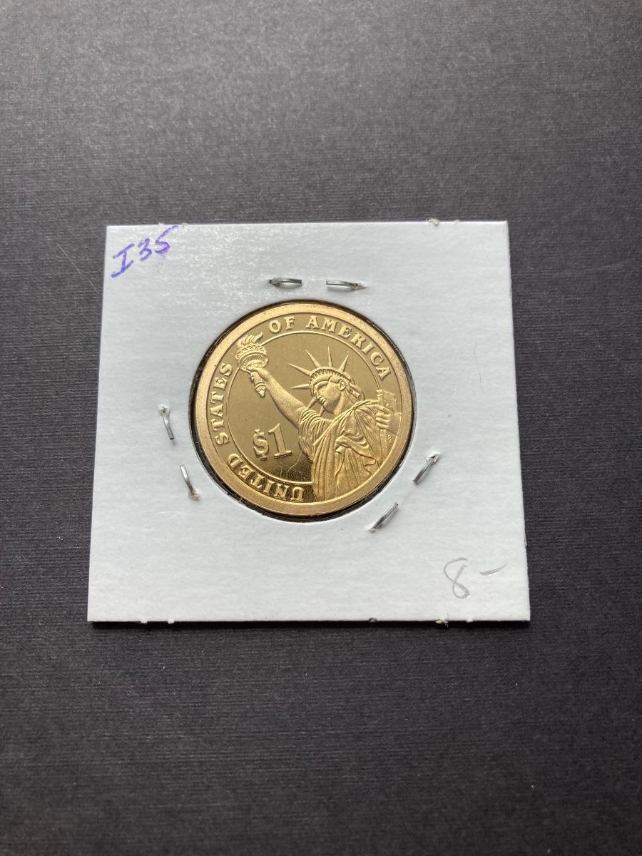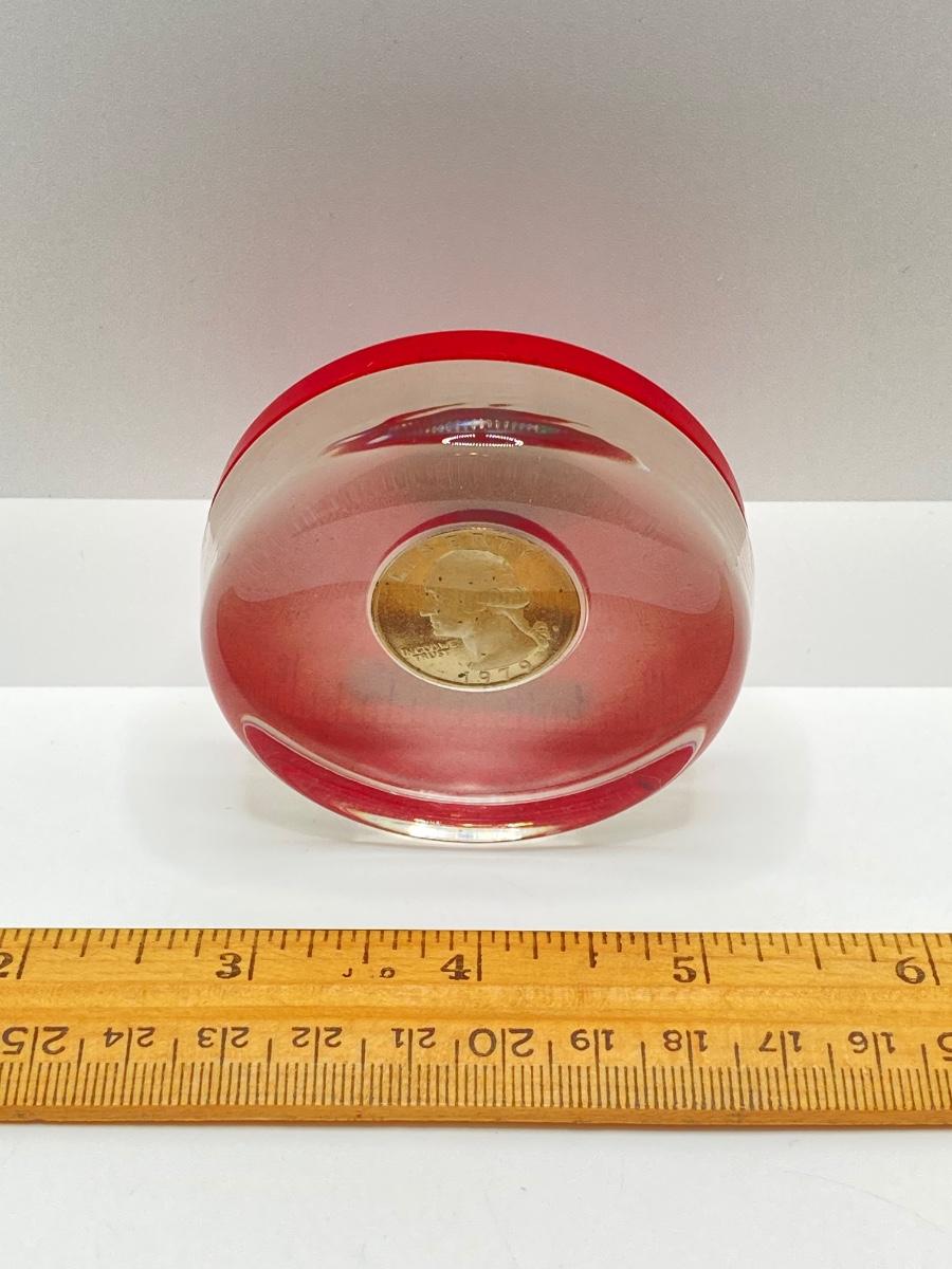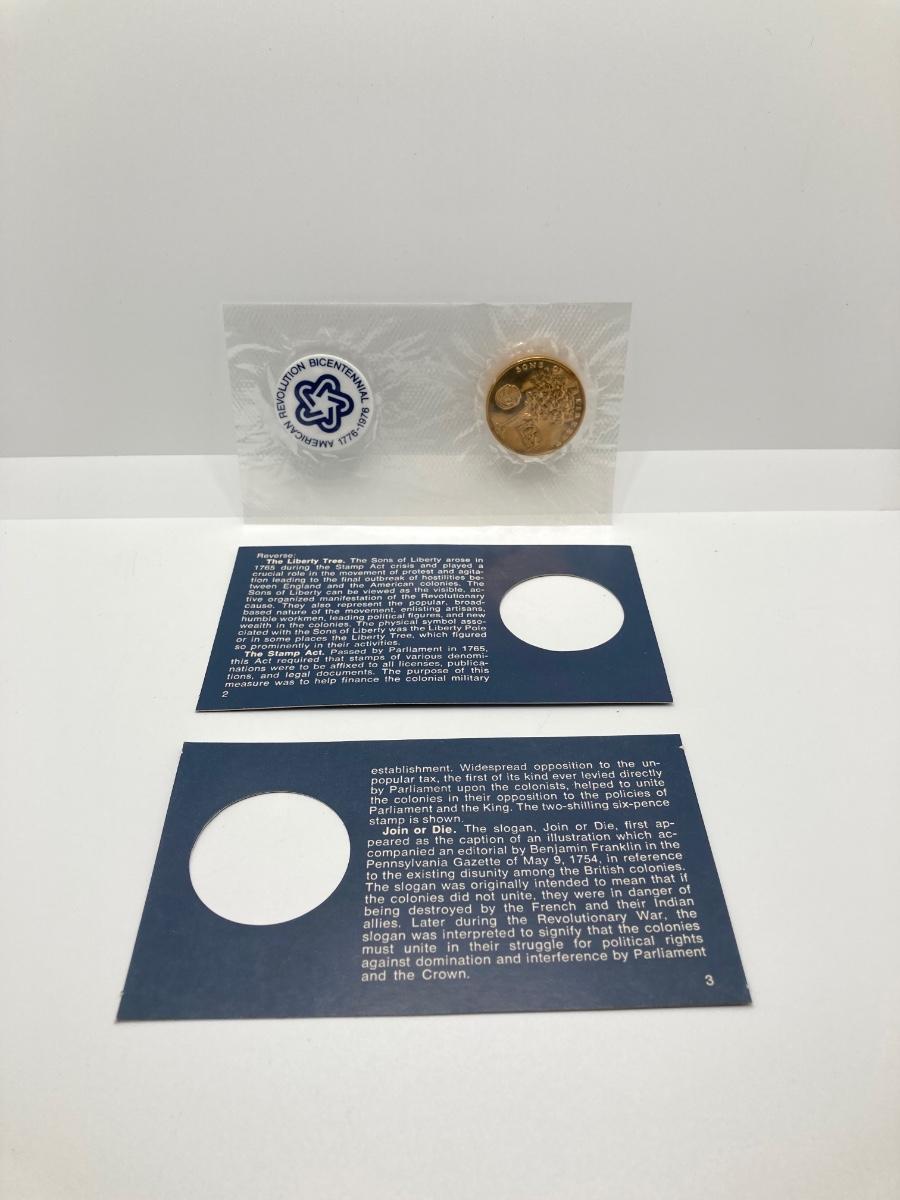 LOT 60: American Revolution Bicentennial Commemorative Medal, Four 2008-S Proof Presidential $1 Dollar Coins and 1979 Quarter Paper Weight