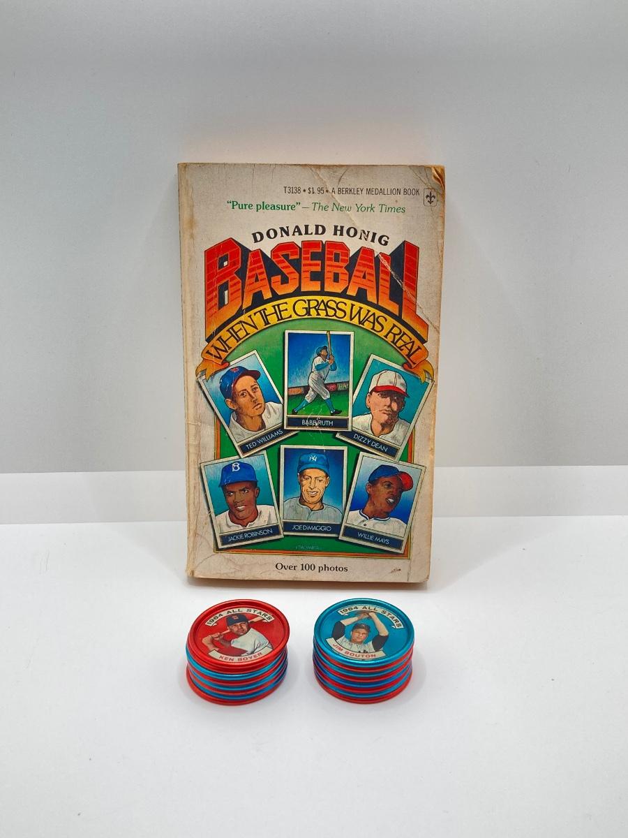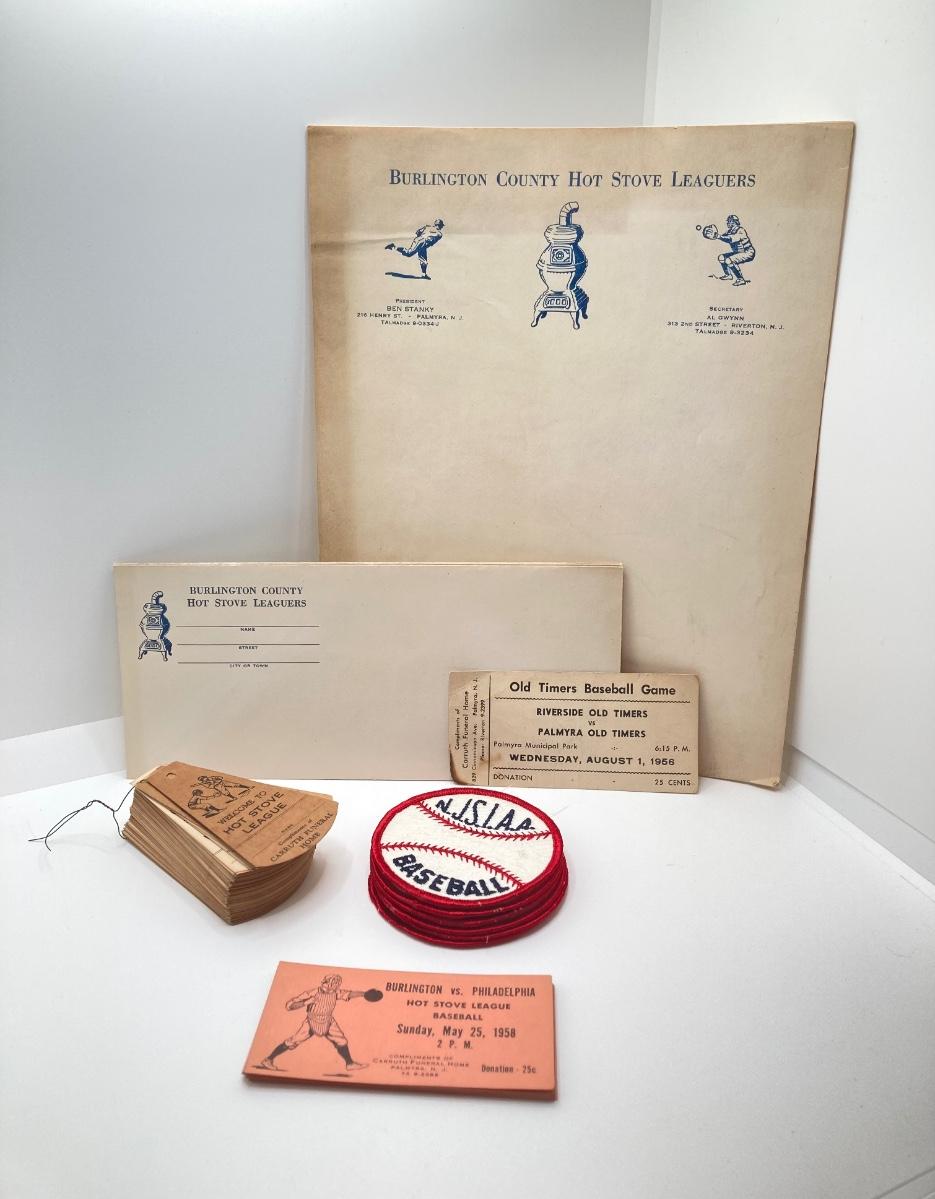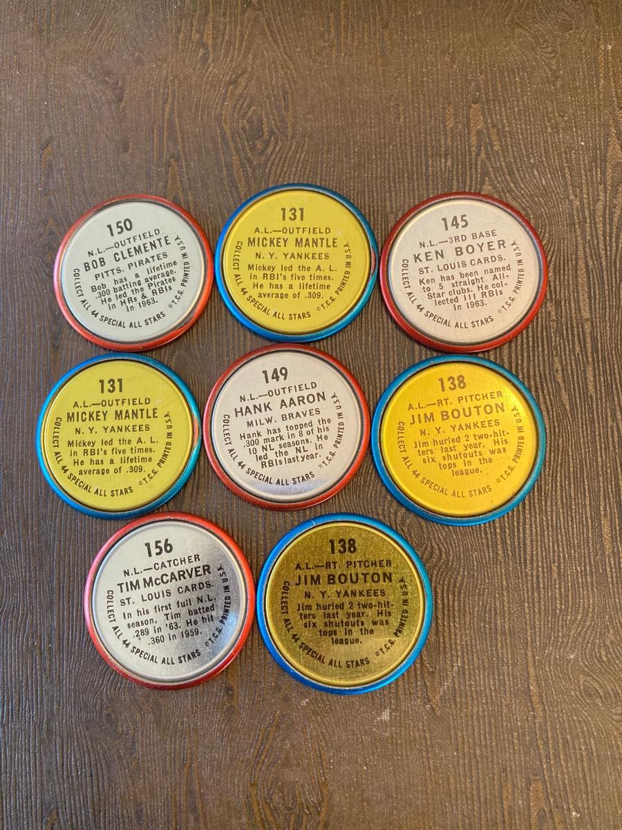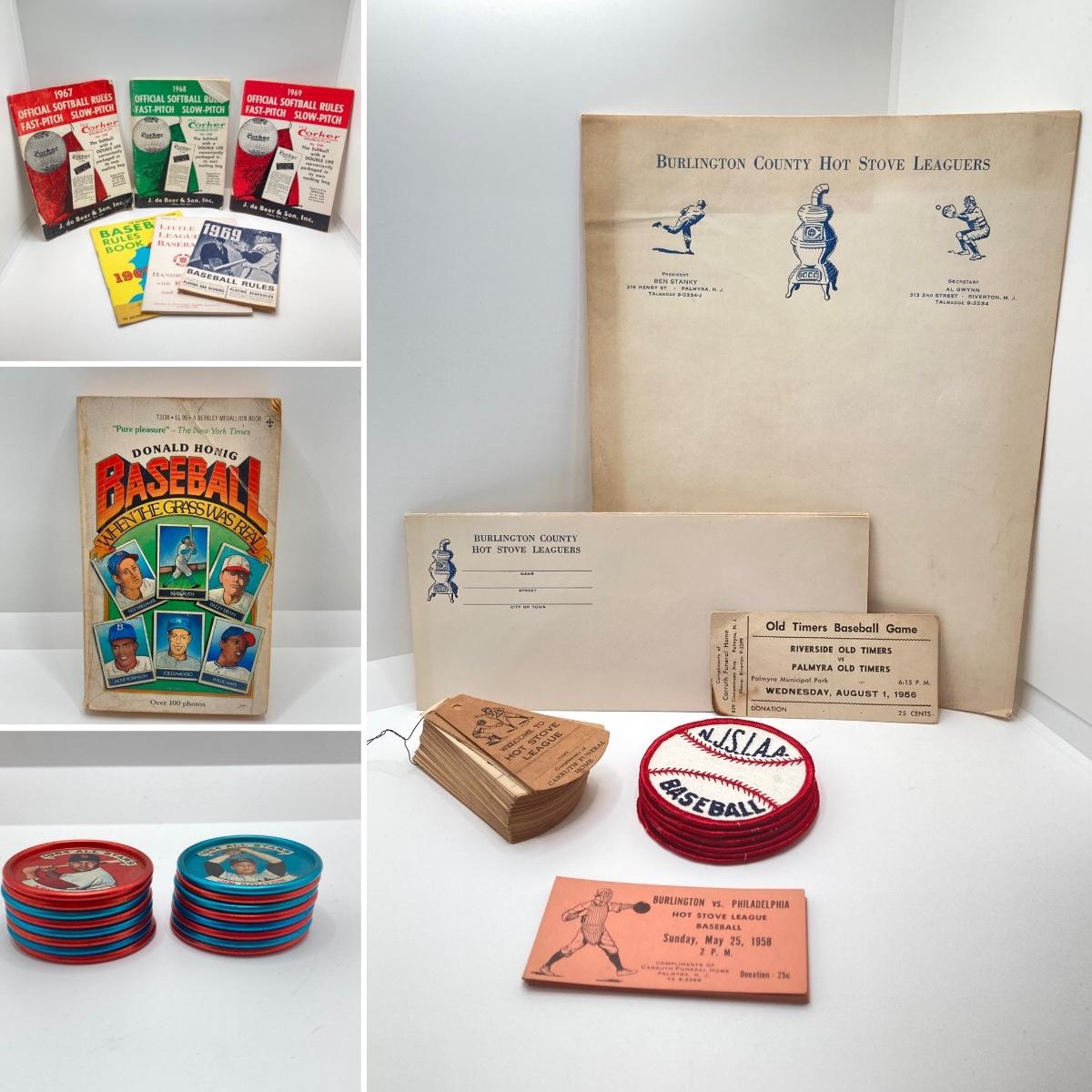 LOT 73: Vintage Baseball Collection - 1964 Metal Baseball Bottle Tops (Willie Mays, Hank Aaron, Mickey Mantle), Books, Stationary, Patches, Tickets and More