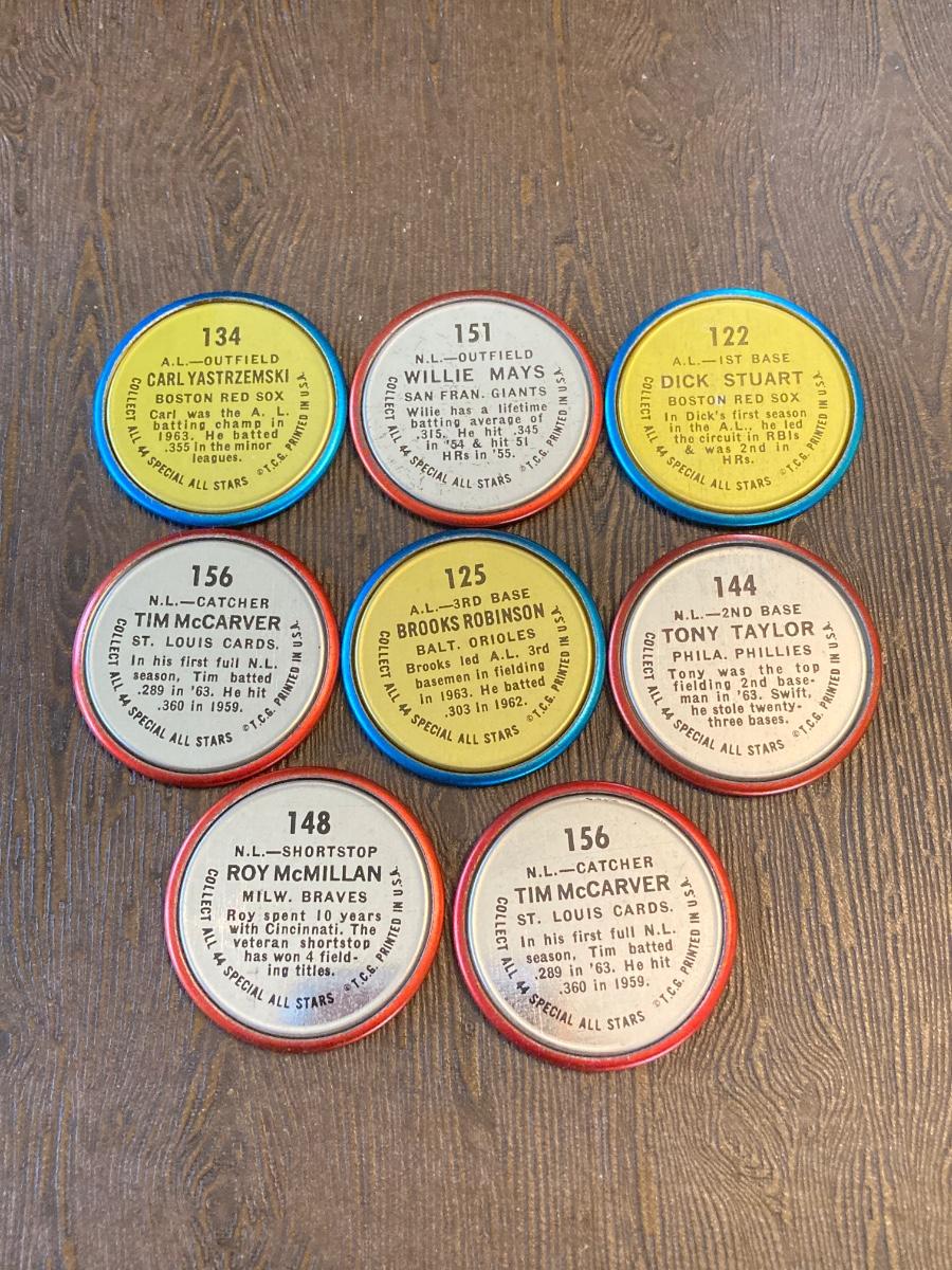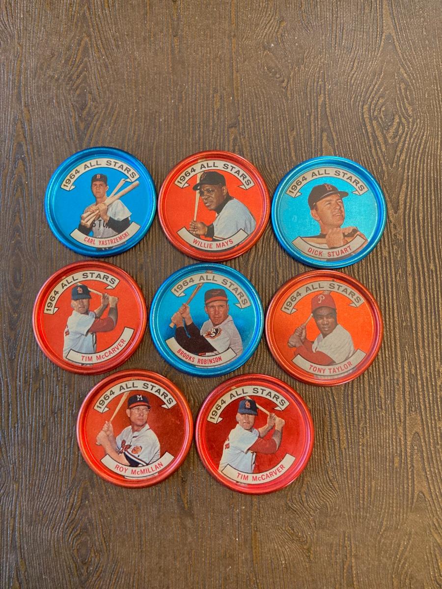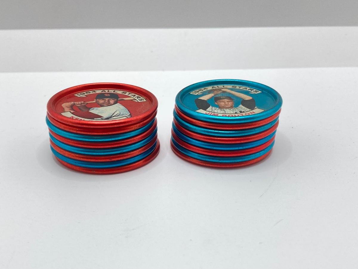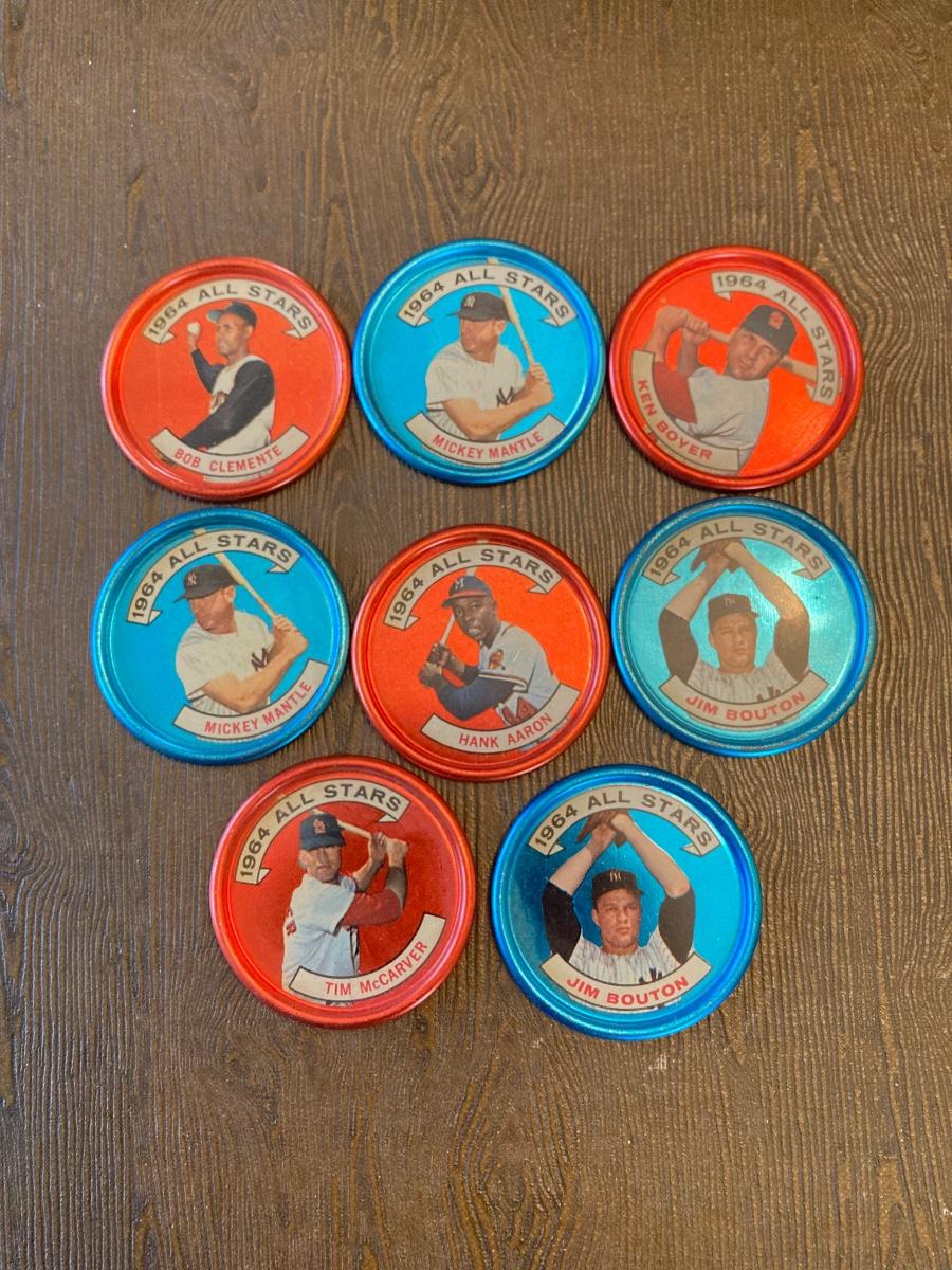 LOT 73: Vintage Baseball Collection - 1964 Metal Baseball Bottle Tops (Willie Mays, Hank Aaron, Mickey Mantle), Books, Stationary, Patches, Tickets and More