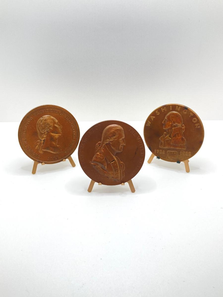 LOT 79: Three Large George Washington Presidential Bronze Medals / Tokens