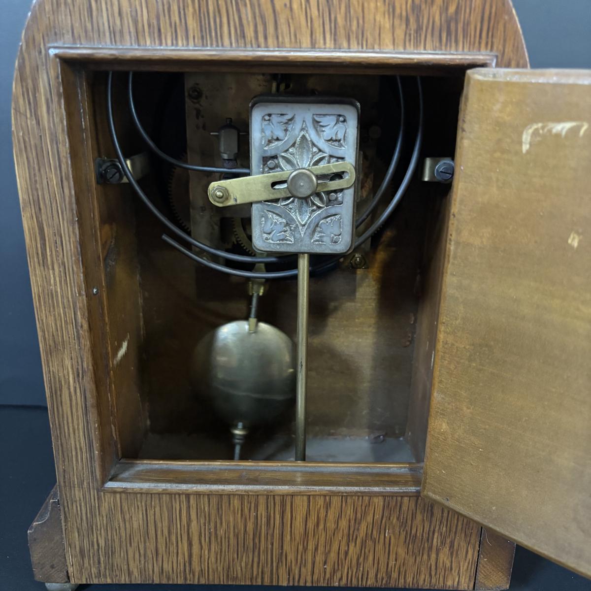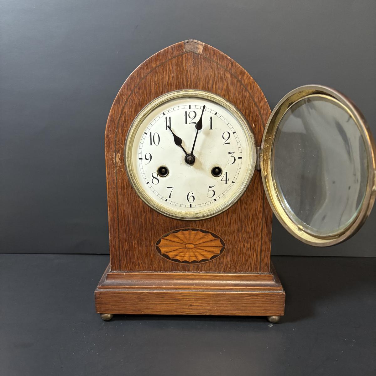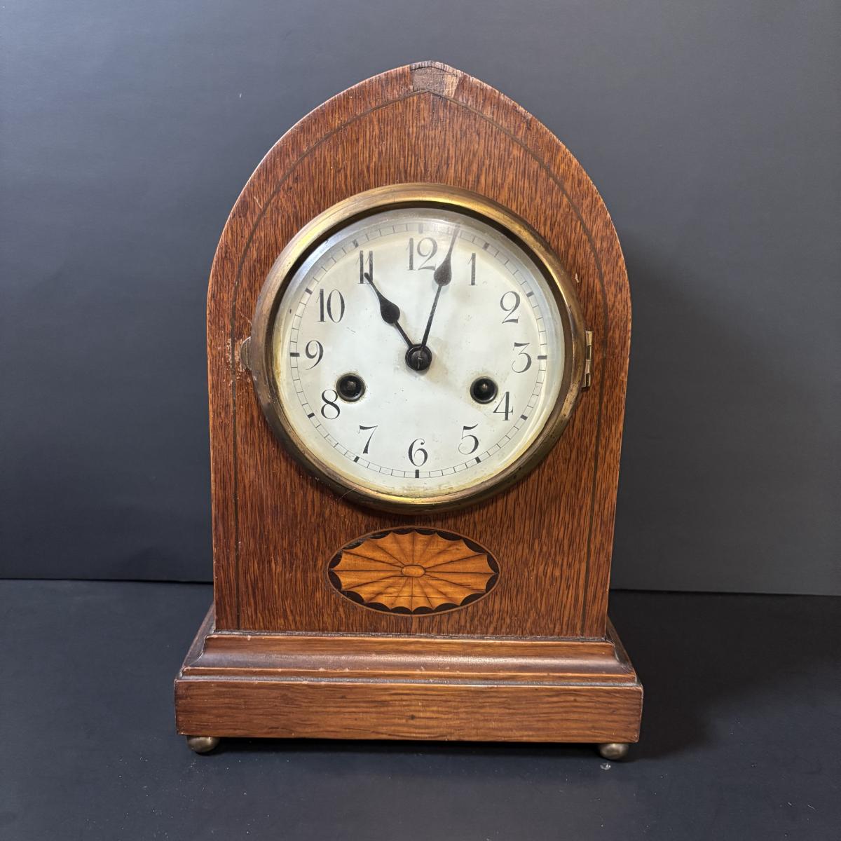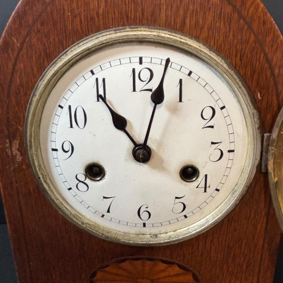 LOT 85: Antique Mantle Clock w/Inlaid Feature