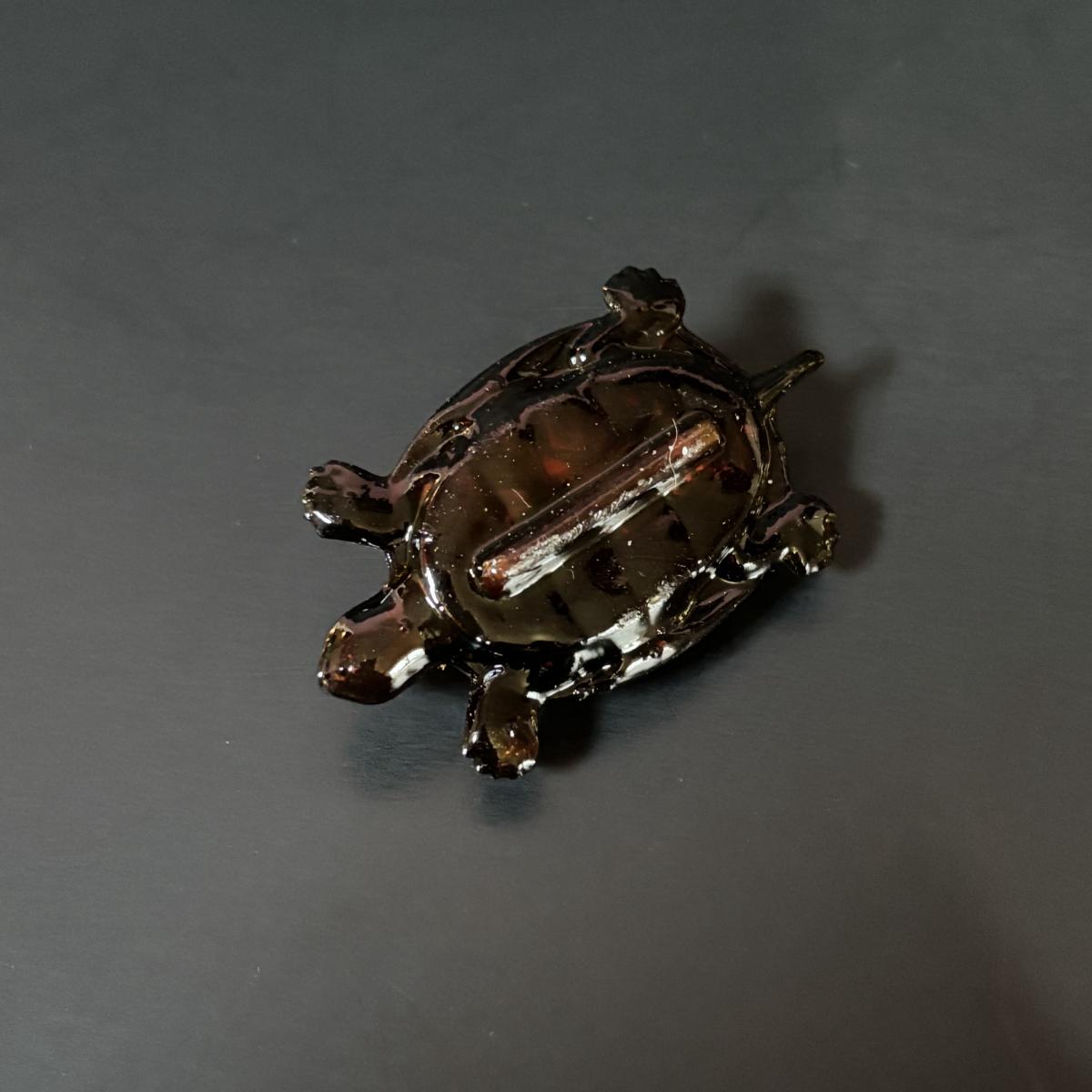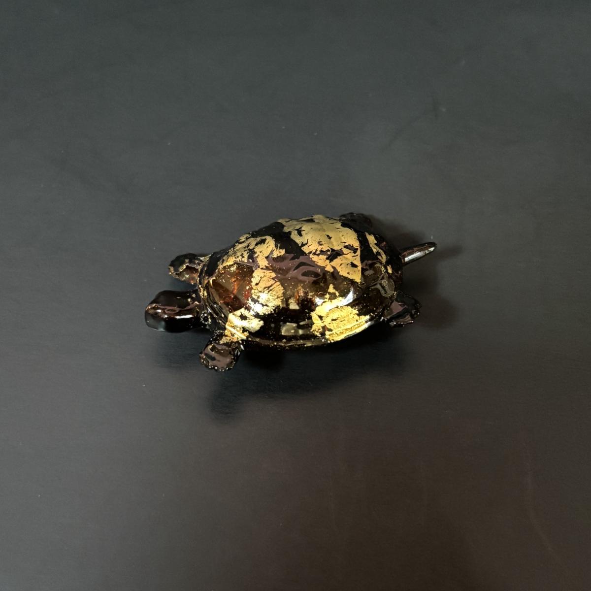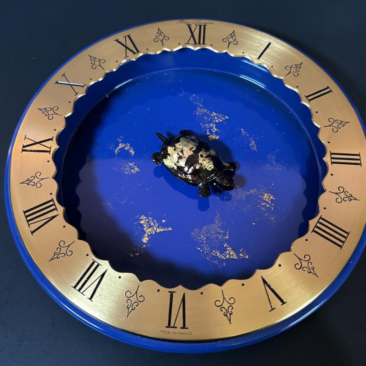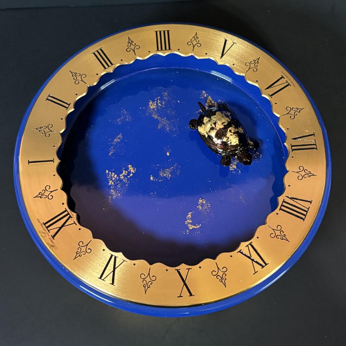 LOT 94: Hour Lavigne Gilt and Lacquered Metal Mystery Turtle Clock, Battery Operated in Box