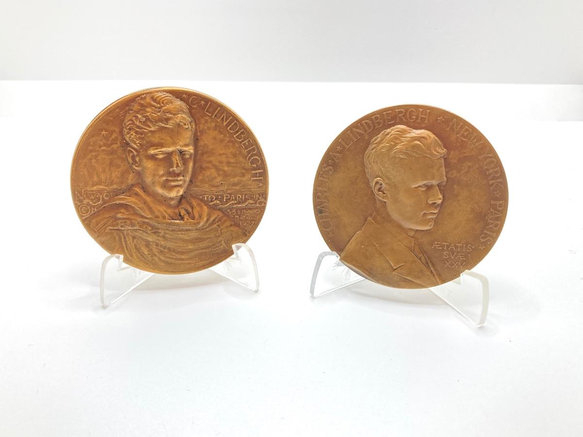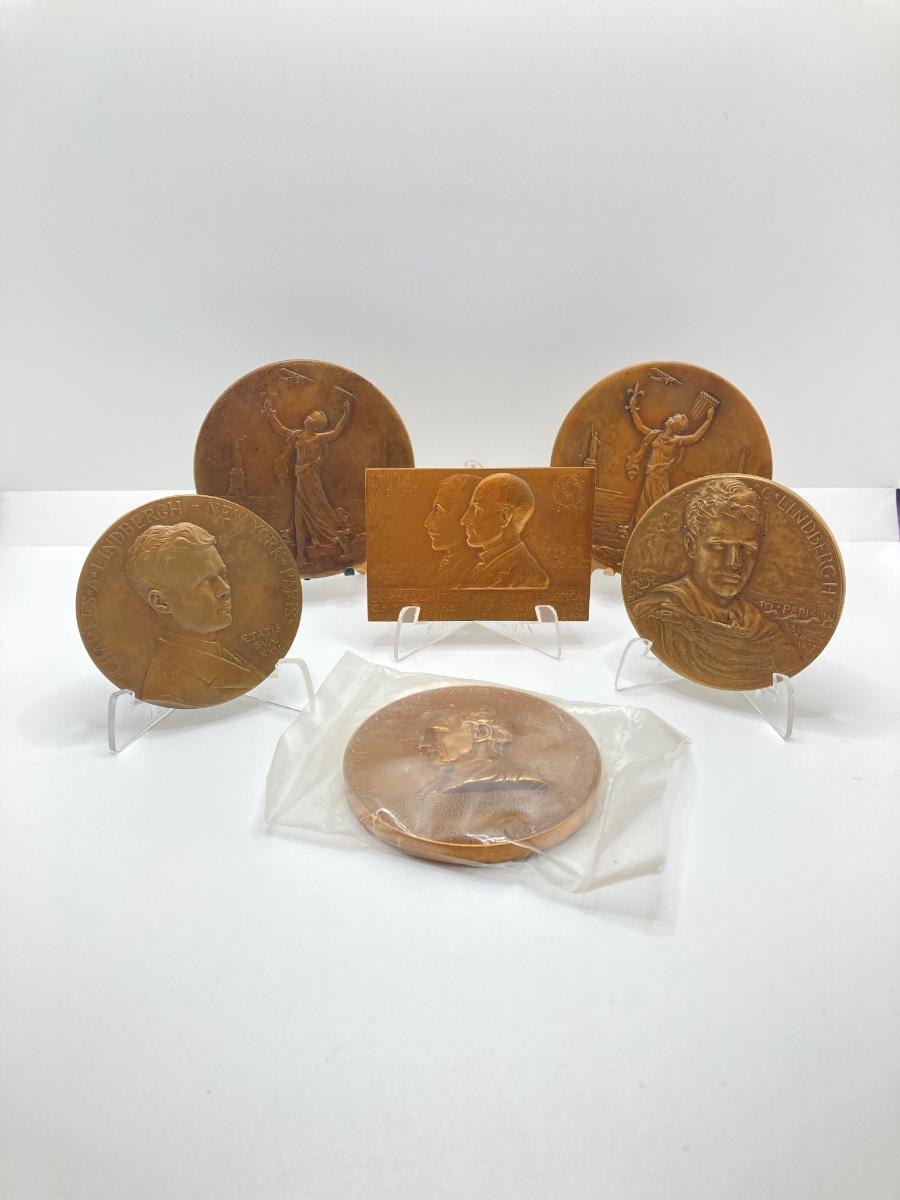 LOT 110: Collection of Bronze Metals / Tokens - Charles Lindbergh, Joseph Francis and Orville & Wilbur Wright,