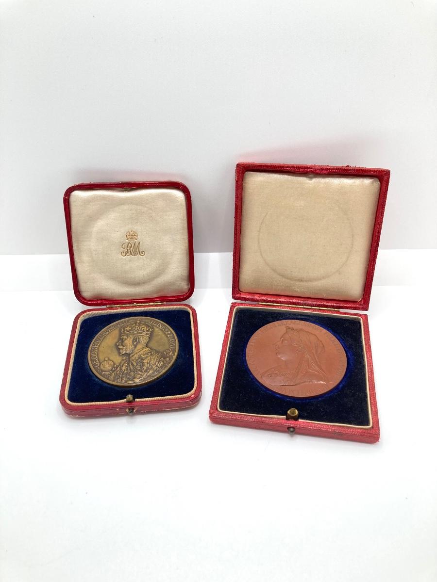 LOT 114: King George V / Queen Mary 1911 Coronation Medal in Case and 1897 Victoria Annvm Regni Sexagesimvm Feliciter Clavdit XX Ivn Mdcccxcviii in Case