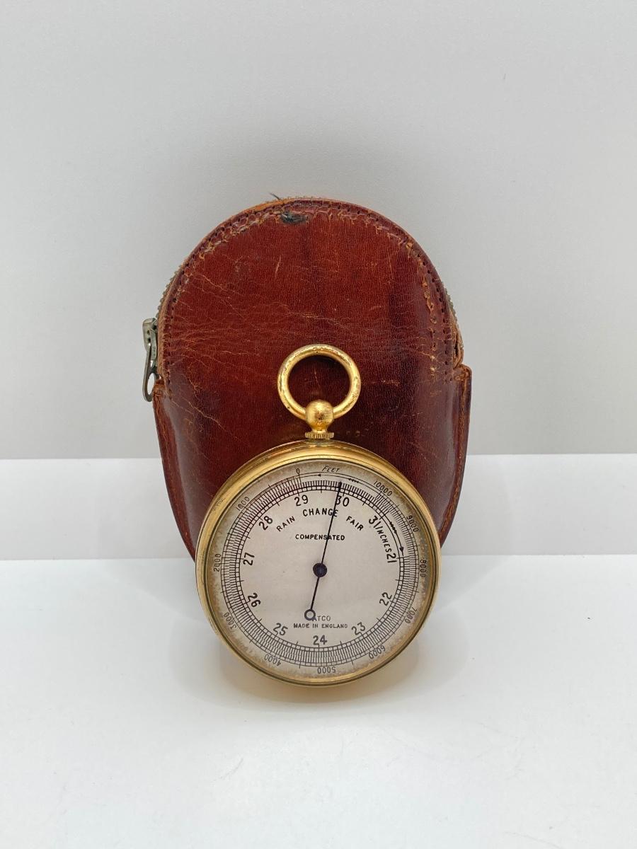 LOT 115: Vintage Made in England ATCO Compensated Pocket Barometer in Case