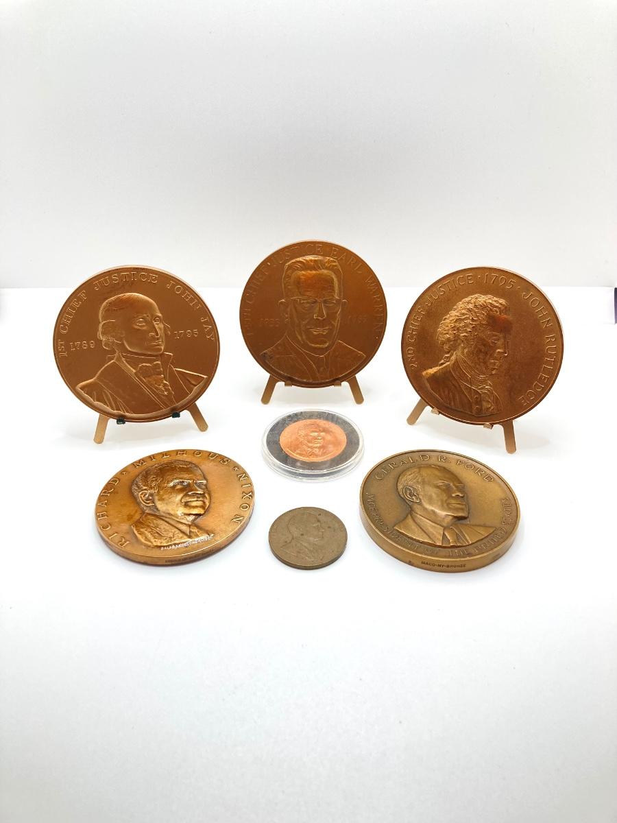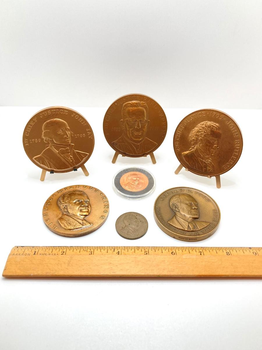 LOT 117: Seven Bronze Medals / Tokens - Richard Nixon, Gerald Ford, Chief Justice John Jay, Chief Justice John Rutledge, Chief Justice Earl Warren and More