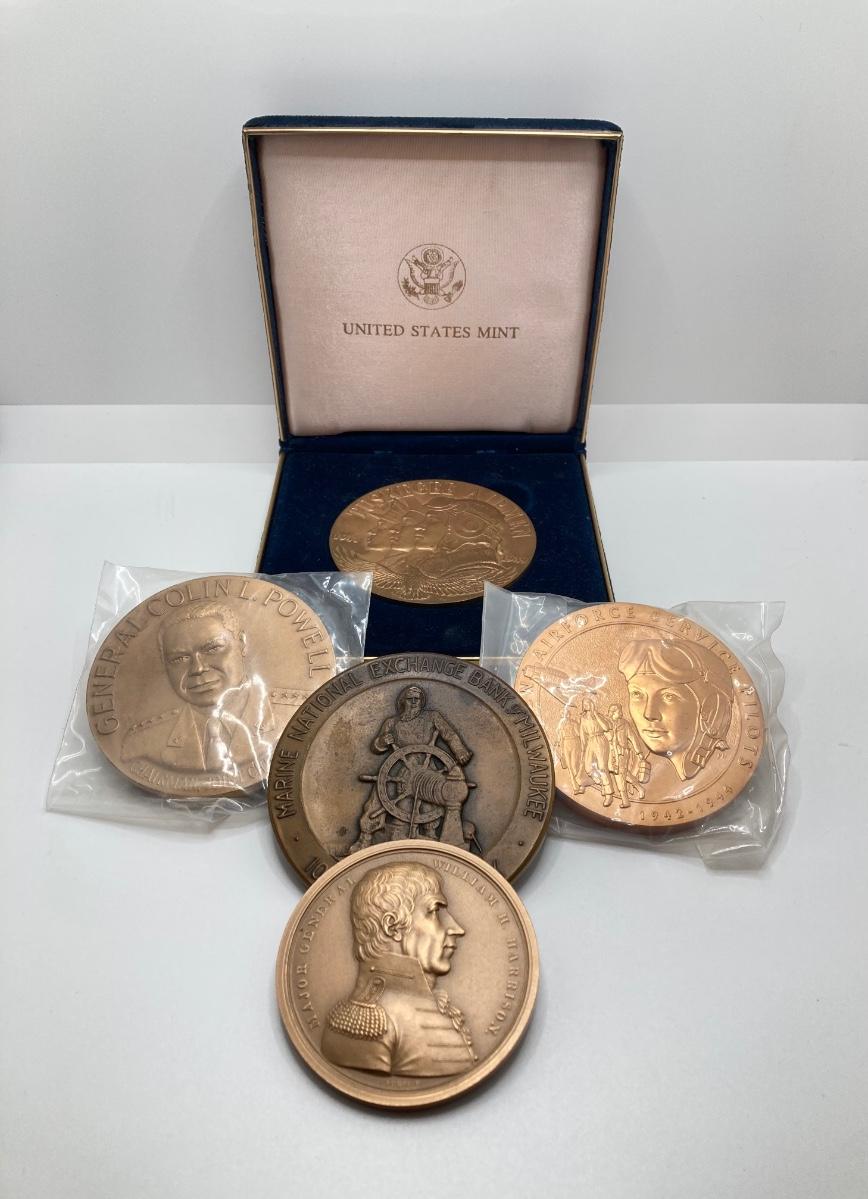 LOT 118: Collection of Vintage Bronze Medals / Tokens - United States Mint Tuskegee Airmen, General Colin Powell, Women Airforce Service Pilots and More