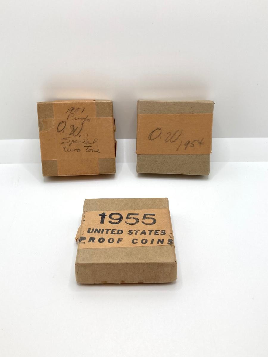 LOT 122: 1951, 1954 and 1955 U.S. Mint Proof Sets in Original Boxes