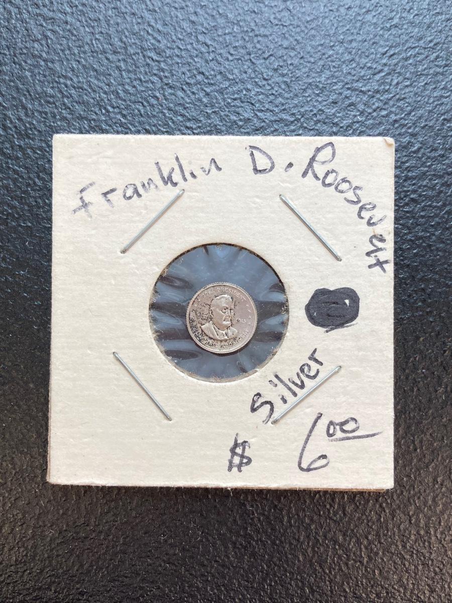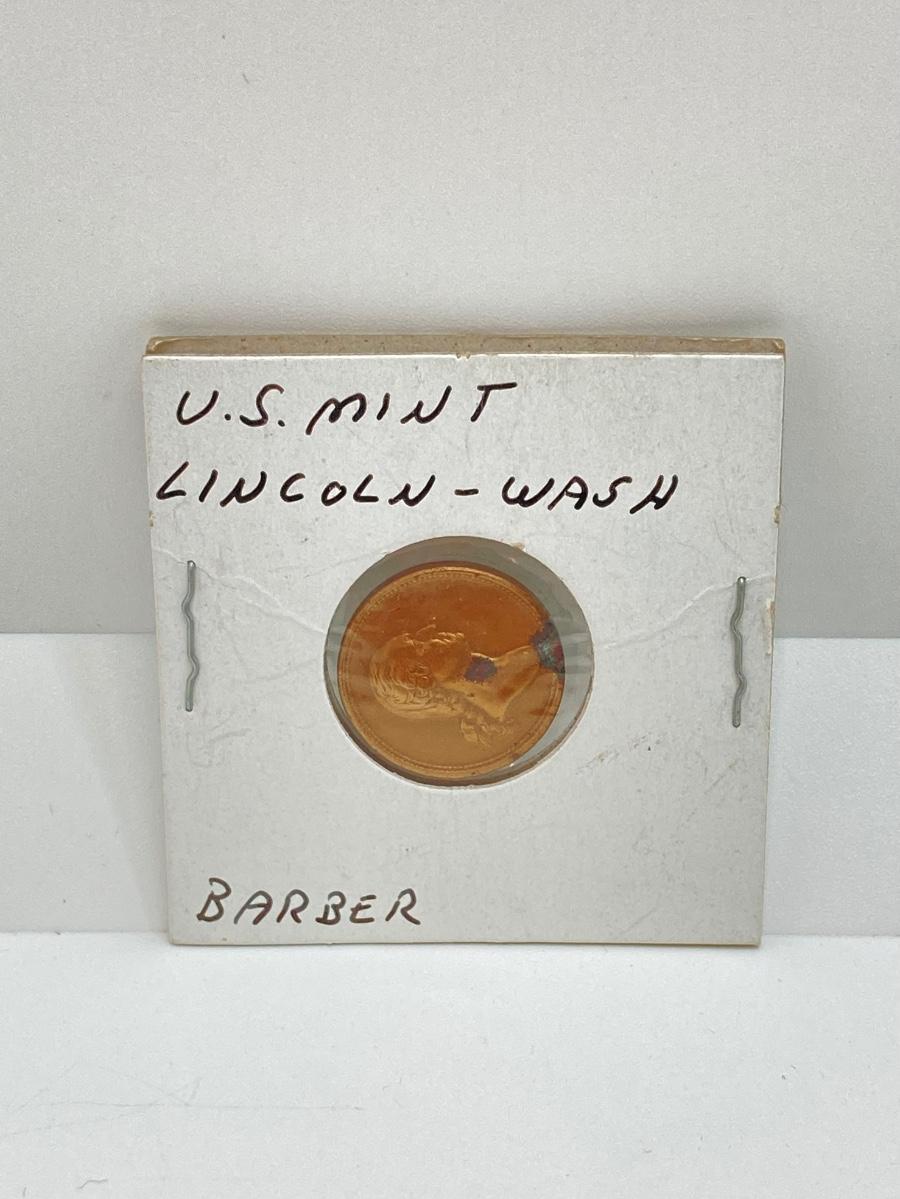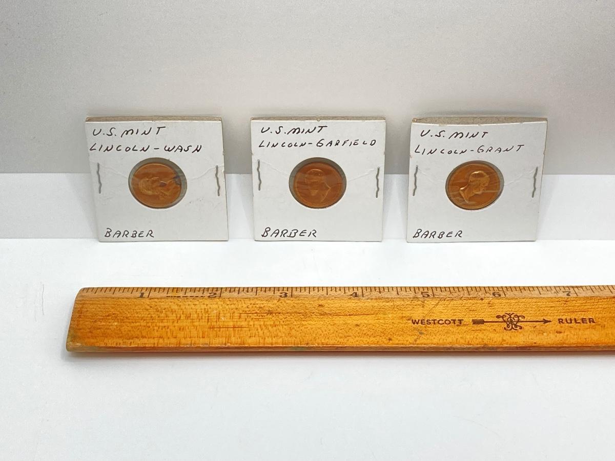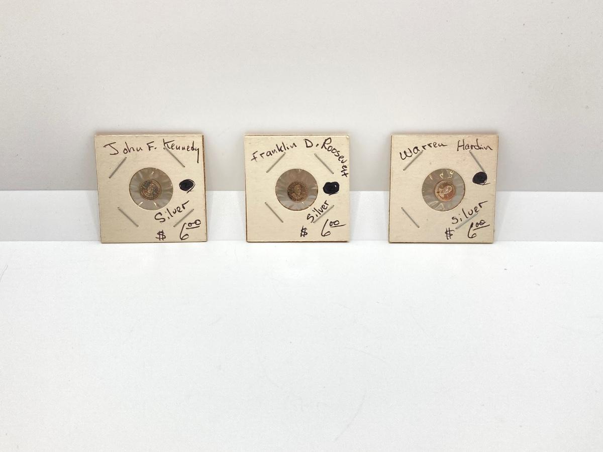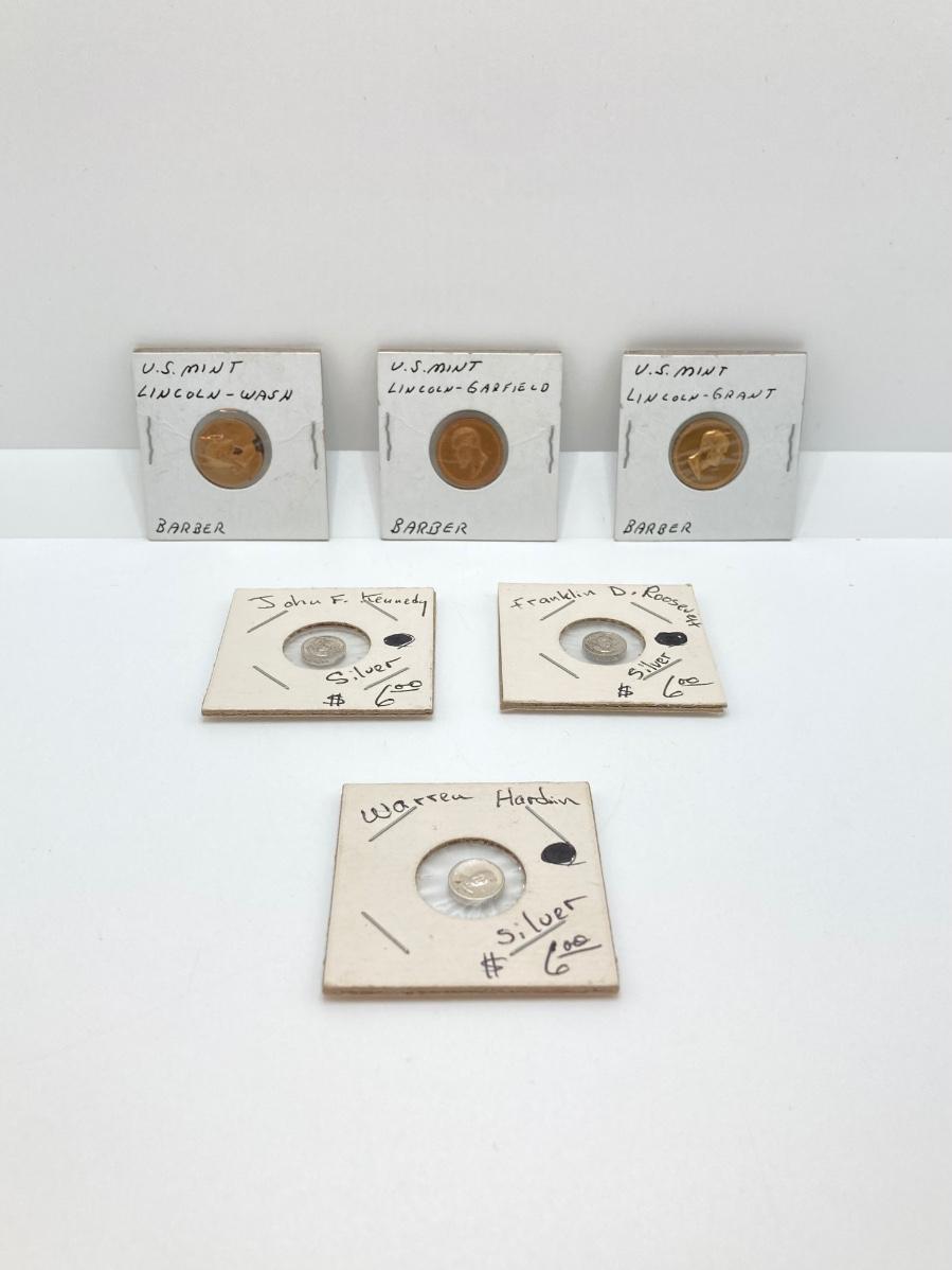 LOT 131: U.S. Mint Coins - (3) Barber Coins (Lincoln / Washington, Lincoln - Garfield, Lincoln - Grant), (3) Small Silver Coins (John F. Kennedy, Franklin D. Roosevelt and Warren Hardin