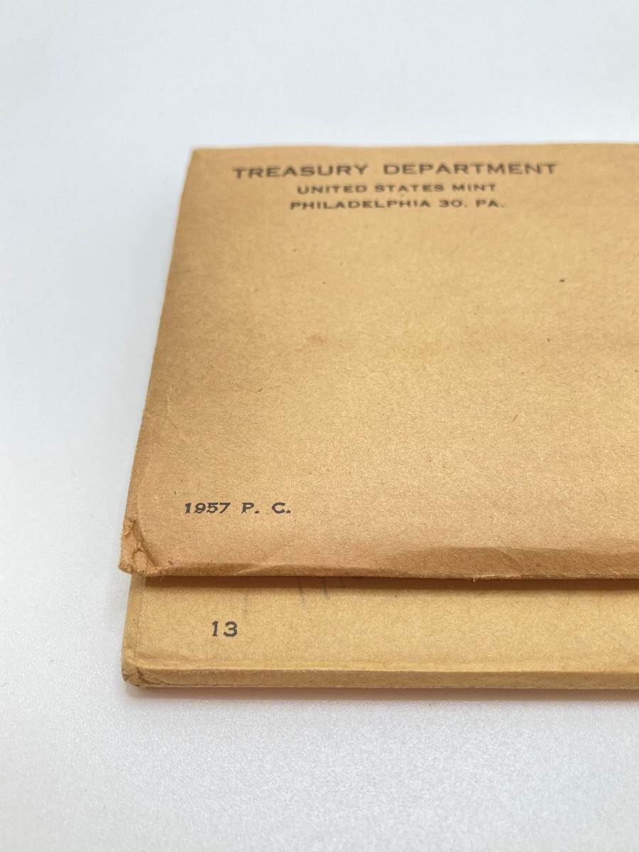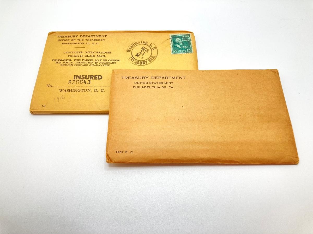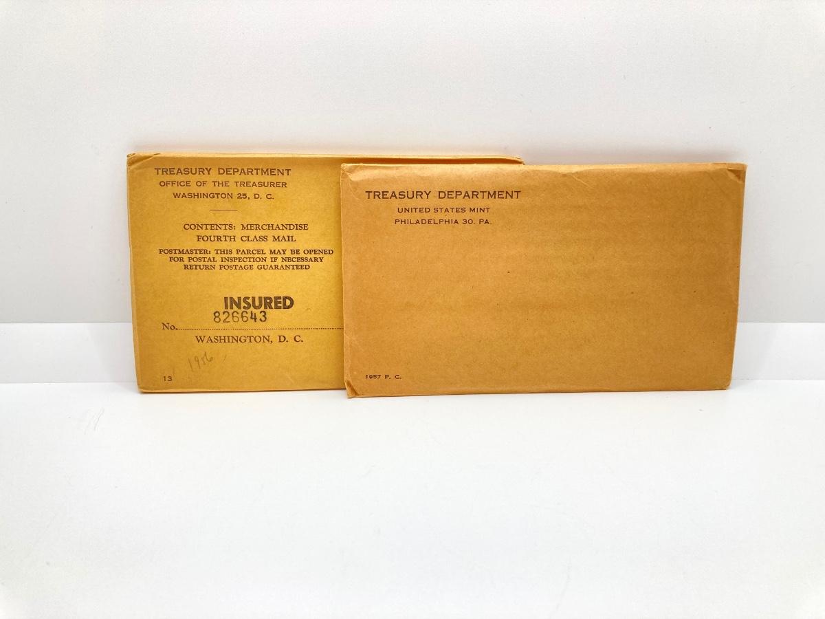 LOT 135: 1956 and 1957 U.S. Philadelphia Mint Coin Proof Sets sealed Original Envelopes