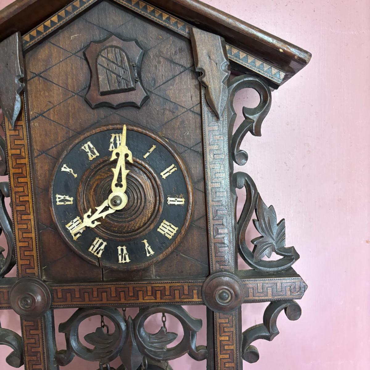 LOT 141: Vintage Cuckoo Clock with Inlay Details & Intricated Carvings