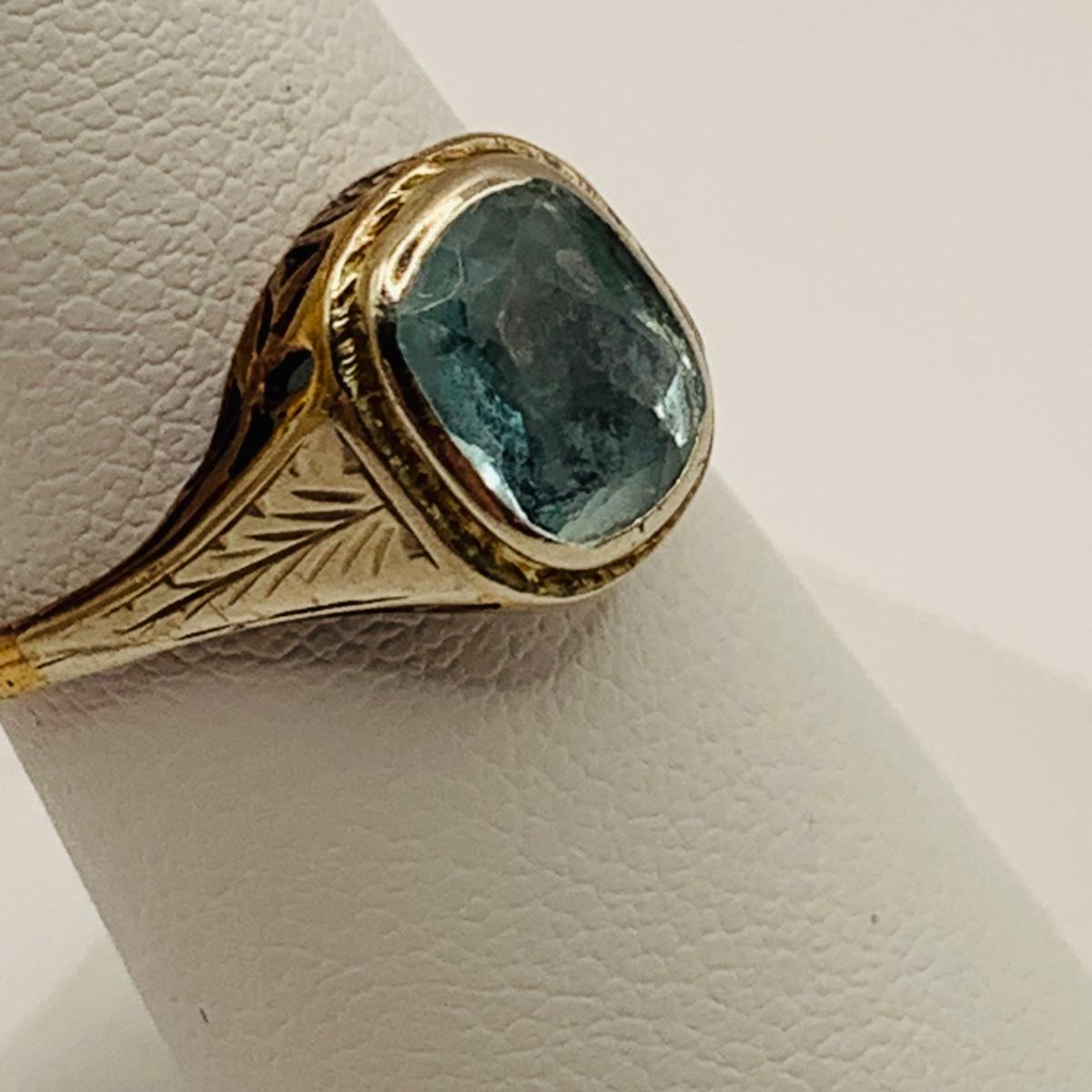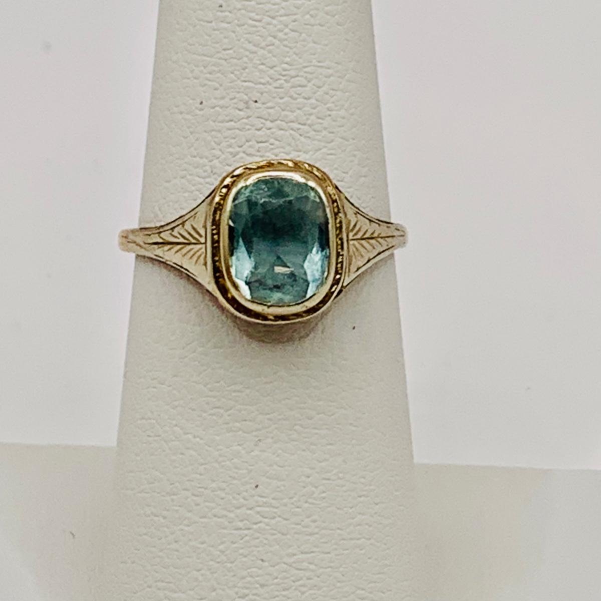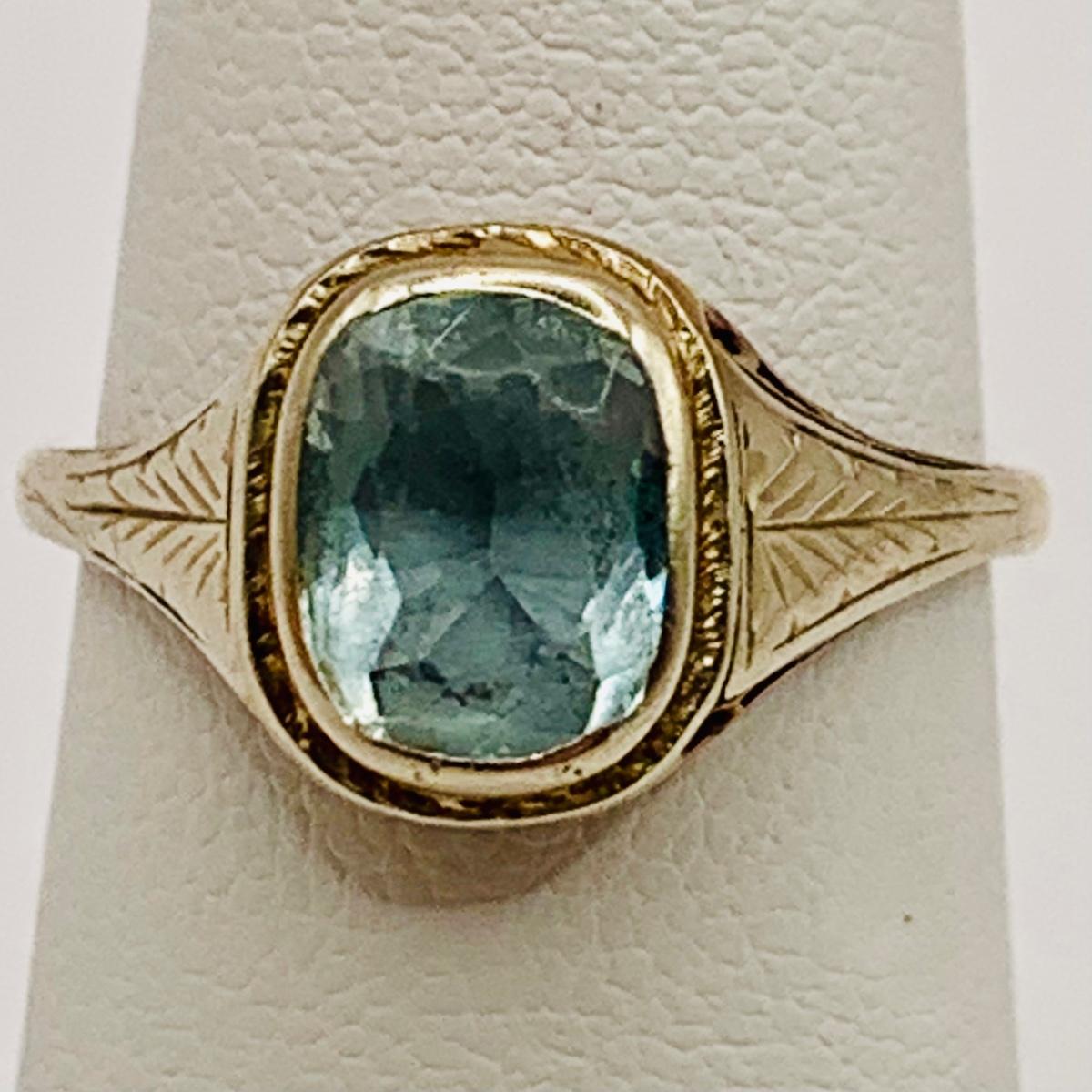 LOT 158: 14K Gold Art Deco Aquamarine Ring Size 5.5 - 2.3gtw