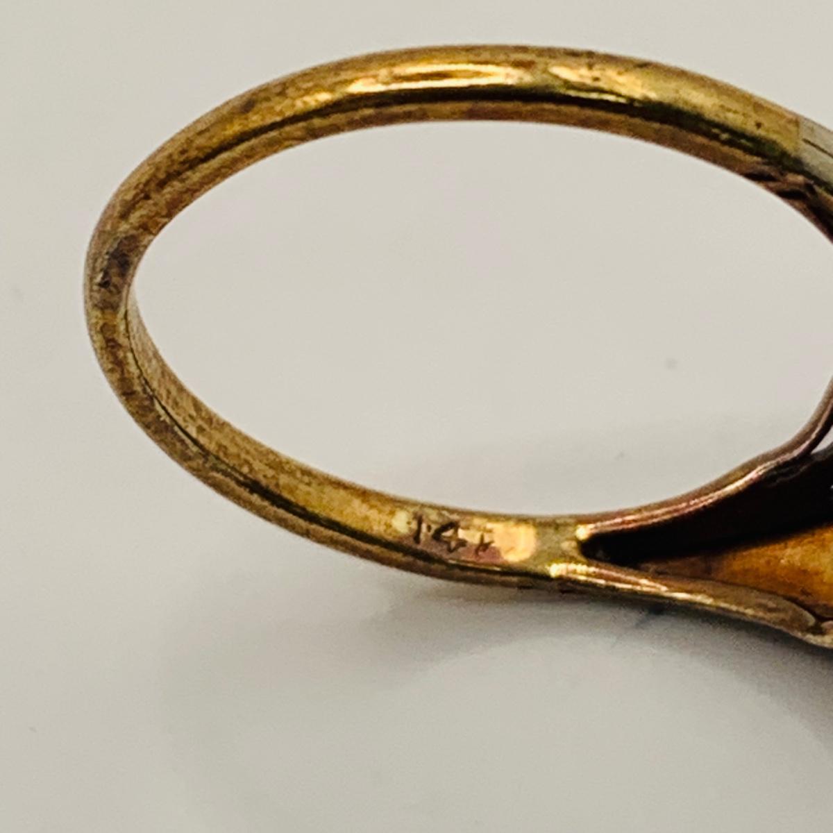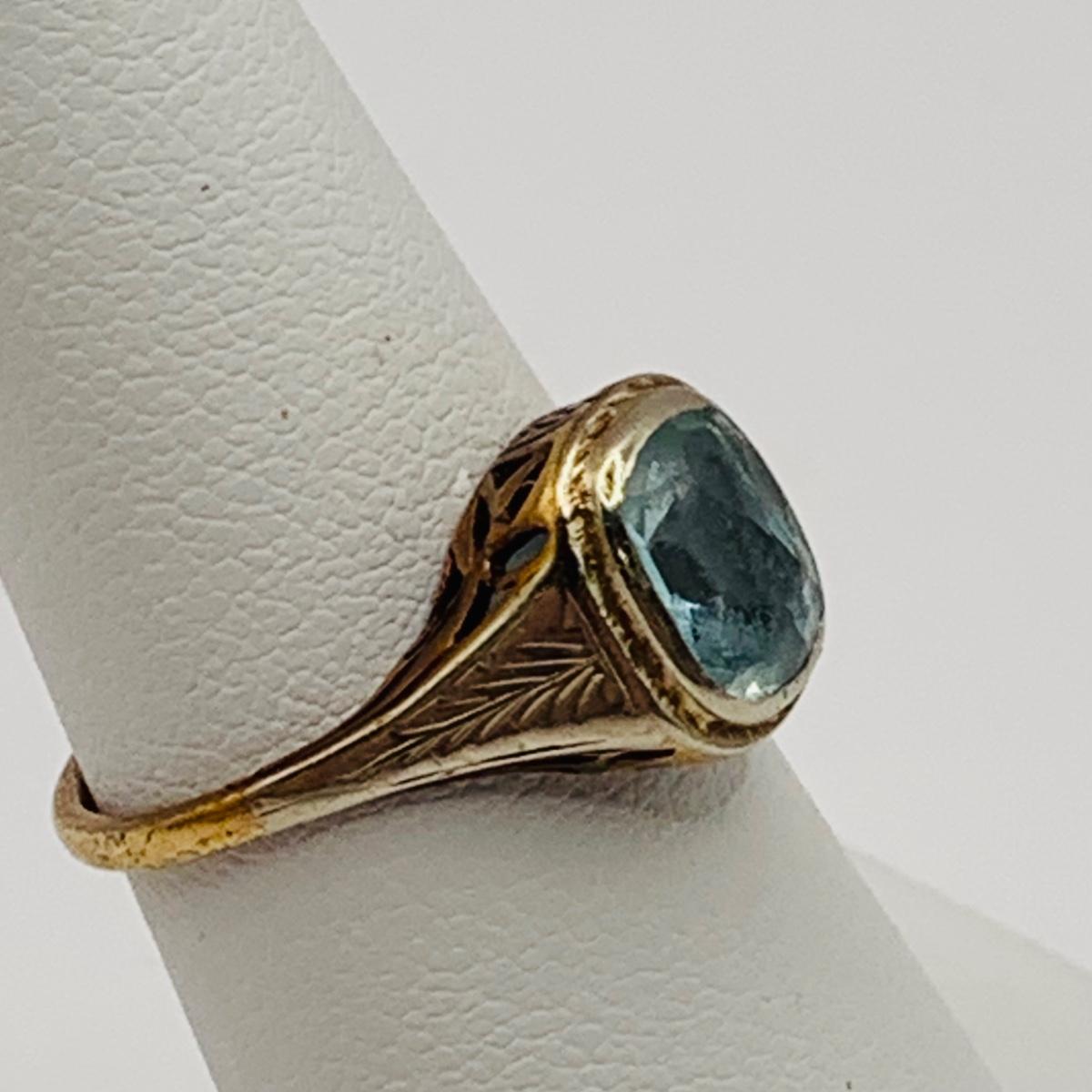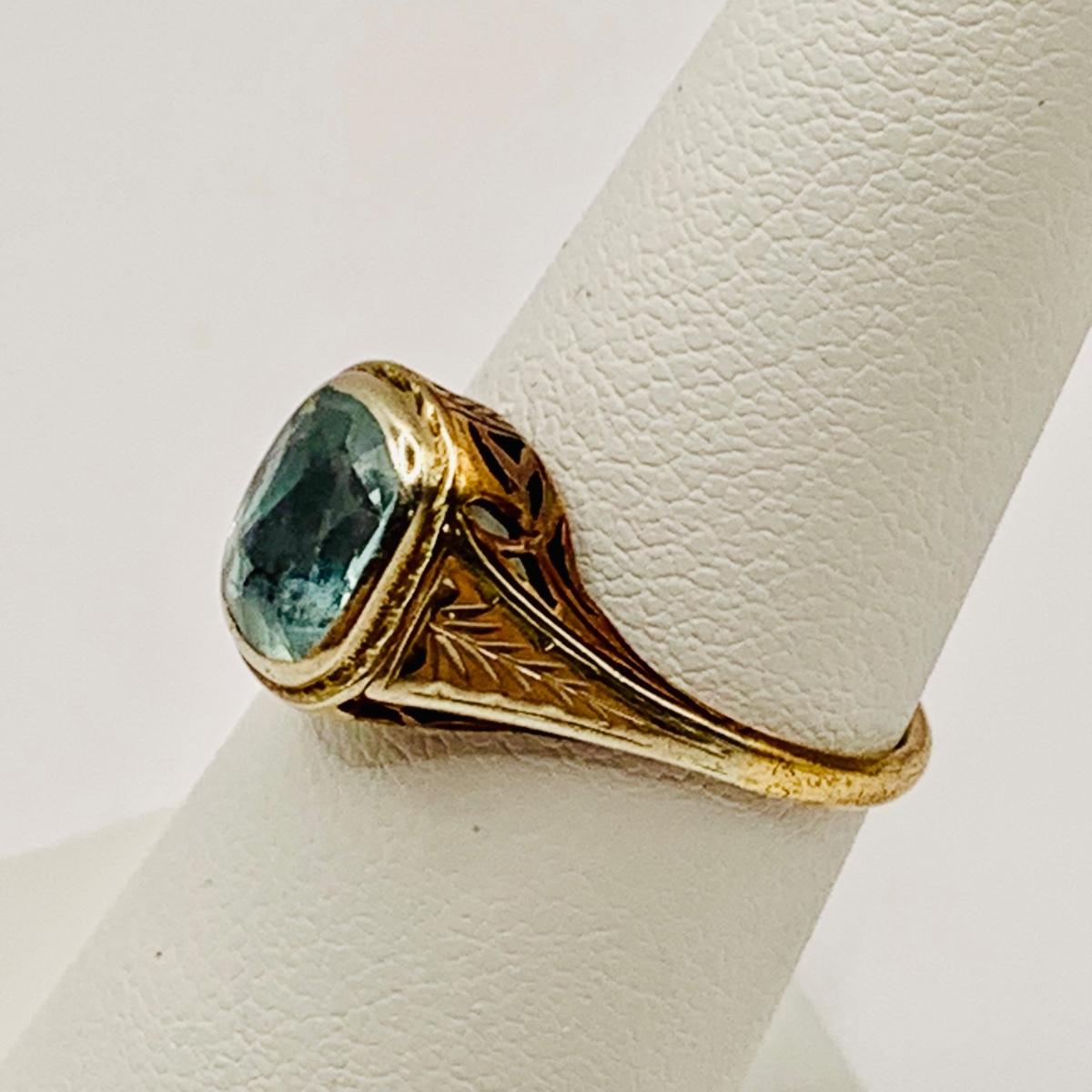 LOT 158: 14K Gold Art Deco Aquamarine Ring Size 5.5 - 2.3gtw