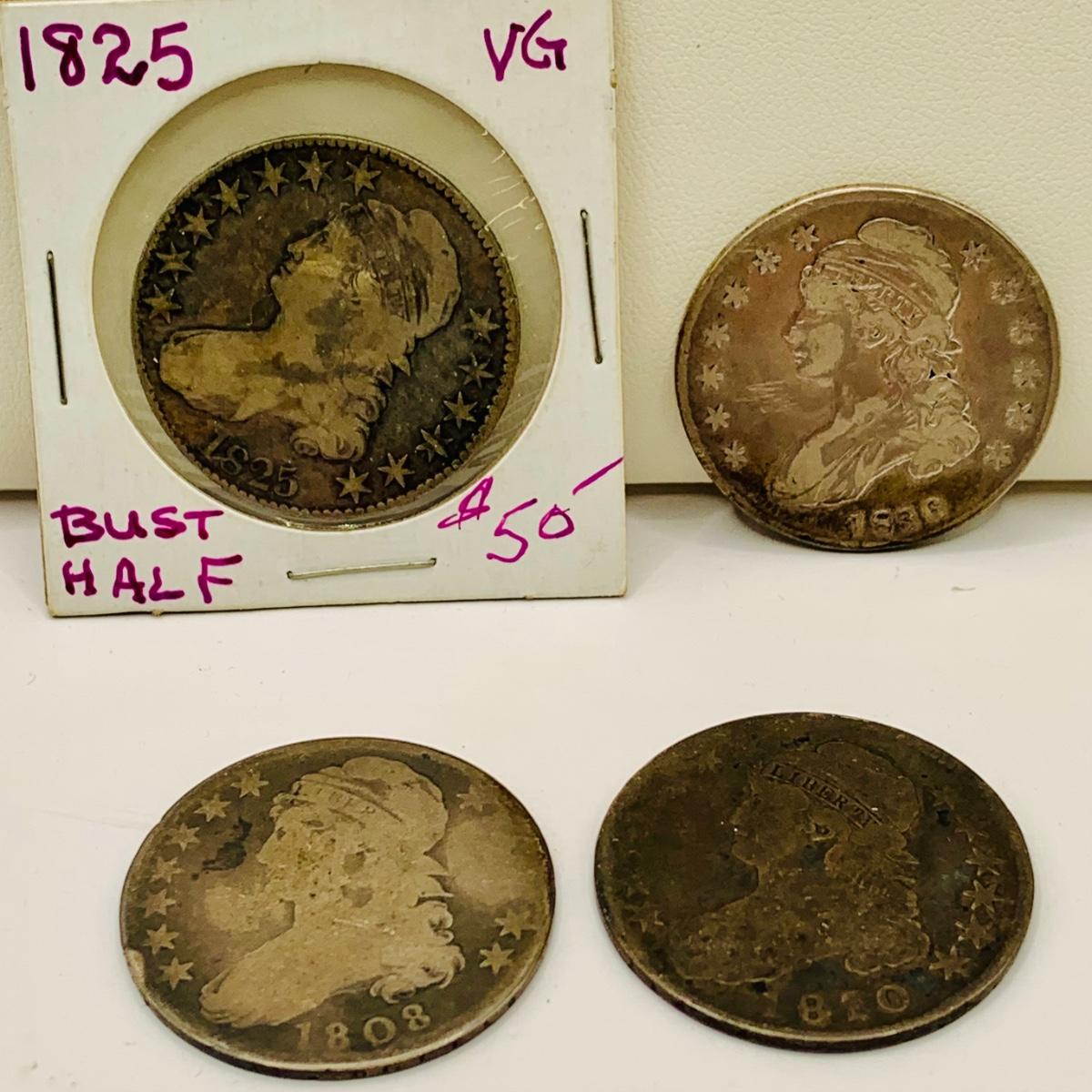 LOT 161: Set of 4 Liberty Bust Half Dollars 1808, 1810, 1825, 1830