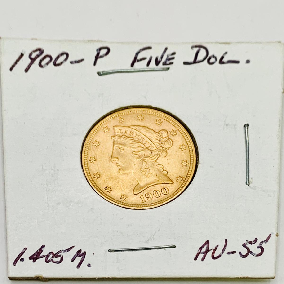 LOT 172: 1900 Gold Liberty Head/ Eagle $5.00 Coin