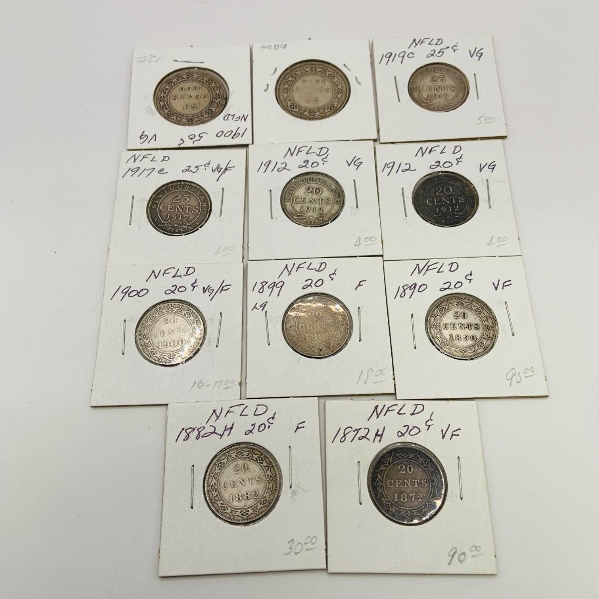 LOT 173: Antique Foreign Coin - Newfoundland 20 and 25 Cent Pieces 1872 -1912