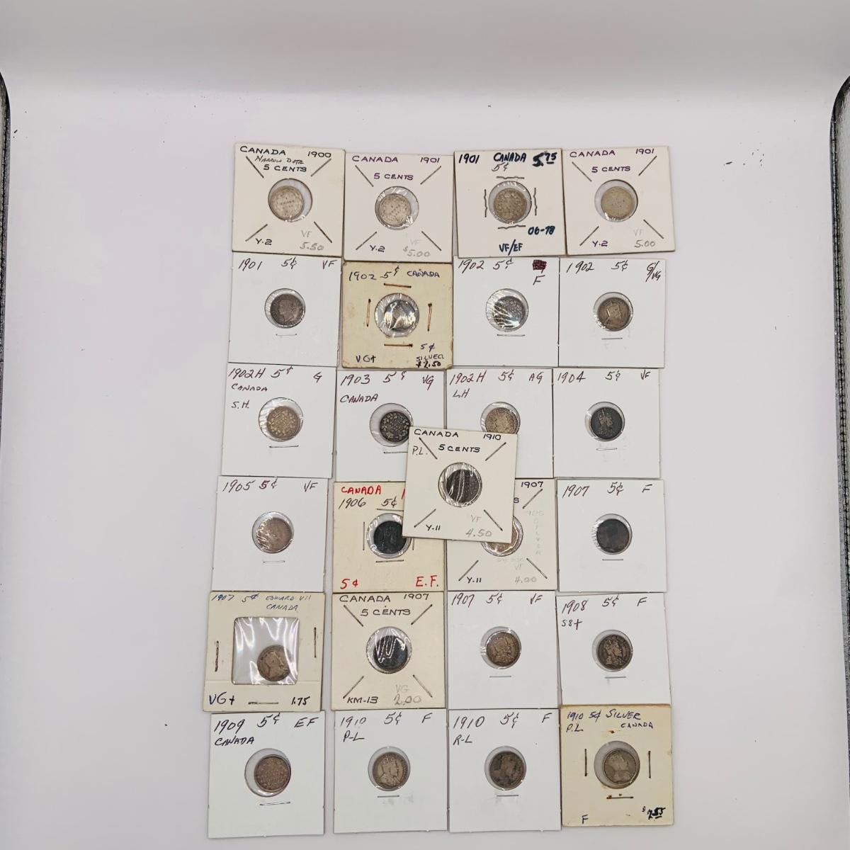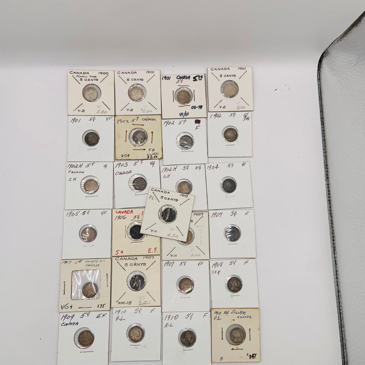 LOT 183 Canadian Nickels 1900-1910 Silver 92.5%