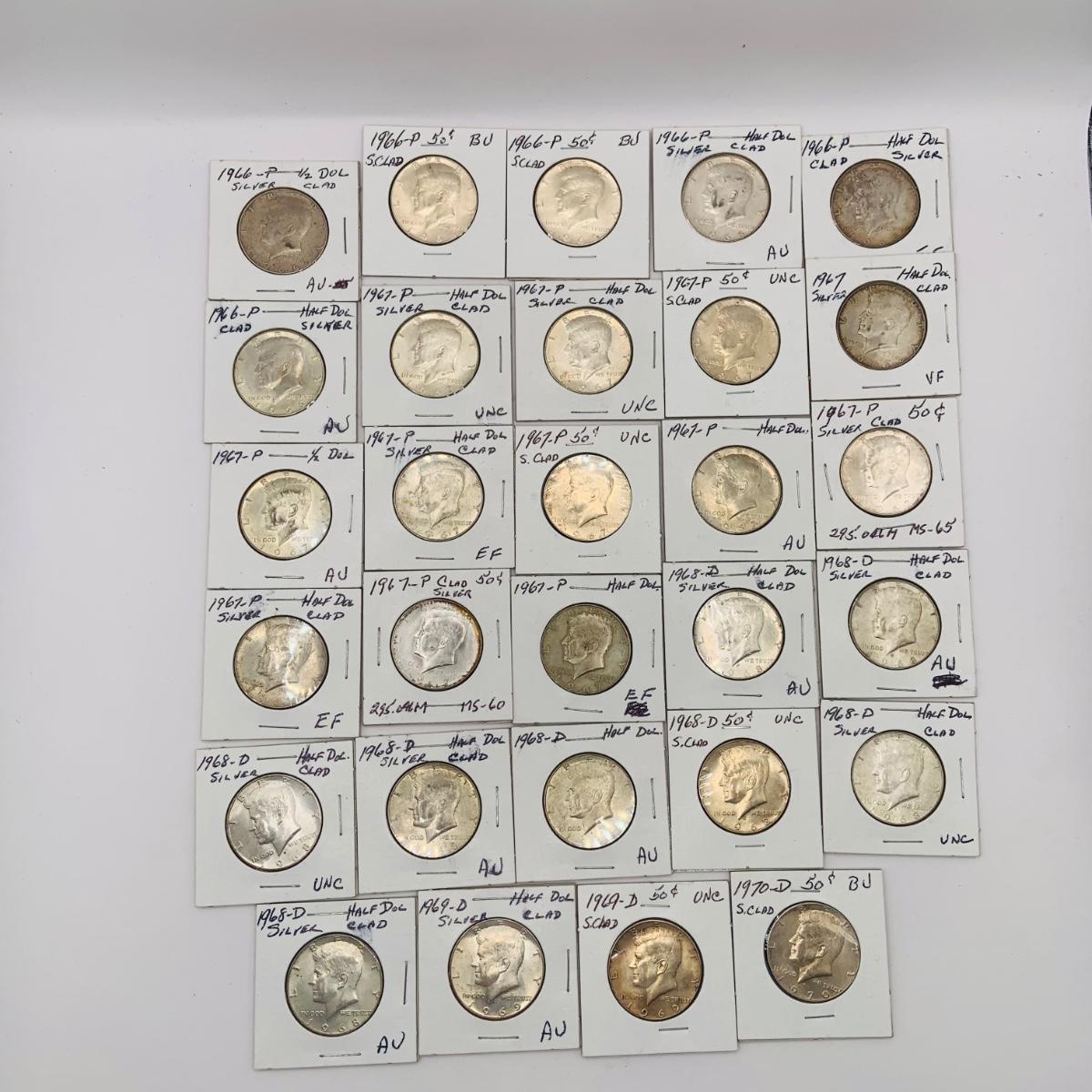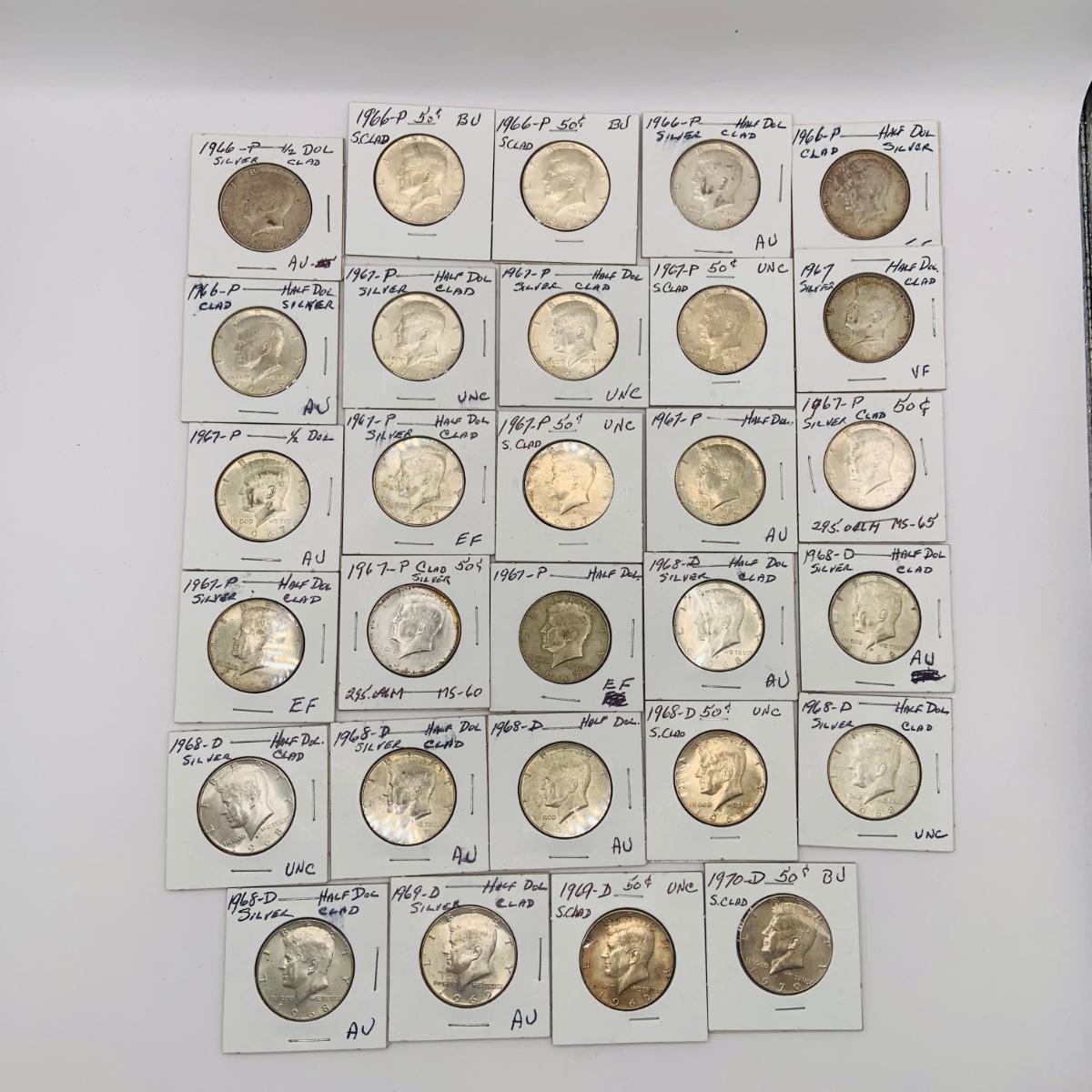 LOT 183: Kennedy Silver Clad Half Dollars 1966 - 1970