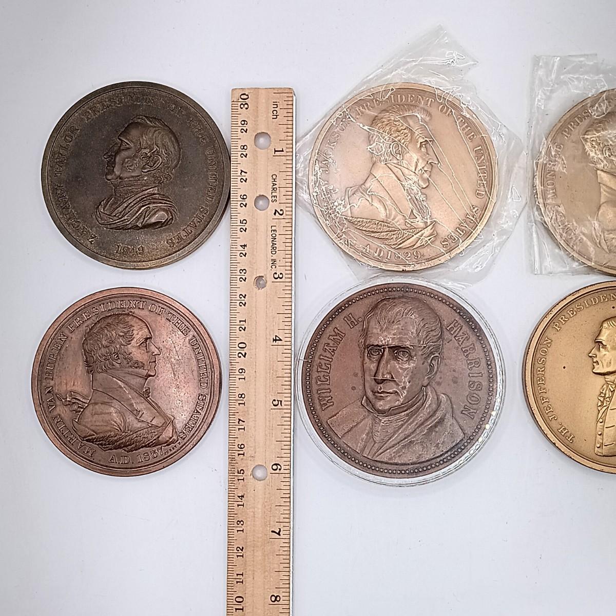 LOT 195: Set of (6) Metal Medallions- Zachary Taylor Peace Medal, Van Buren Peace Medal & More