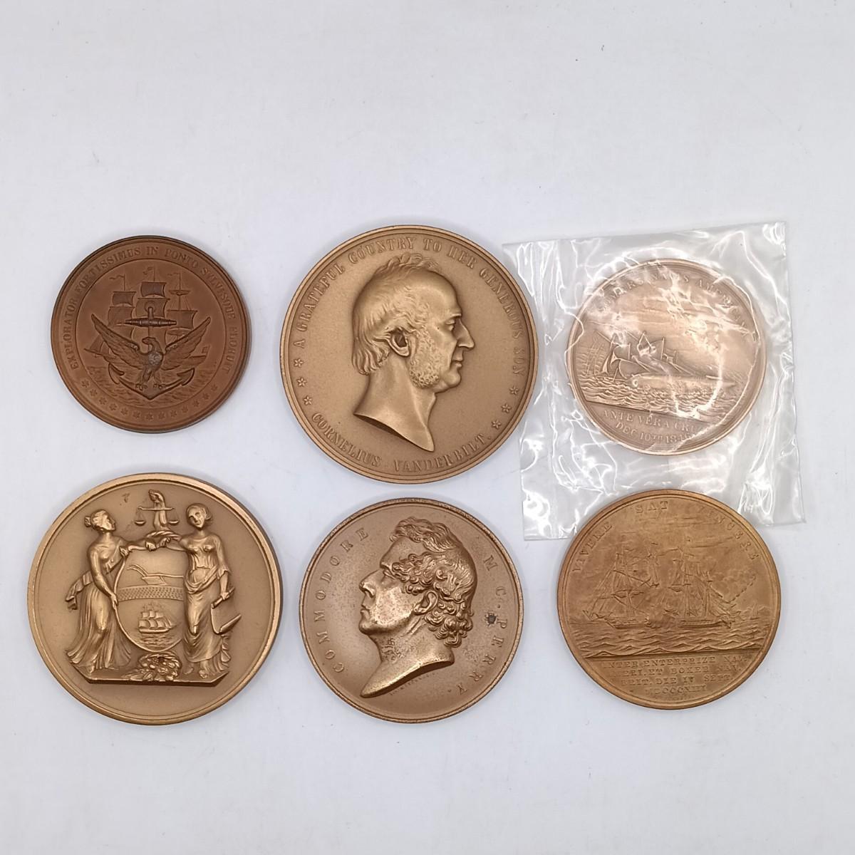 LOT 199: Set of (6) Metal Medallions- Rescue of the San Francisco, Commodore Perry, Cornelius Vanderbilt & More