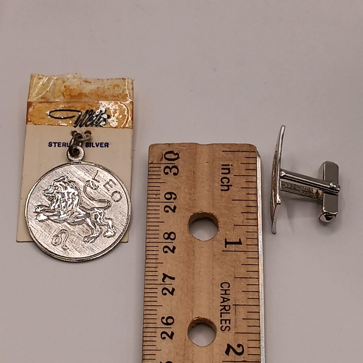 LOT 208: Anson Sterling Front Cufflinks 9.1gtw and 3.9g Sterling Leo Horoscope Charm