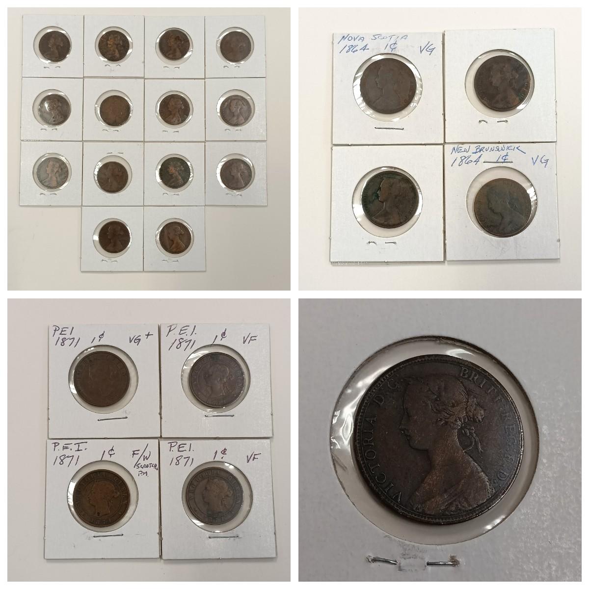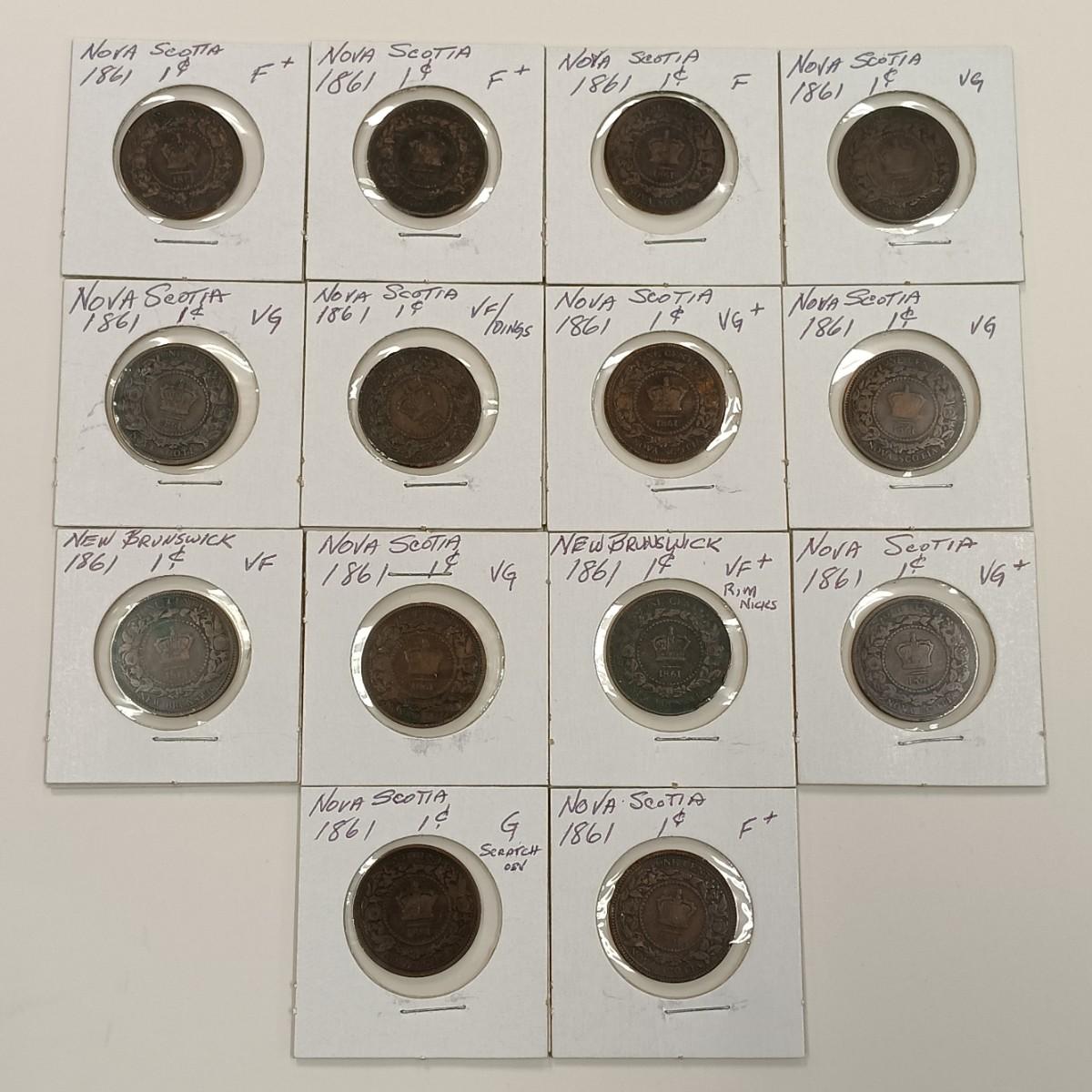 LOT 213: Set of (22) Nova Scotia and New Brunswick One Cent Coins 1861 - 1864