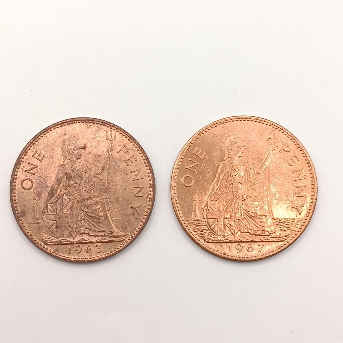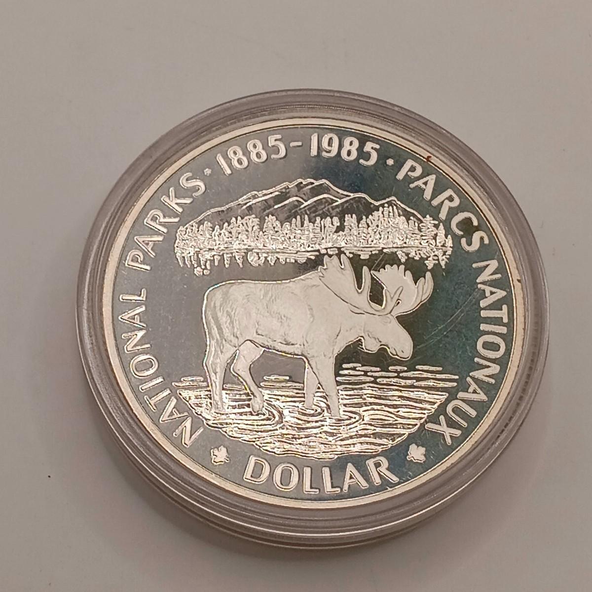 LOT 221: Royal Canadian Mint 1985 Silver Dollar, 1919 Canadian Quarter & 1963 and 1967 UK Pennies