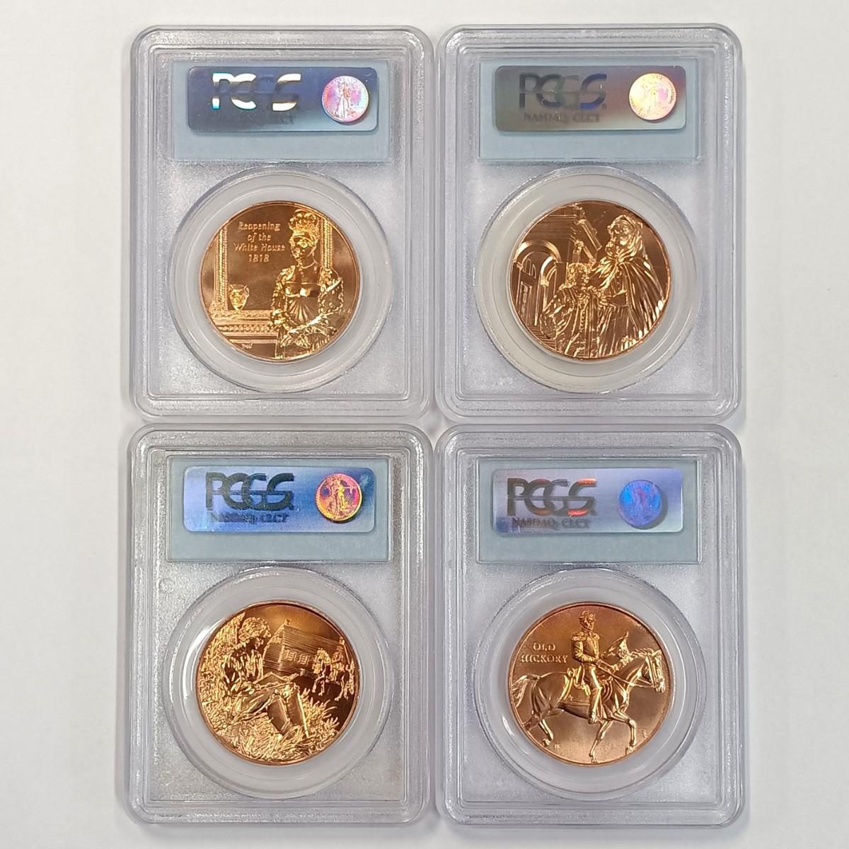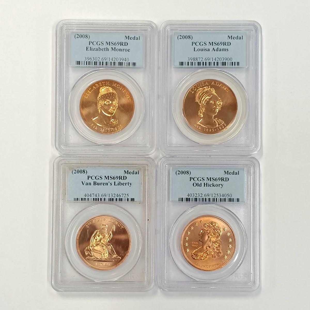 LOT 235: Set of (4) 2007 First Spouse, Van Buren's Liberty and Old Hickory Medals PCGS MS69RD