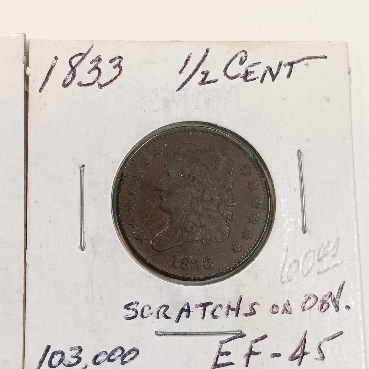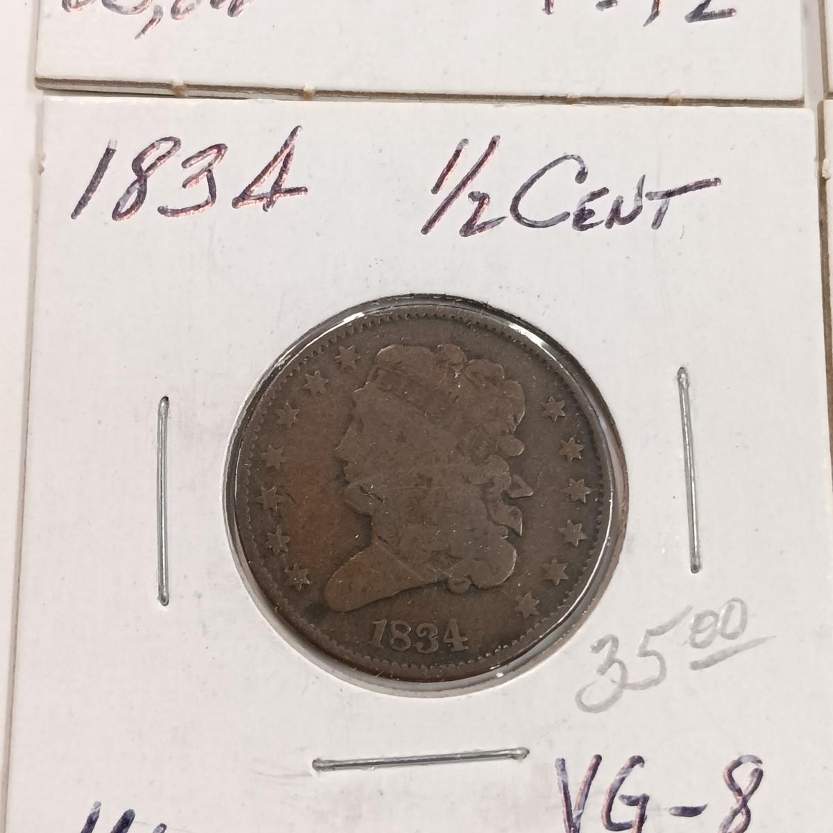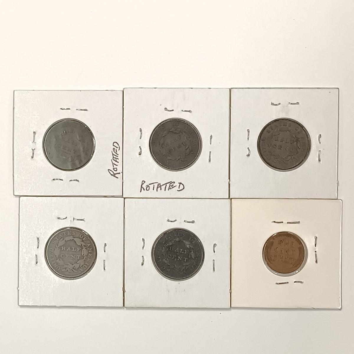 LOT 238: Set of (5) Half Cents 1925 - 1935 with (1) 1909 VDB Wheat Penny