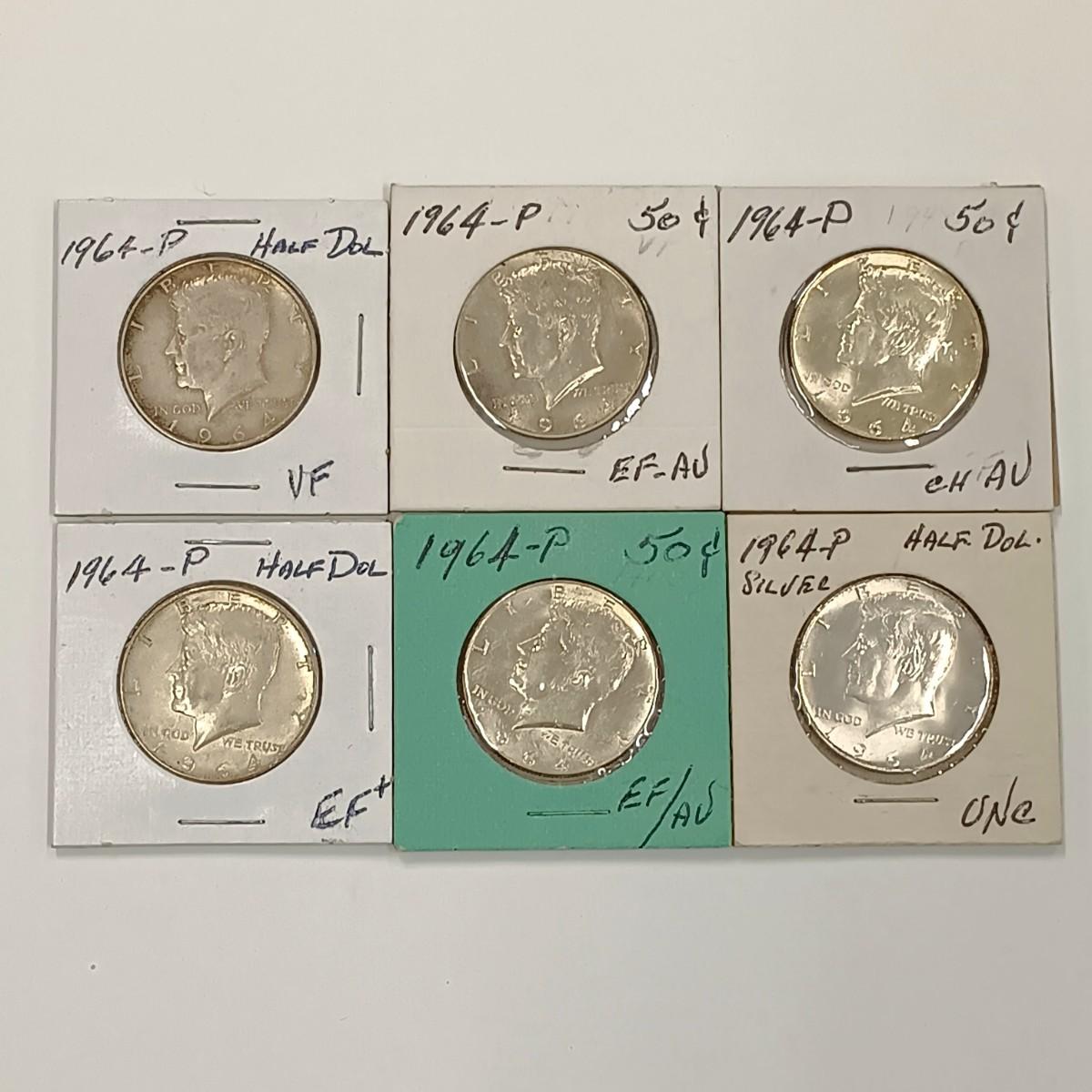 LOT 239: Set of (6) Silver 1964 Half Dollars