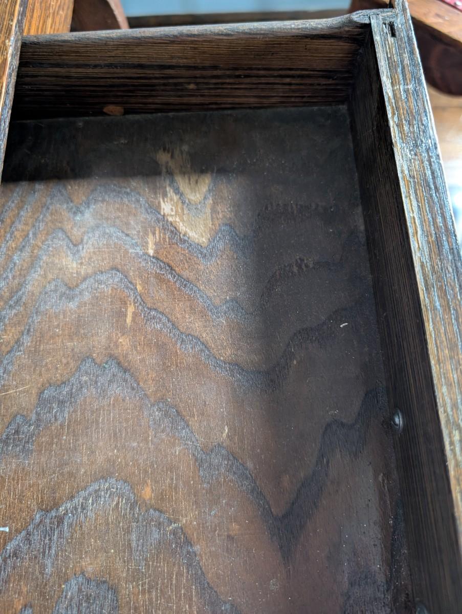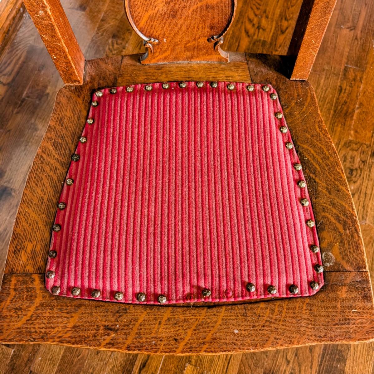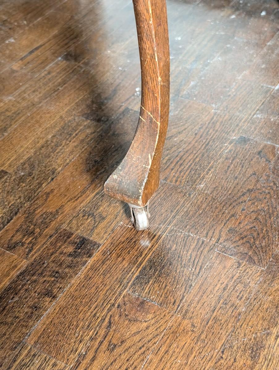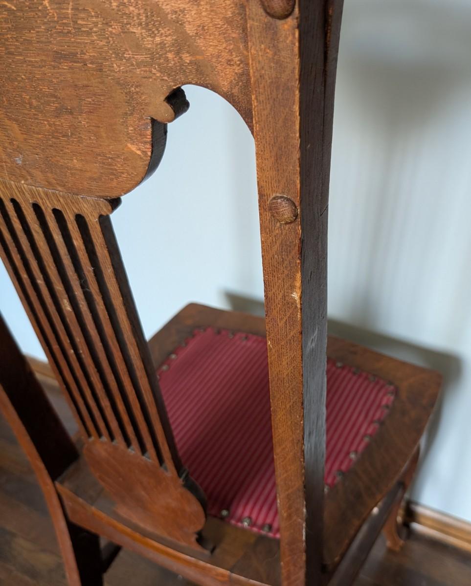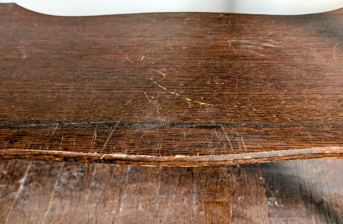 LOT 3Y: Antique/Vintage Tiger Wood Library Desk & Hand Carved Spindle Back Upholstered Chair