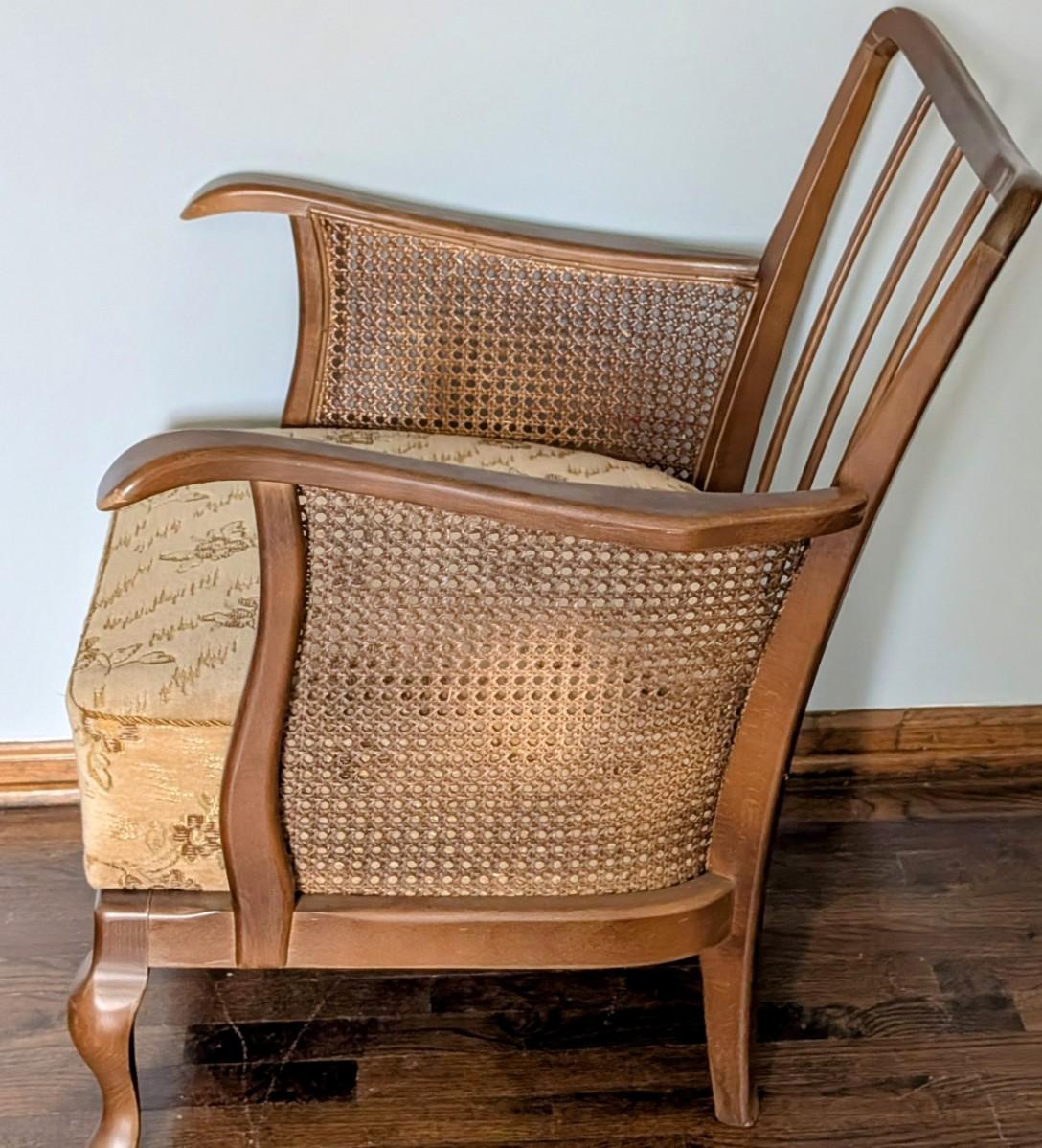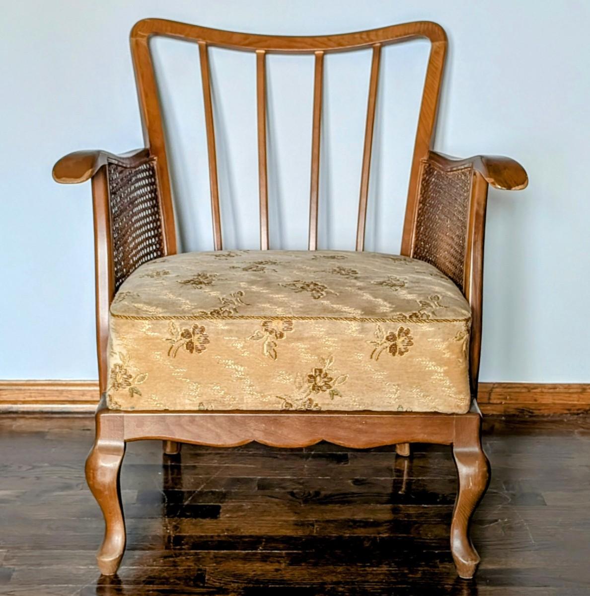 LOT 4Y: Antique/ Vintage Chippendale Style, Spindle Back, Cane Sided, Cushioned Chair