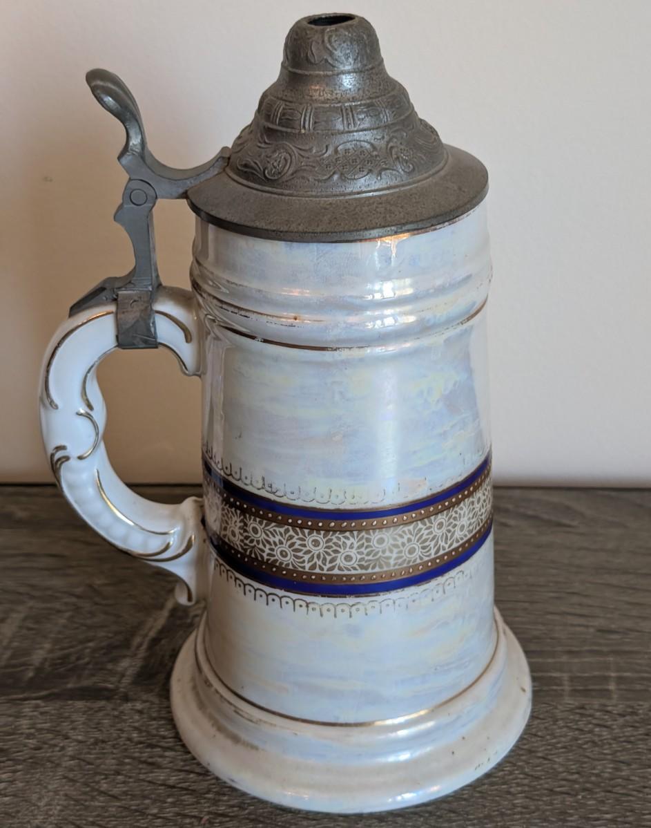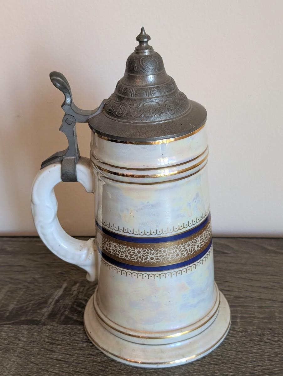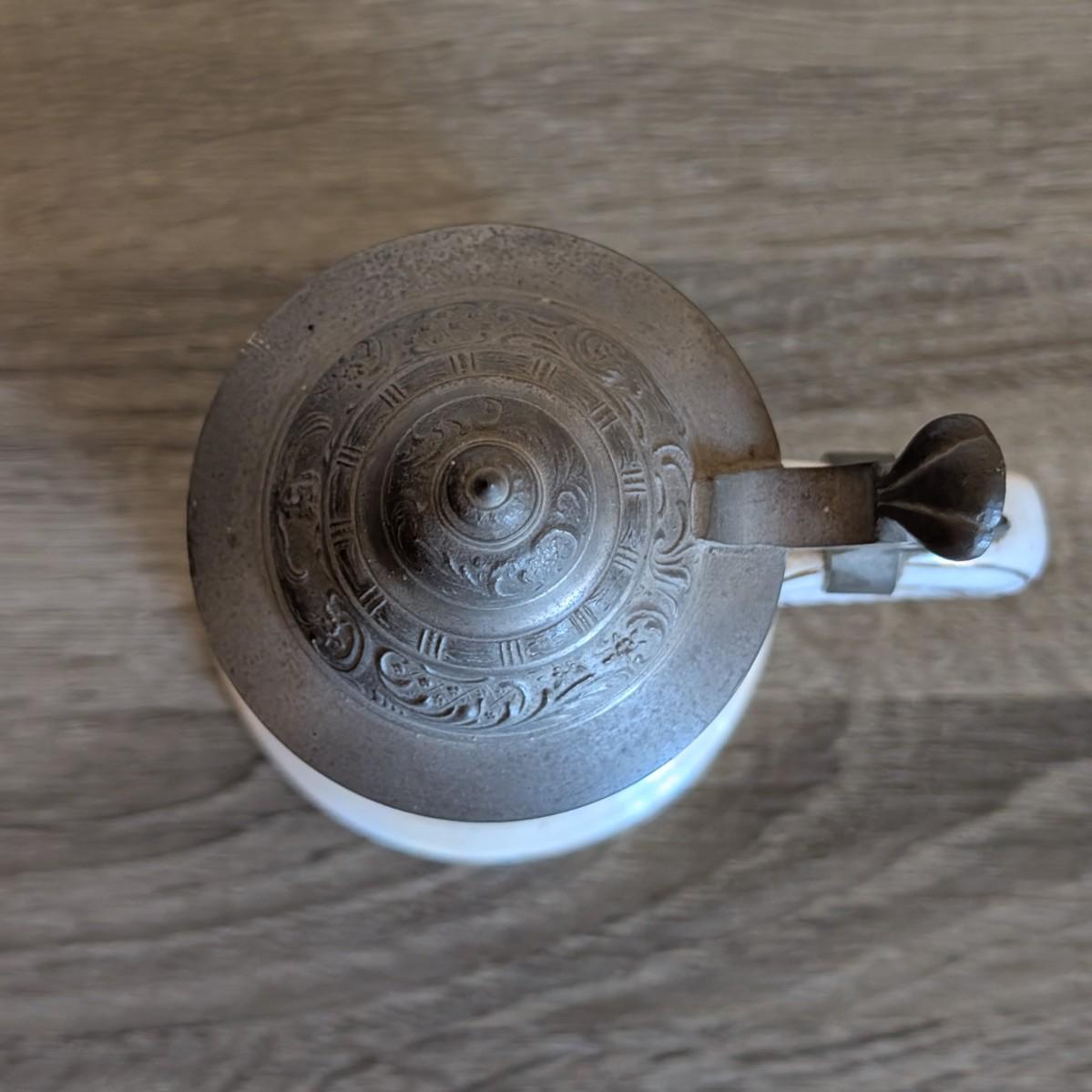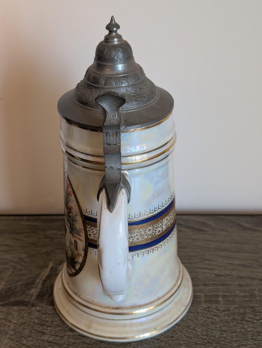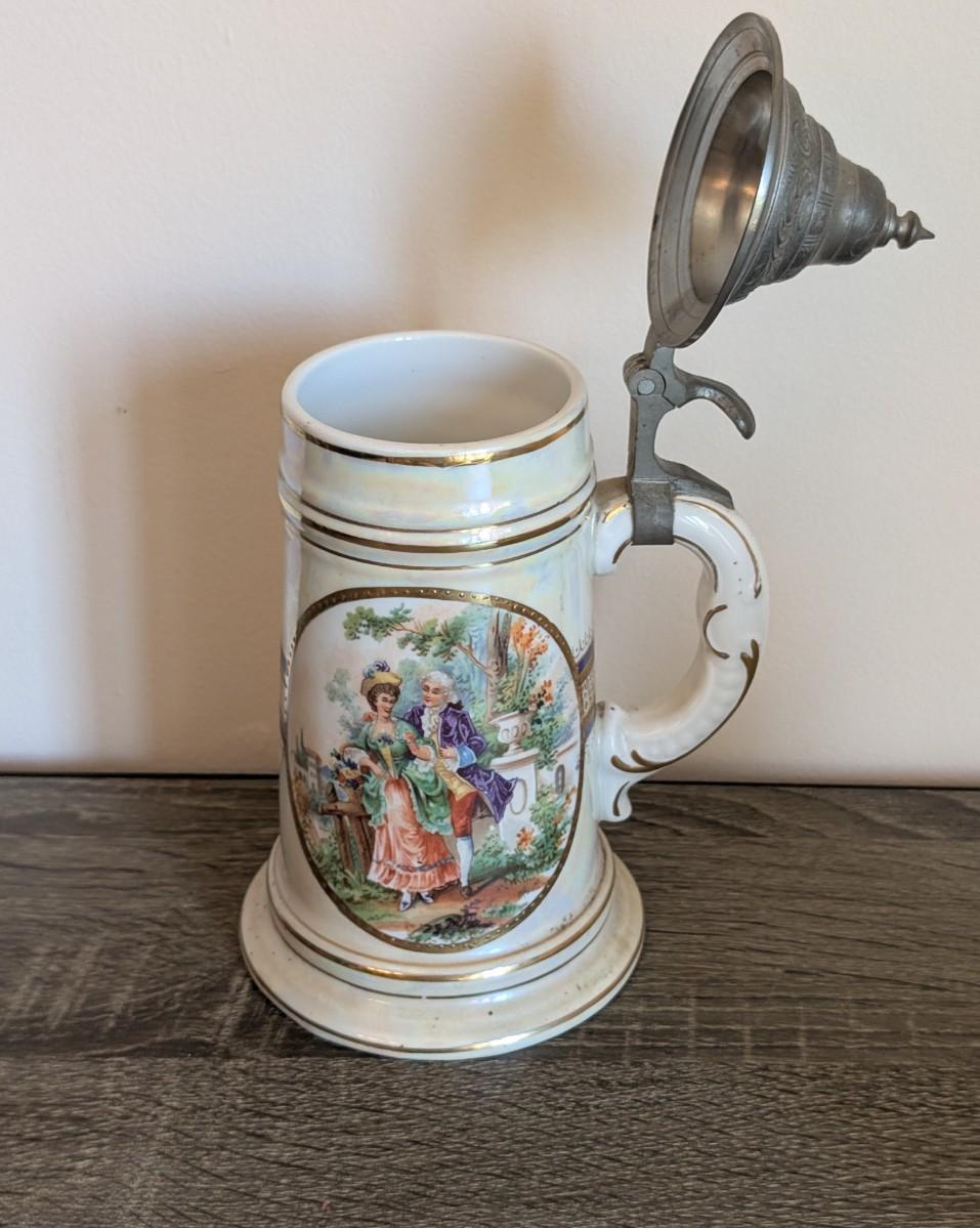 LOT 15K: Vintage German Porcelain Pewter Lidded Lithographed Beer Steins