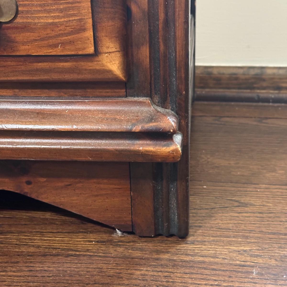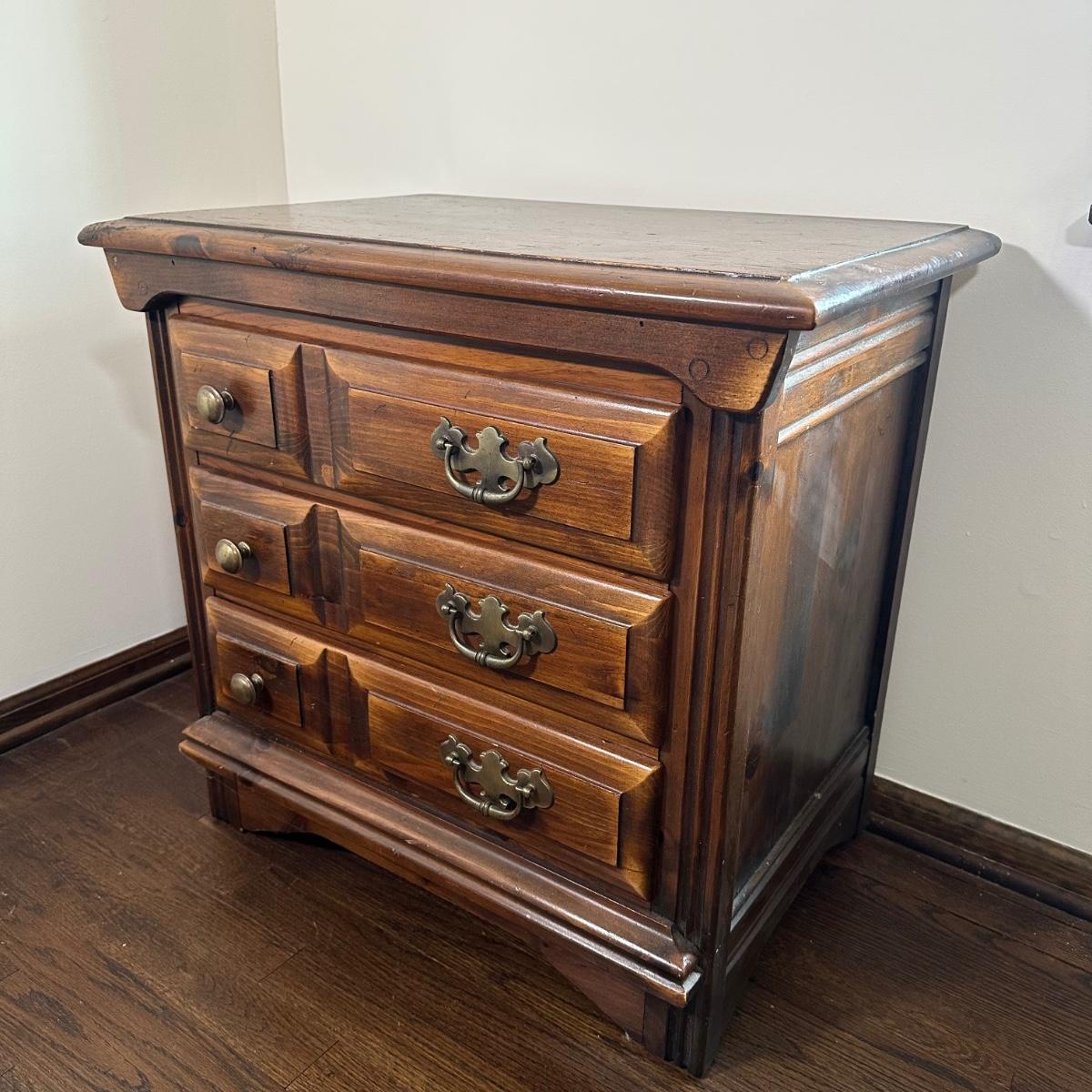 Chair is 23x19x38” & Dresser is 26x17x25”Please see all pictures as they are the best representation of the items. The pictures show condition, measurements if taken, and what is included in the lot. Due to the large amount that we photograph and the time frame, we are not always able to take measurements. All items unless noted, are pre-owned and have been used. If you purchased furniture, you must bring help. We do not allow one person to carry large furniture out on their own. Bring help, tools and a truck for the safety of our client’s homes, and your personal safety. Any damages that result to the property including walls, and floors due to moving of the furniture will be charged to the buyer. Company policy. Thank you.