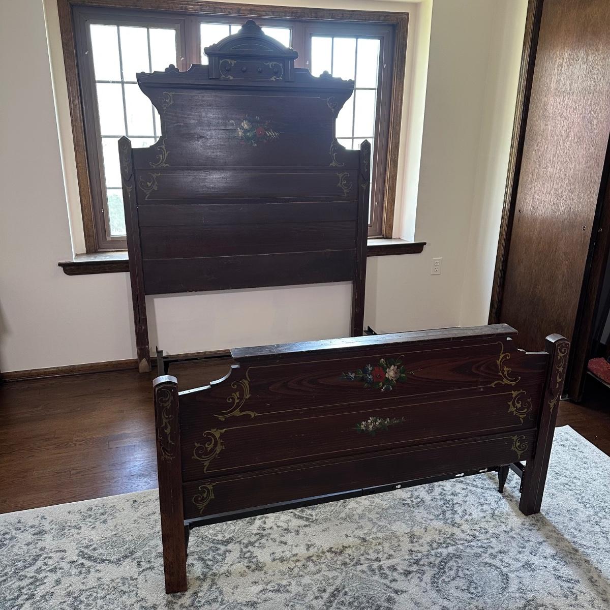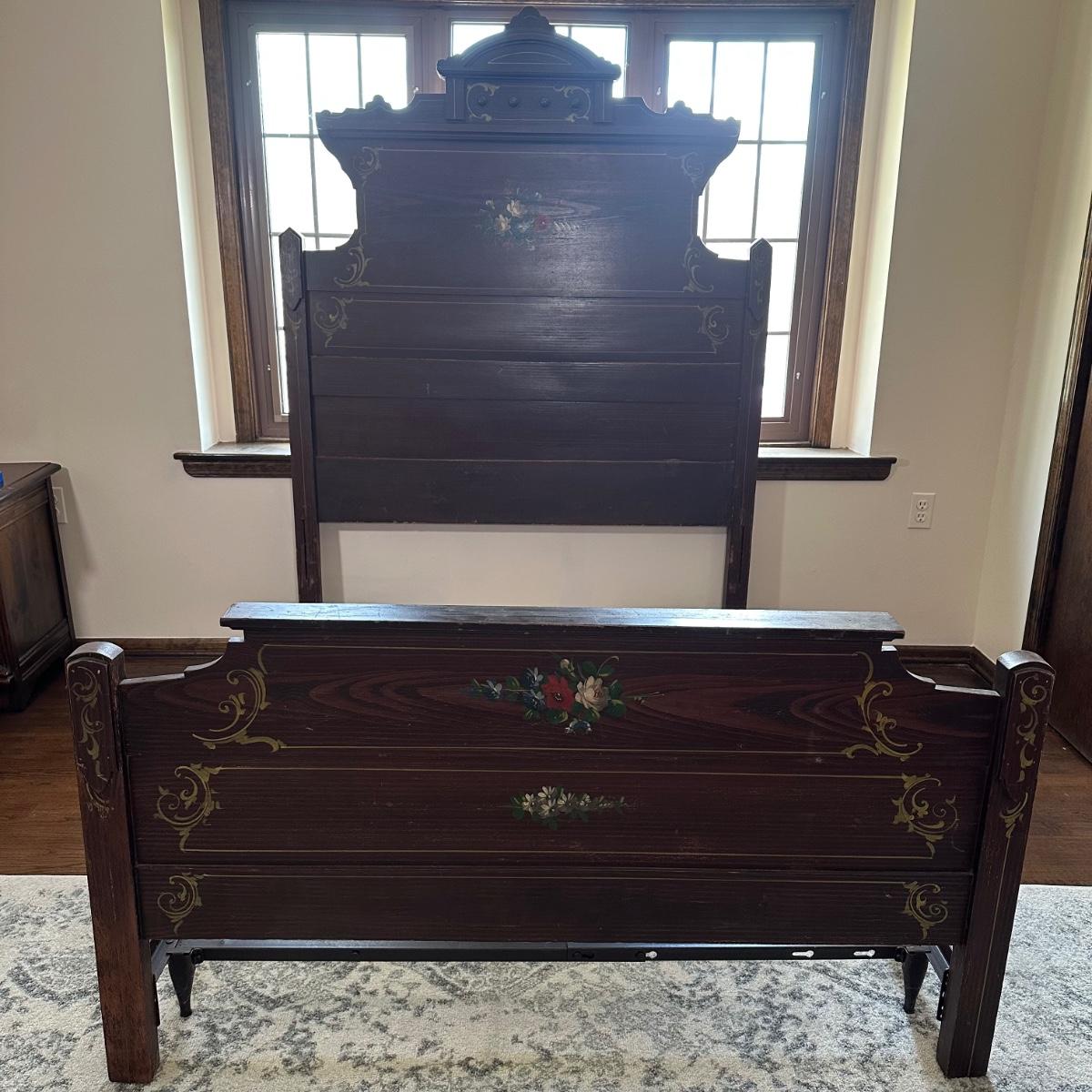 LOT 29X: Antique Hand Painted Cottage Victorian Wooden Bed Frame