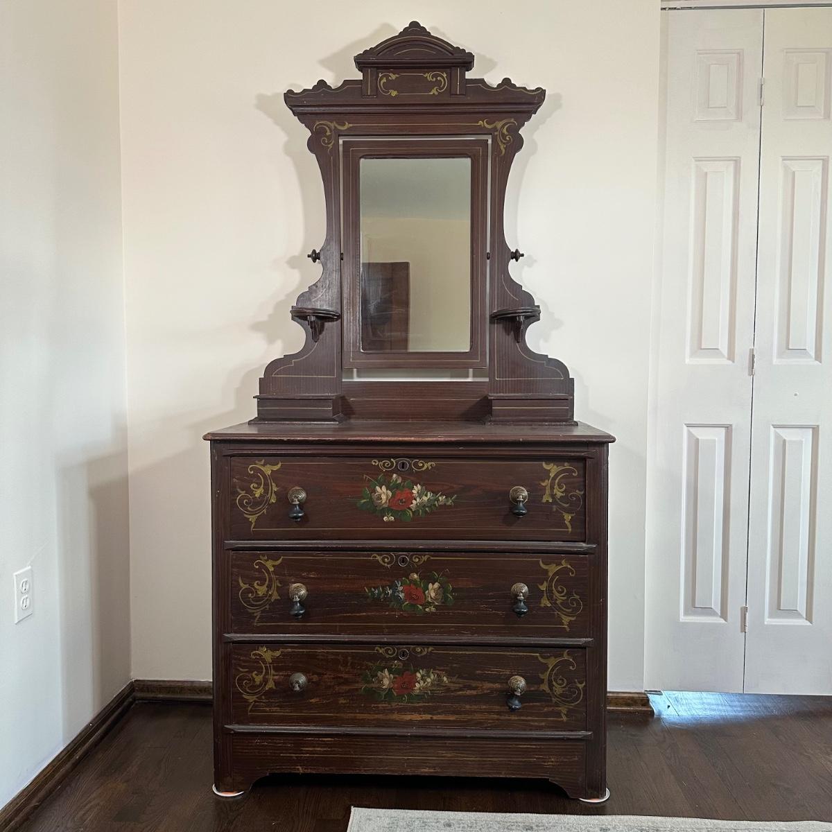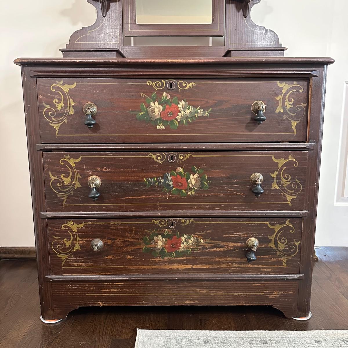 LOT 30X: Antique Hand Painted Cottage Victorian Vanity Dresser