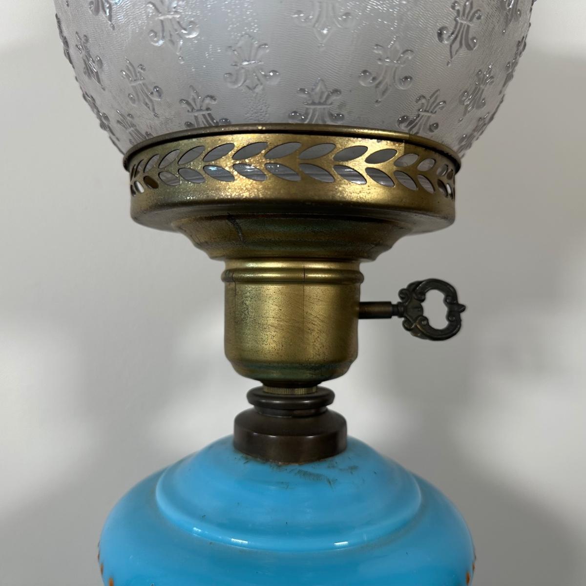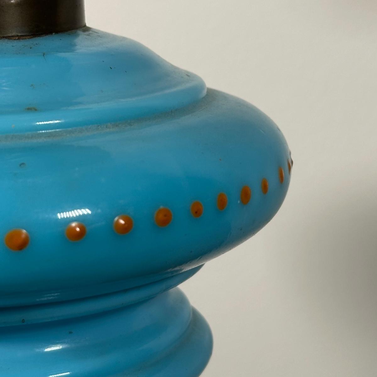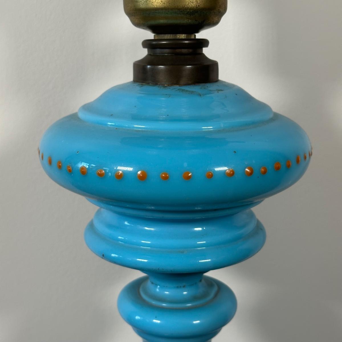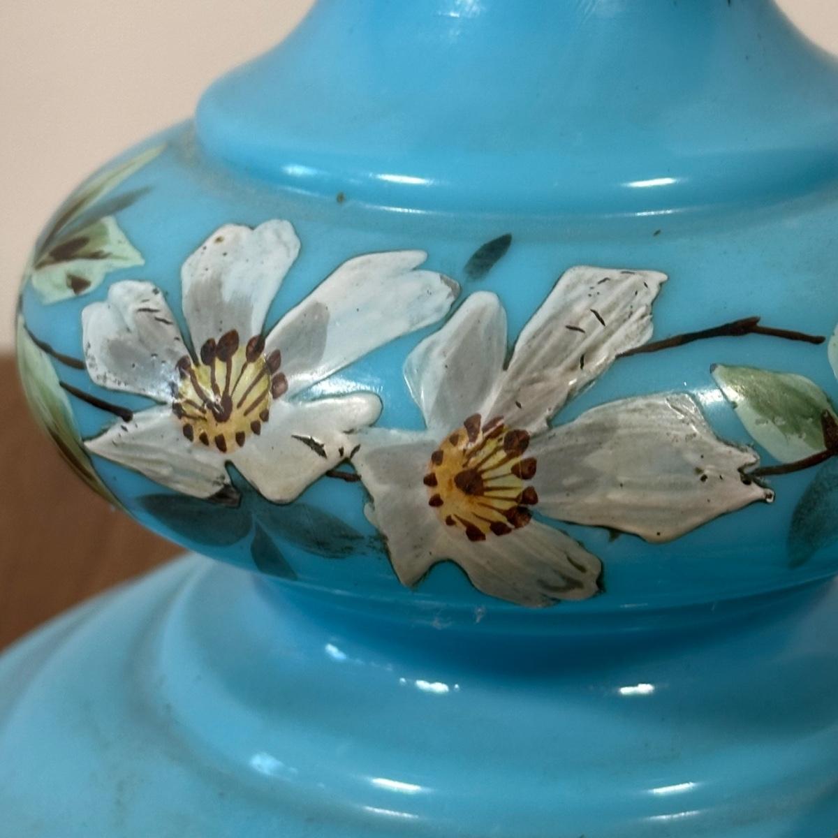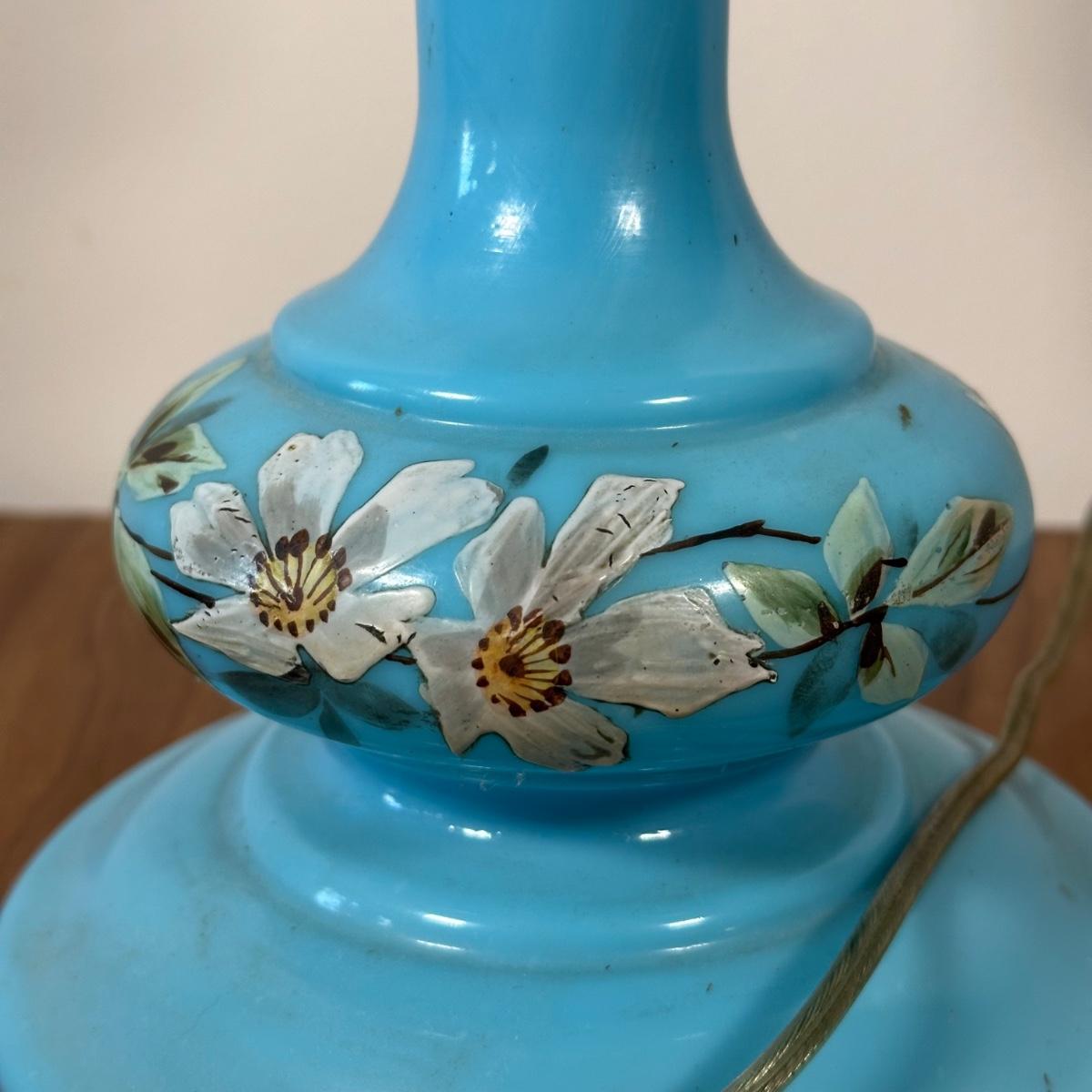 LOT 31M: Antique 19th Century Blue Glass Hand Painted Victorian Oil Lamp