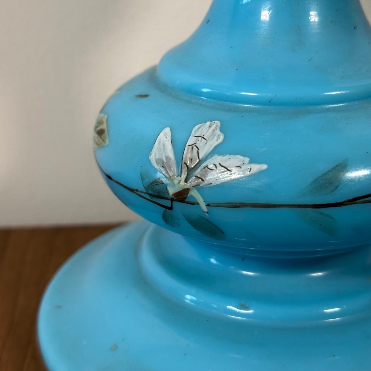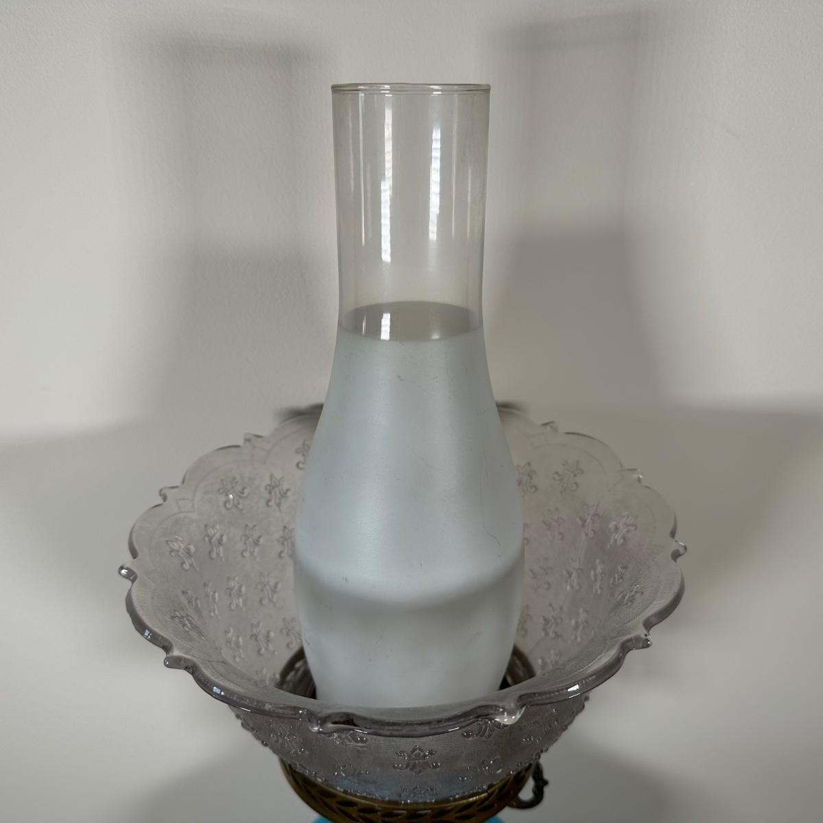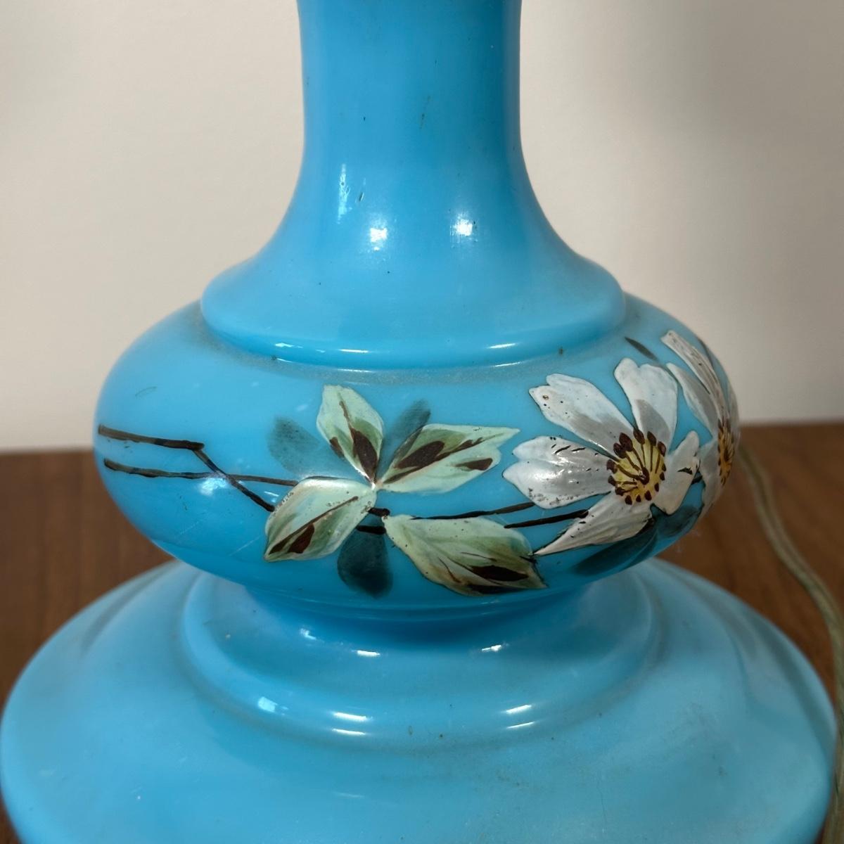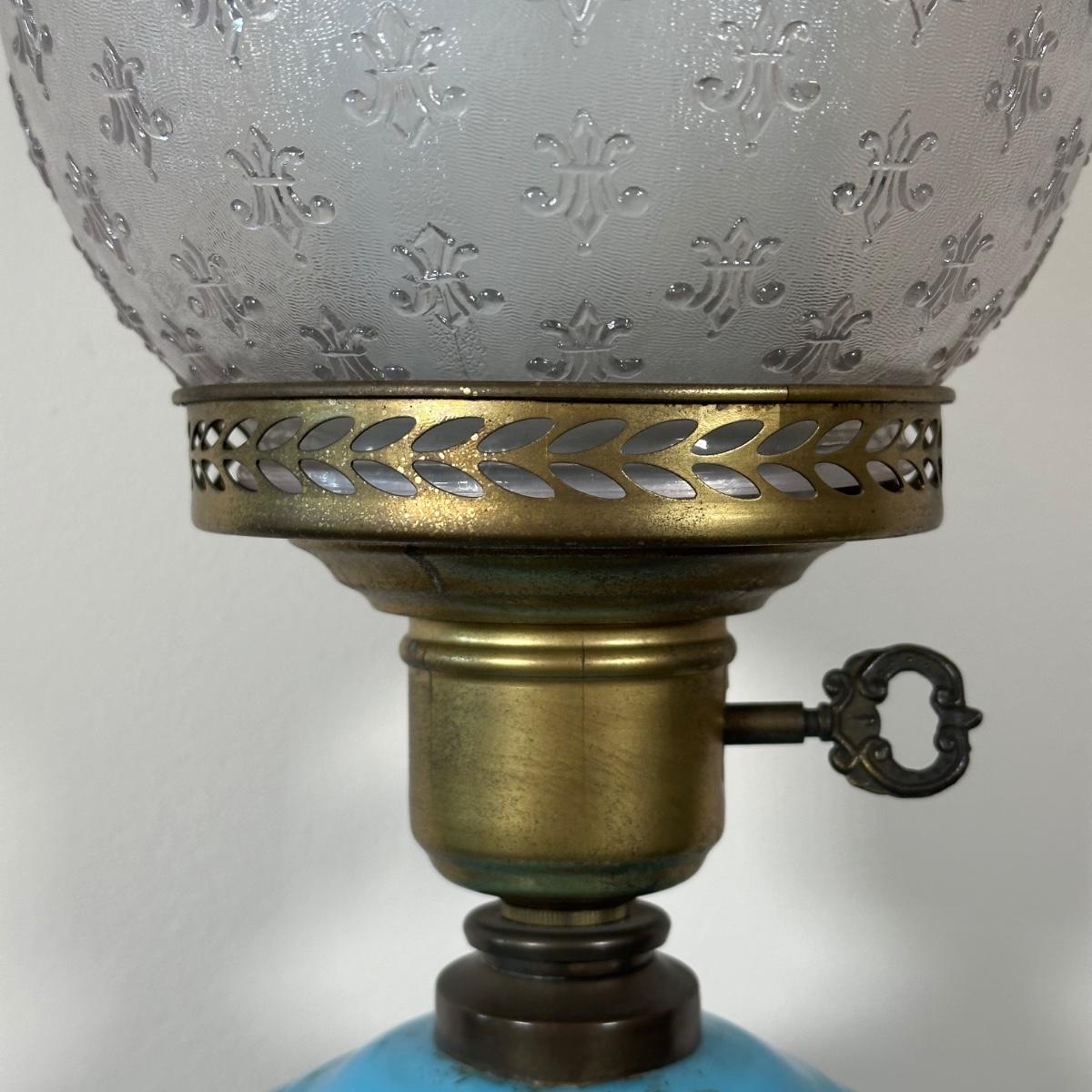 LOT 31M: Antique 19th Century Blue Glass Hand Painted Victorian Oil Lamp