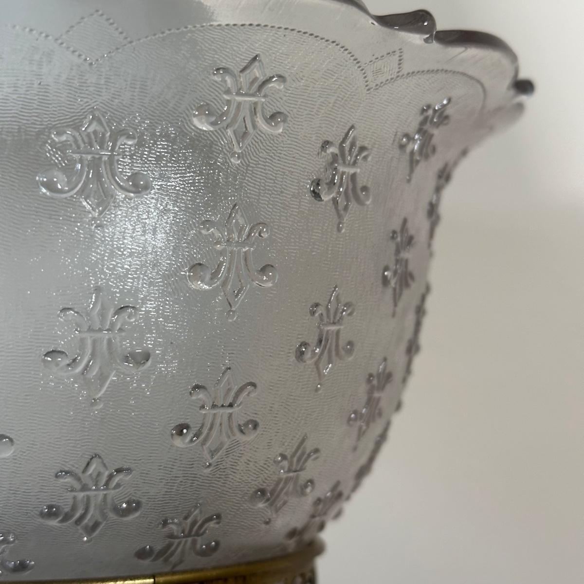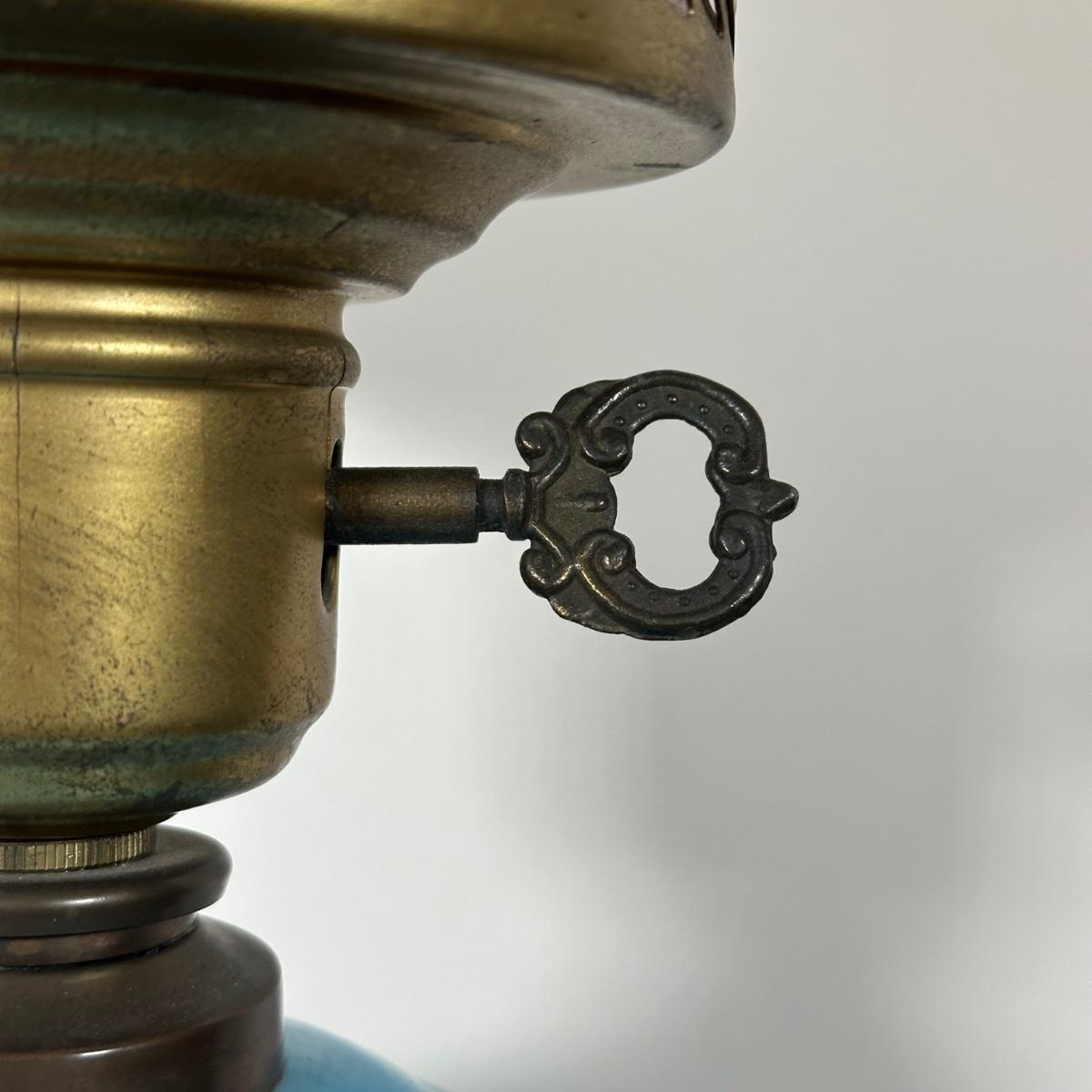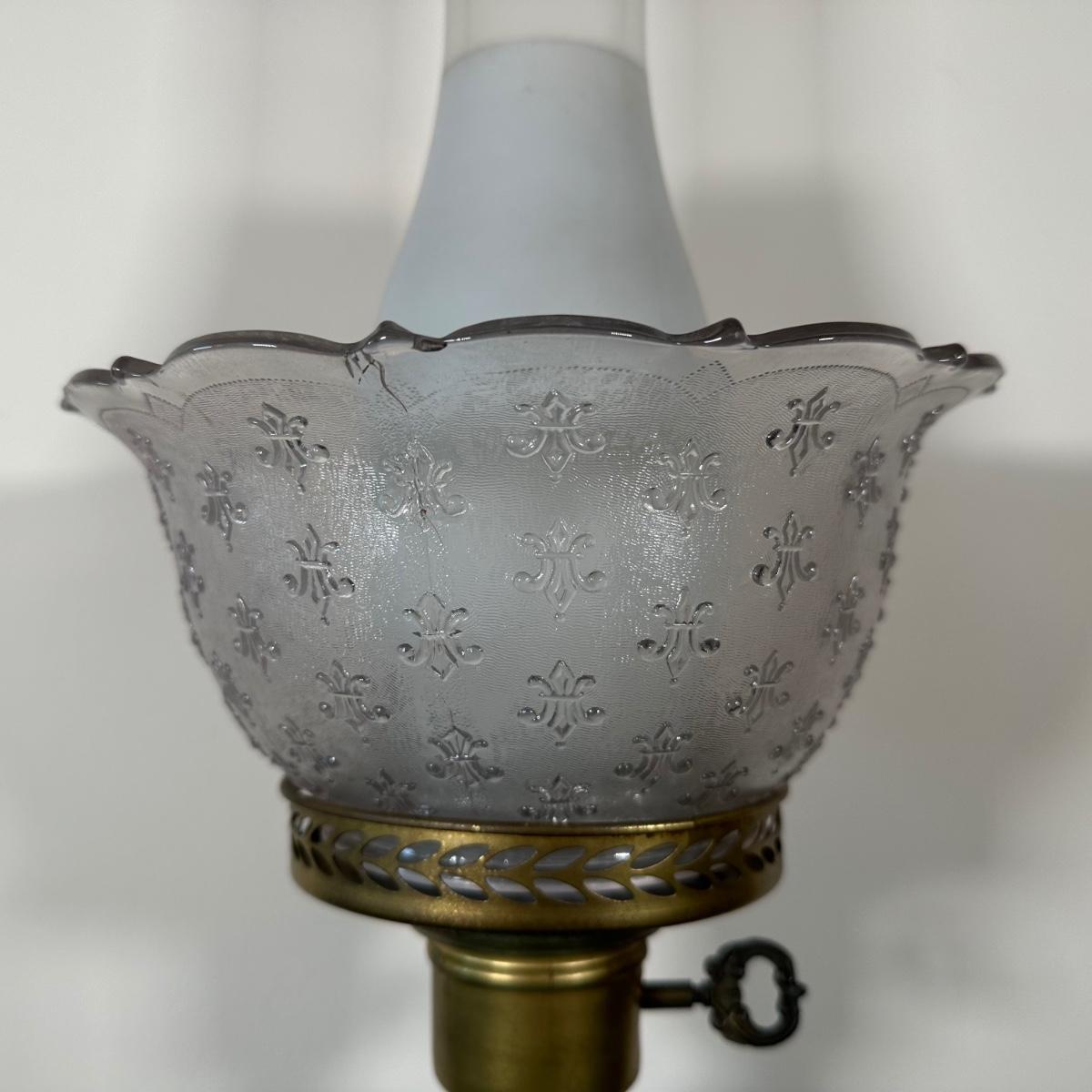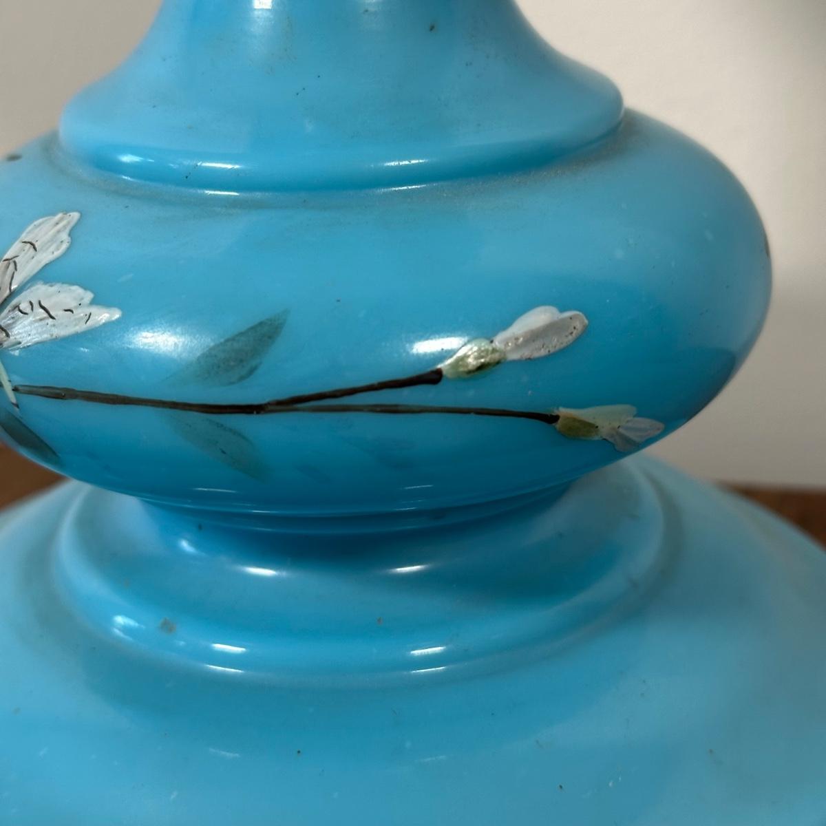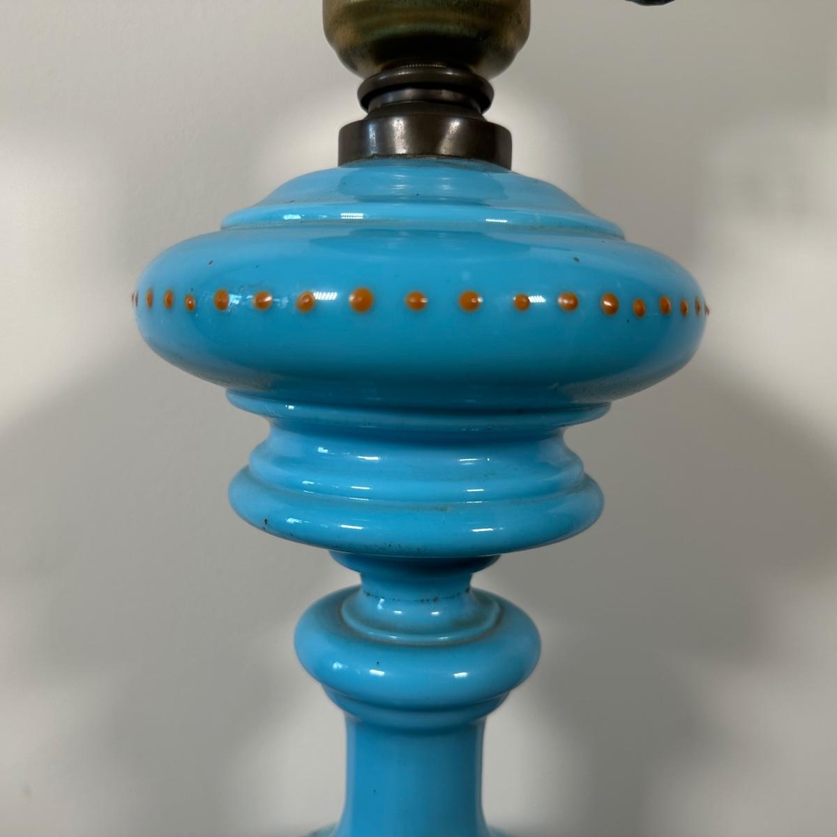 LOT 31M: Antique 19th Century Blue Glass Hand Painted Victorian Oil Lamp