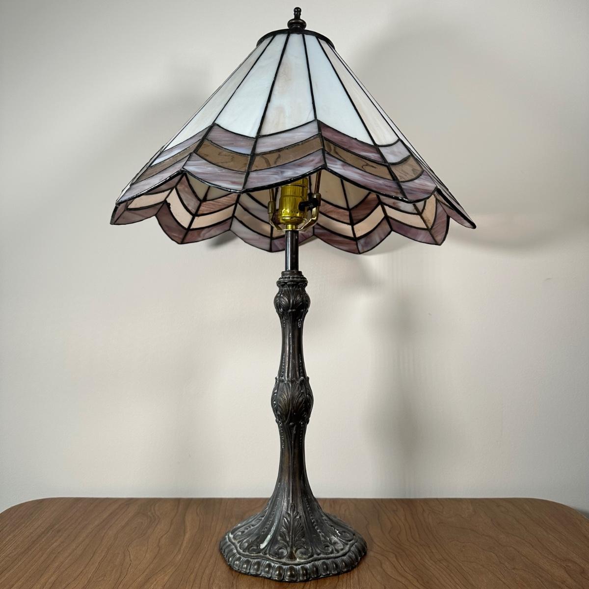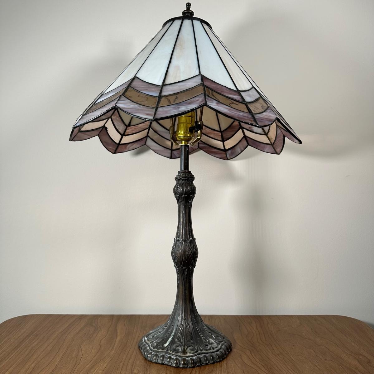 LOT 34M: Vintage Tiffany Style Stained Glass Table Lamp