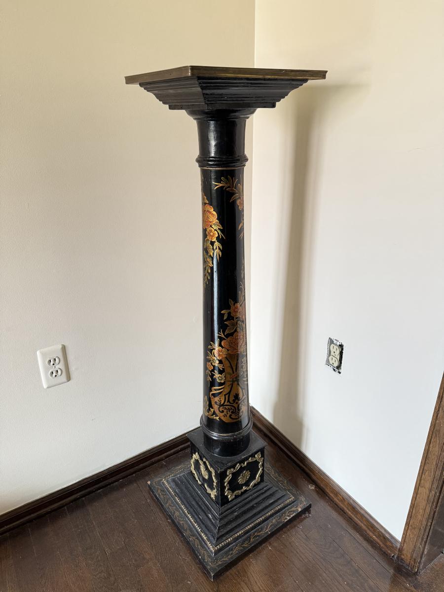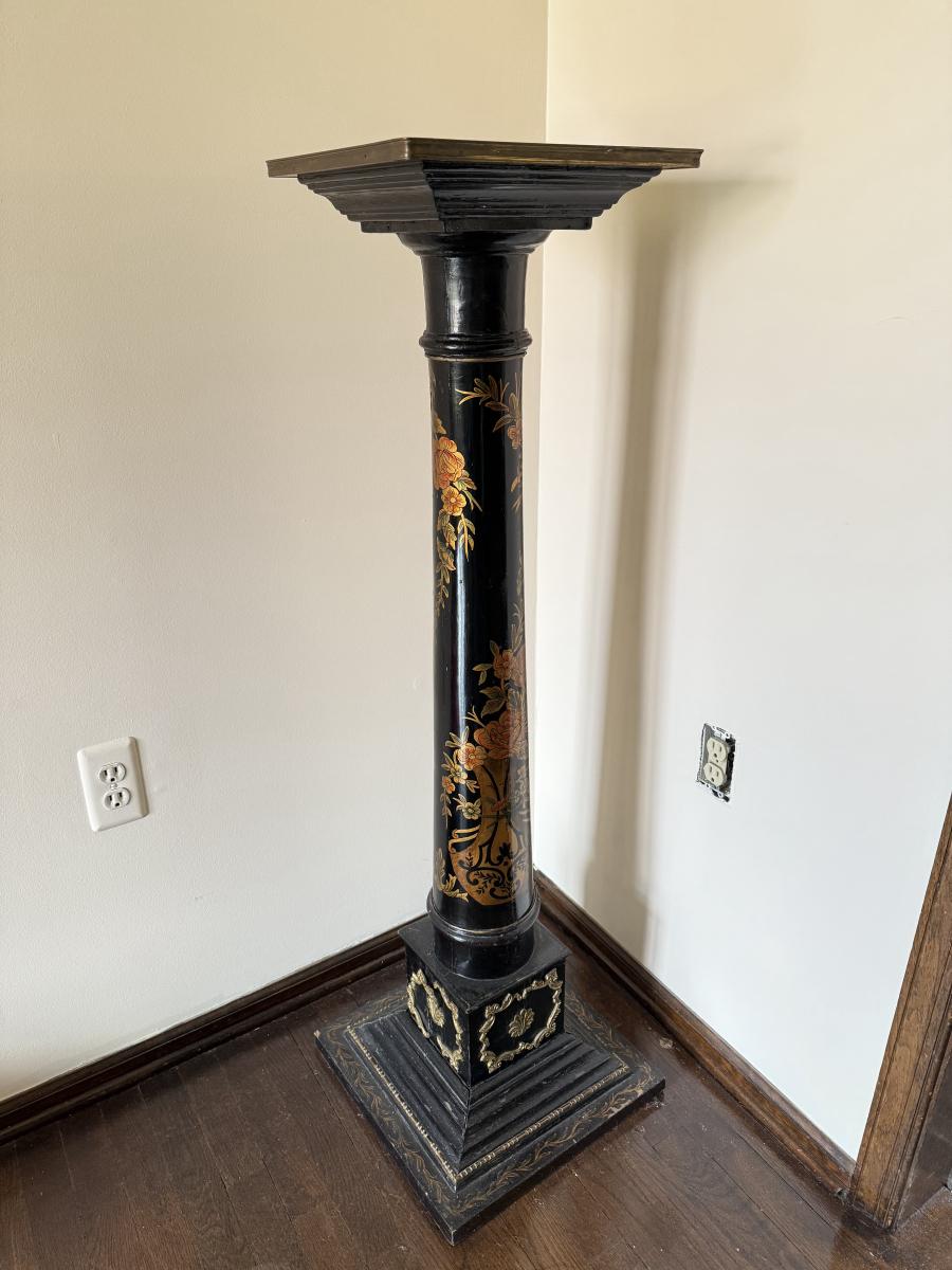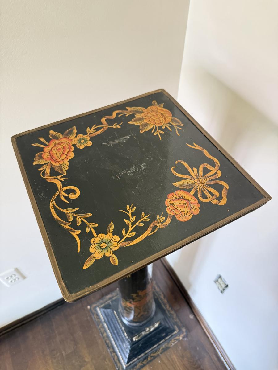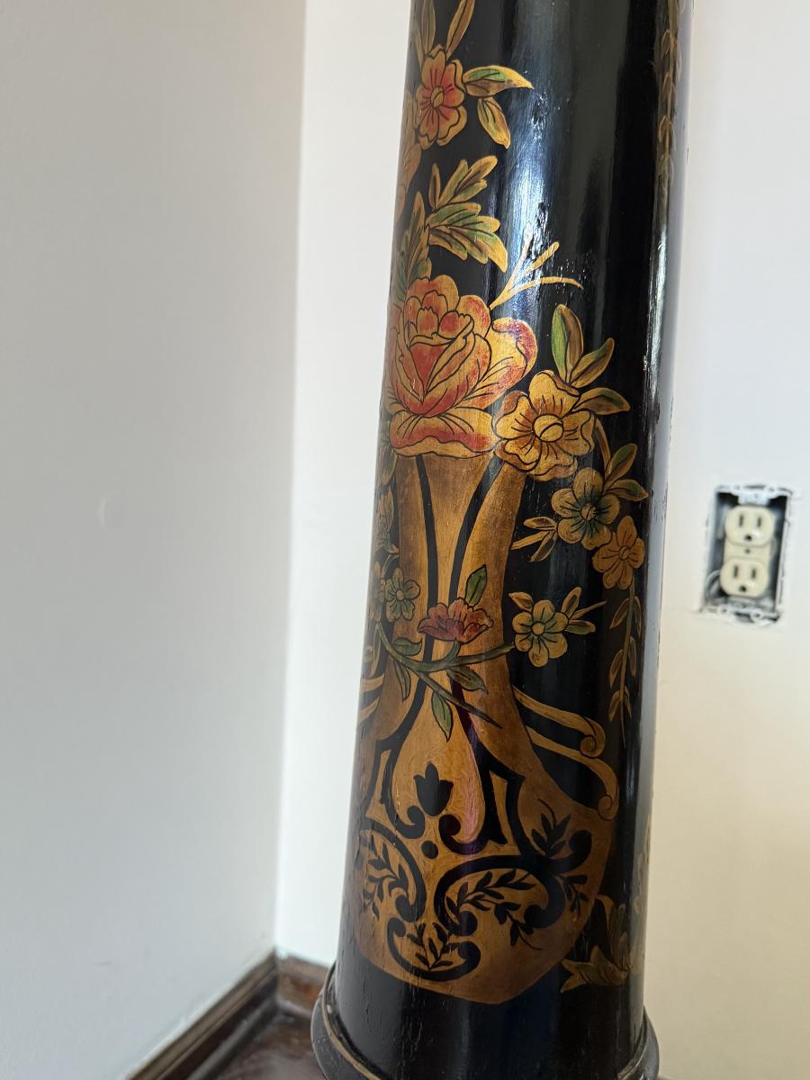 LOT 43D: Vintage Hand Painted & Artist El Sharbatly Signed Black Floral Column Pedestal