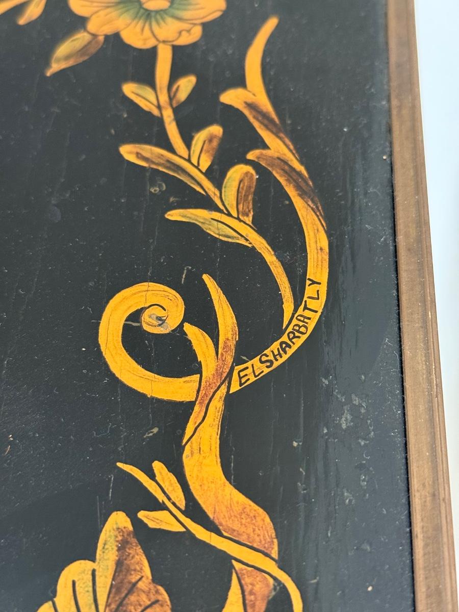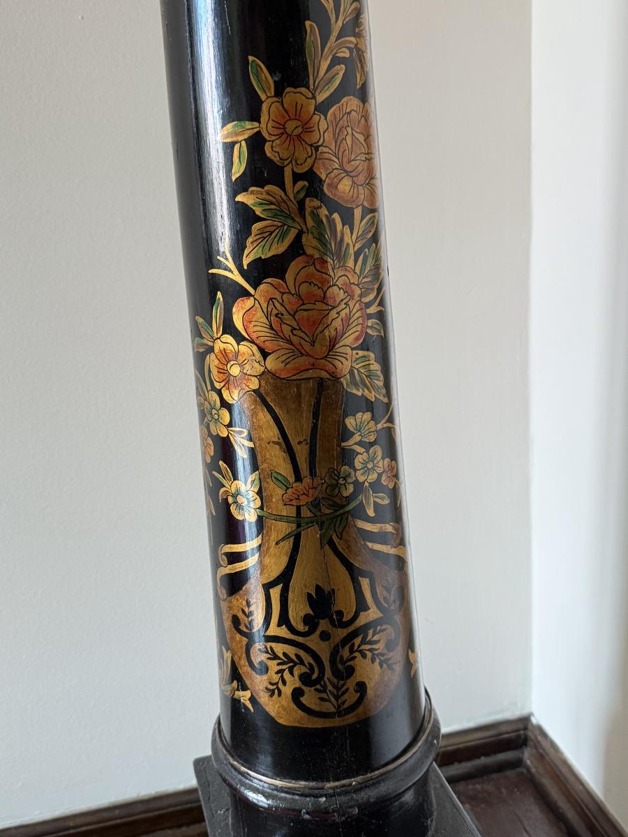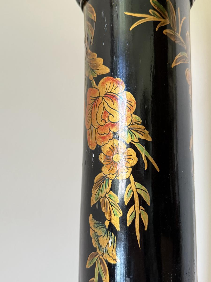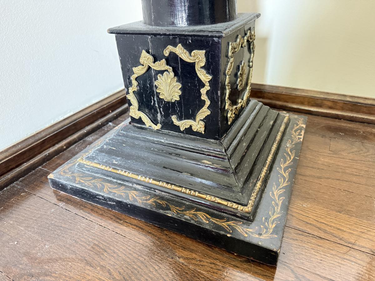 LOT 43D: Vintage Hand Painted & Artist El Sharbatly Signed Black Floral Column Pedestal