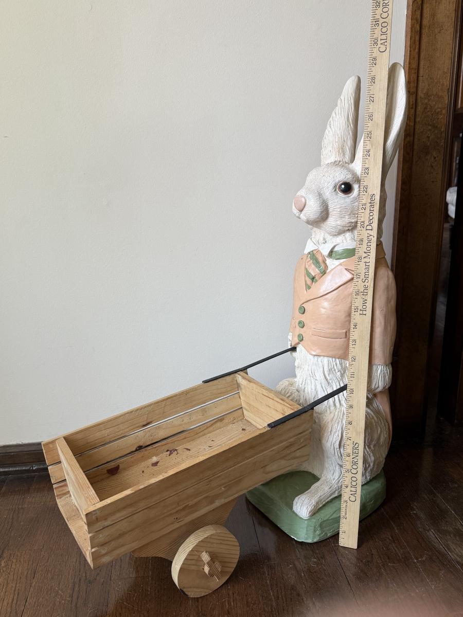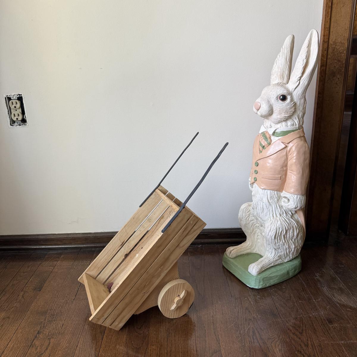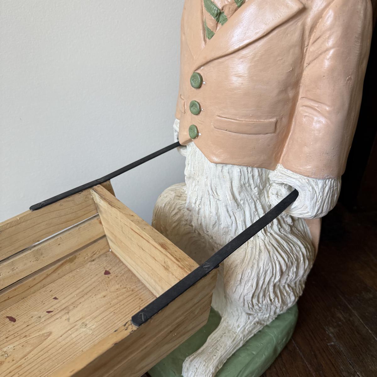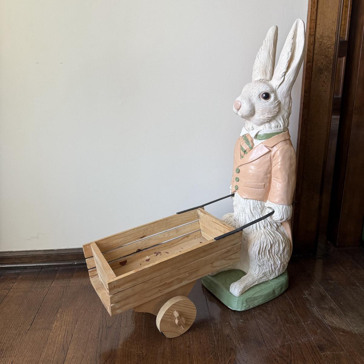 LOT 44D: Vintage Easter Bunny Plaster Cast Sculpture w/ Wood & Metal Wheelbar
