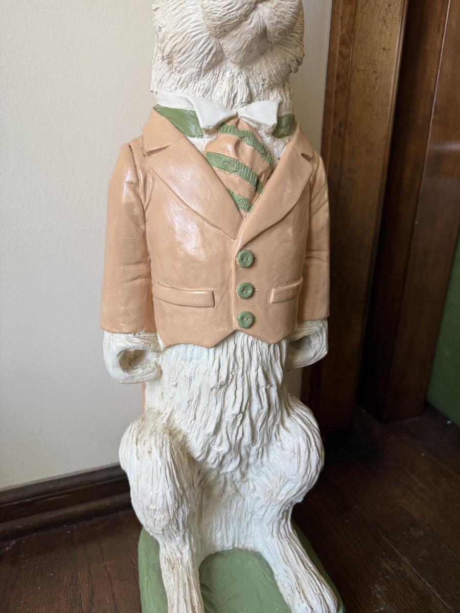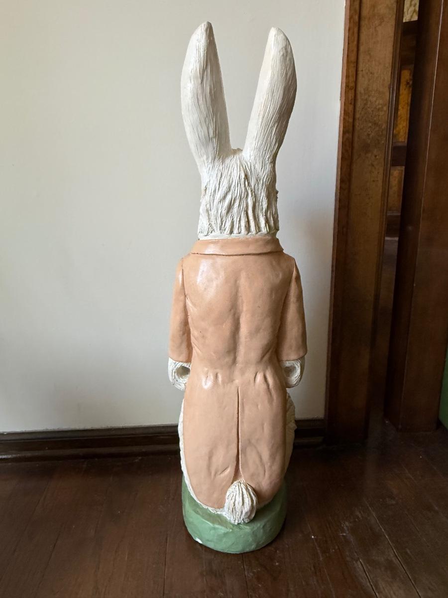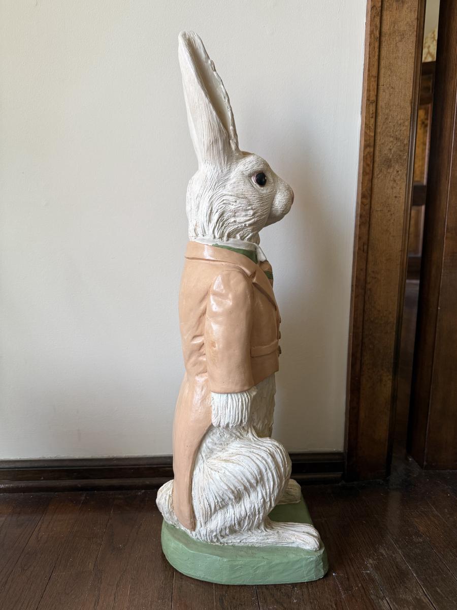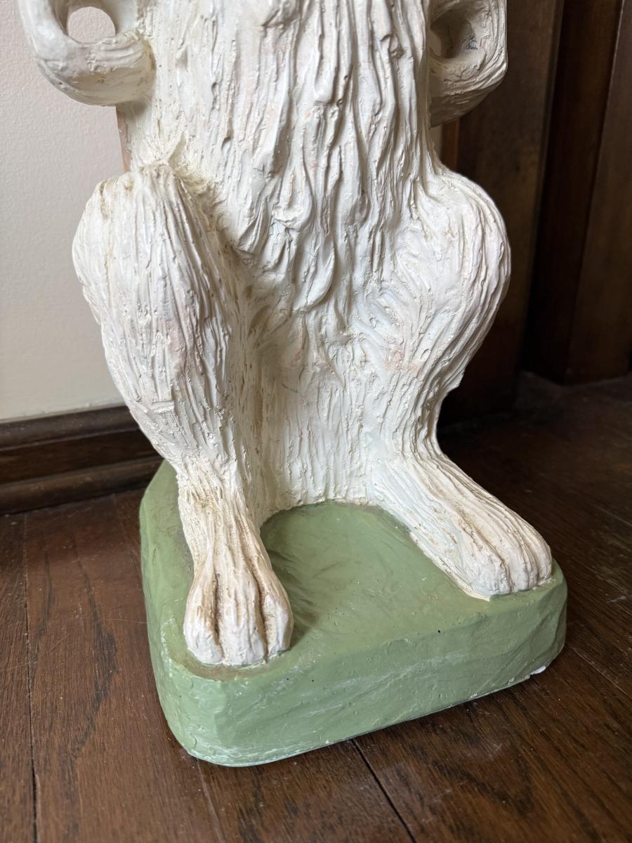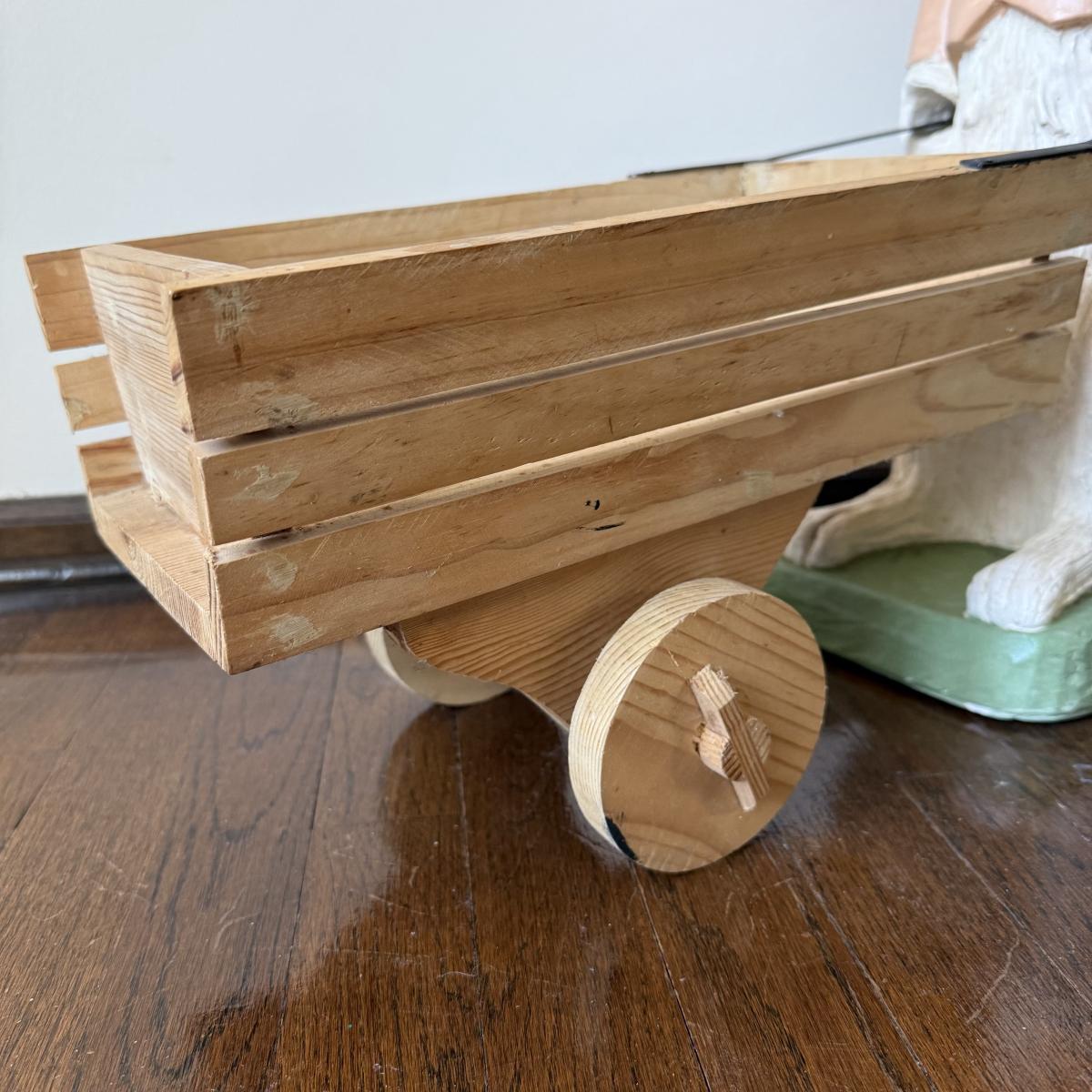 LOT 44D: Vintage Easter Bunny Plaster Cast Sculpture w/ Wood & Metal Wheelbar
