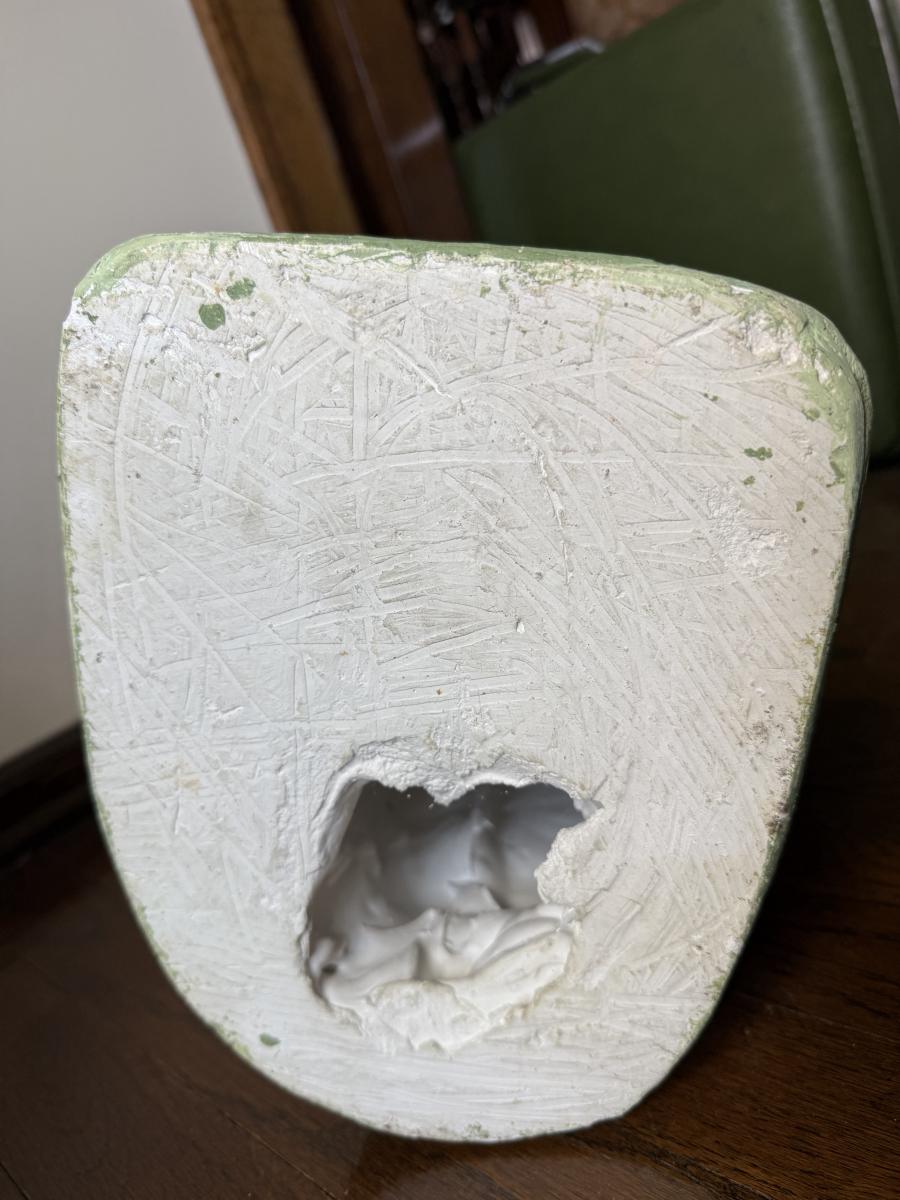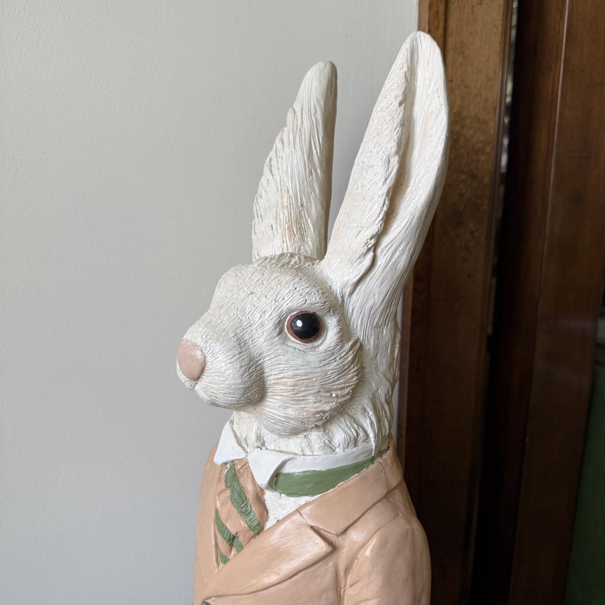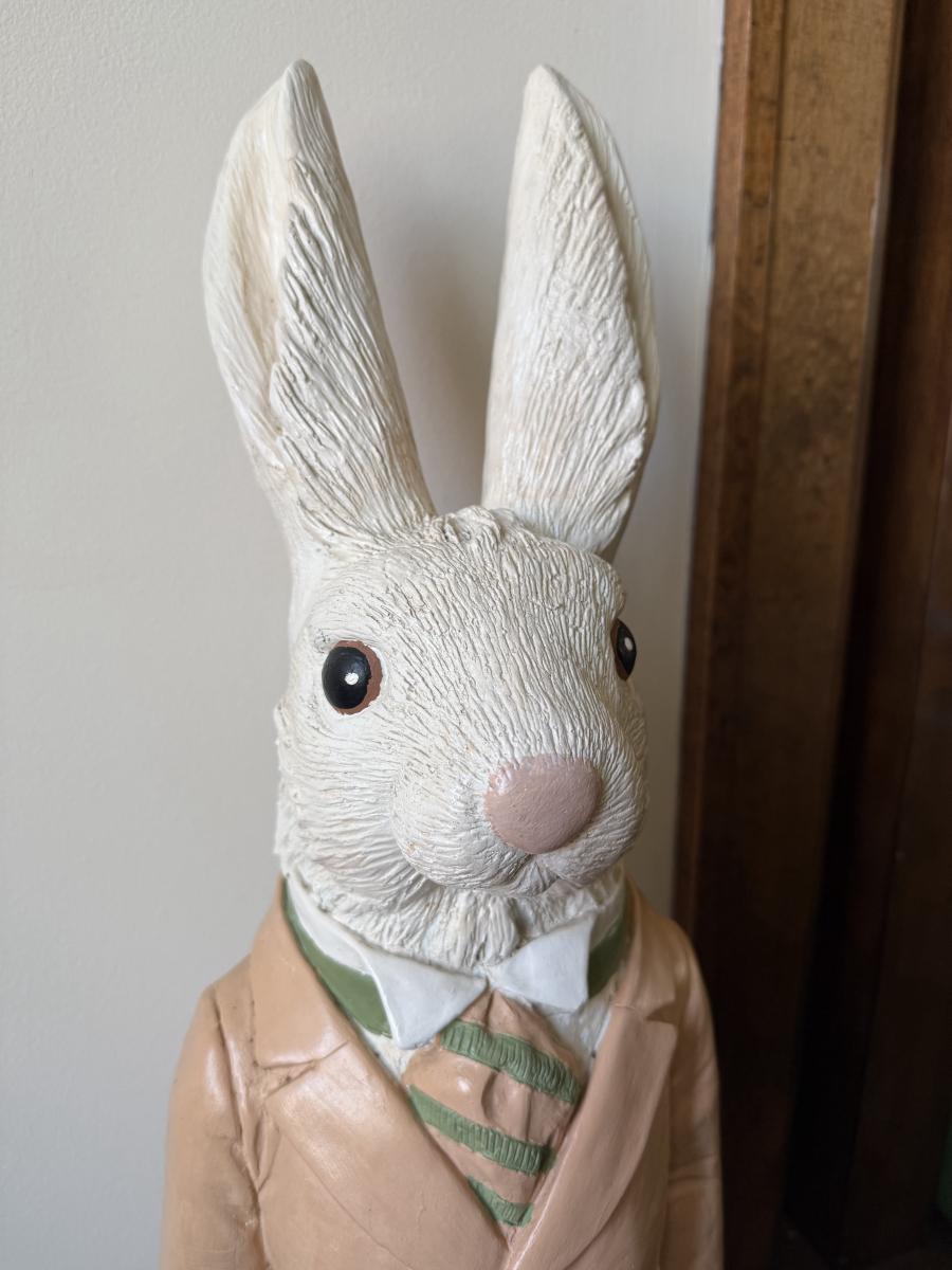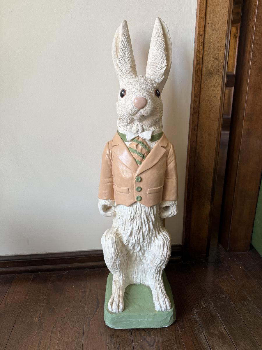 LOT 44D: Vintage Easter Bunny Plaster Cast Sculpture w/ Wood & Metal Wheelbar