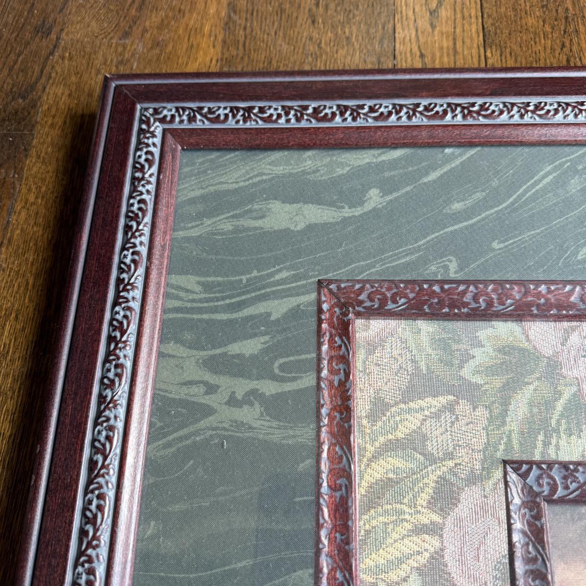 Framed matted print measures 26.5 x 29.5 inches.