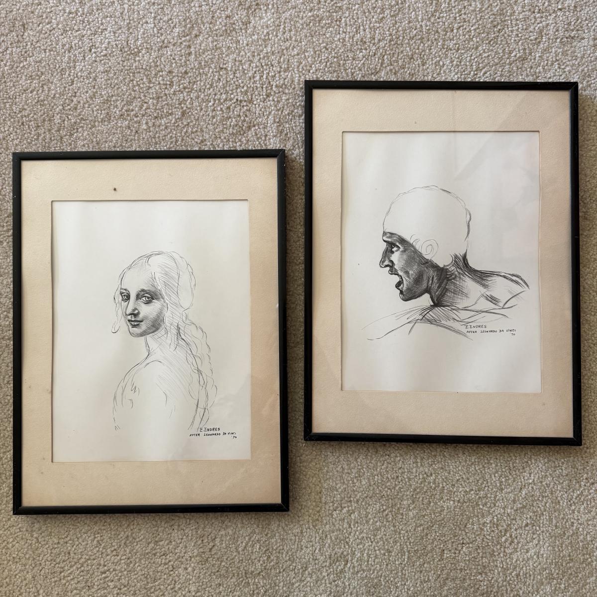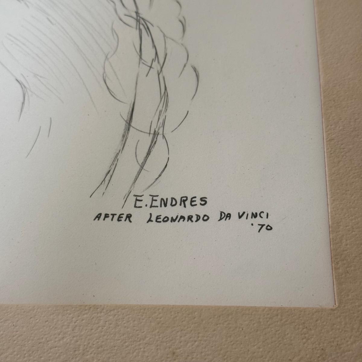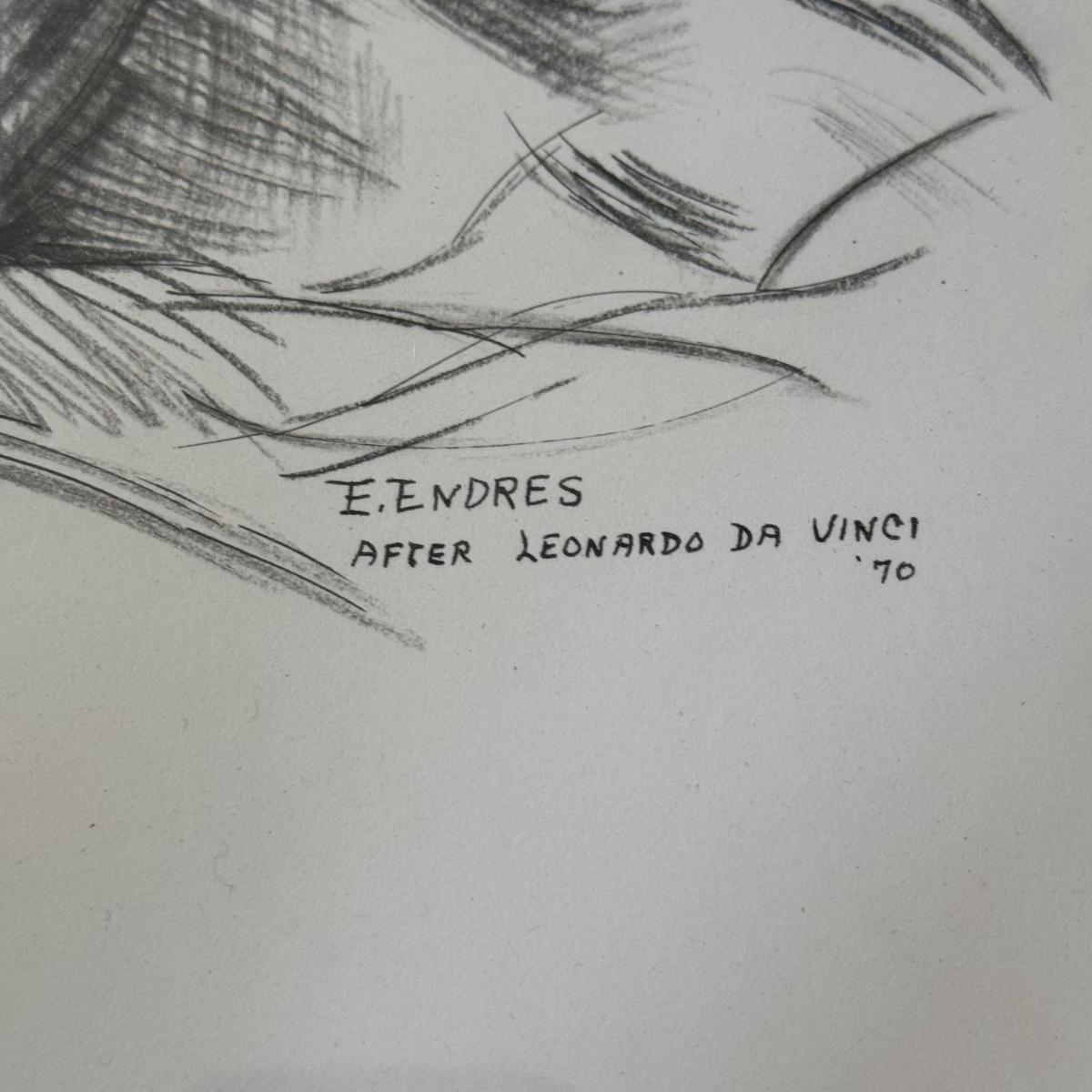 LOT 53L: Pair of 1970 Signed E. Endres after Leonardo da Vinci (Italian, 1452-1519) Drawings: "Study of a Girl's Head" (original circa 1483) & ''The Battle of Anghiari" (original circa 1504-1505)